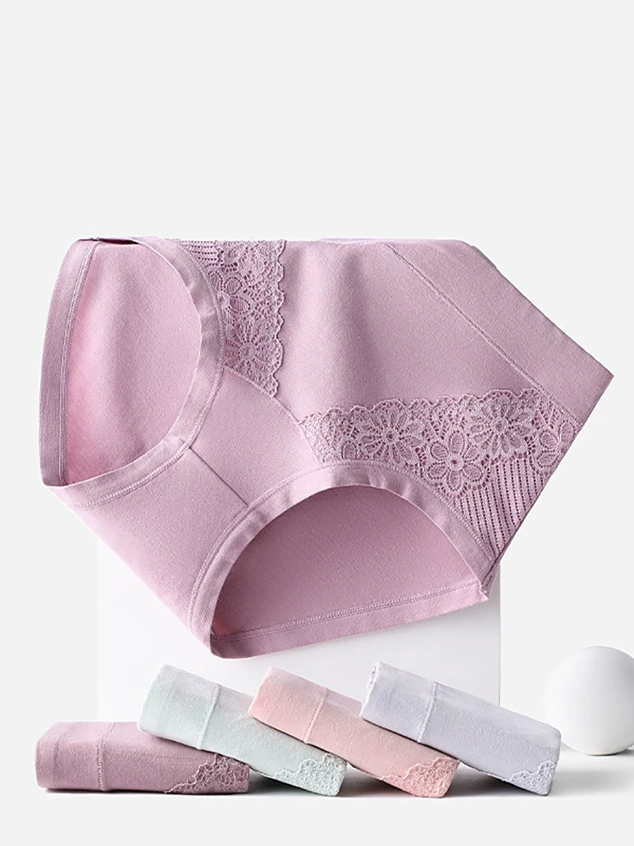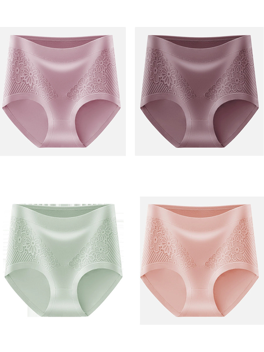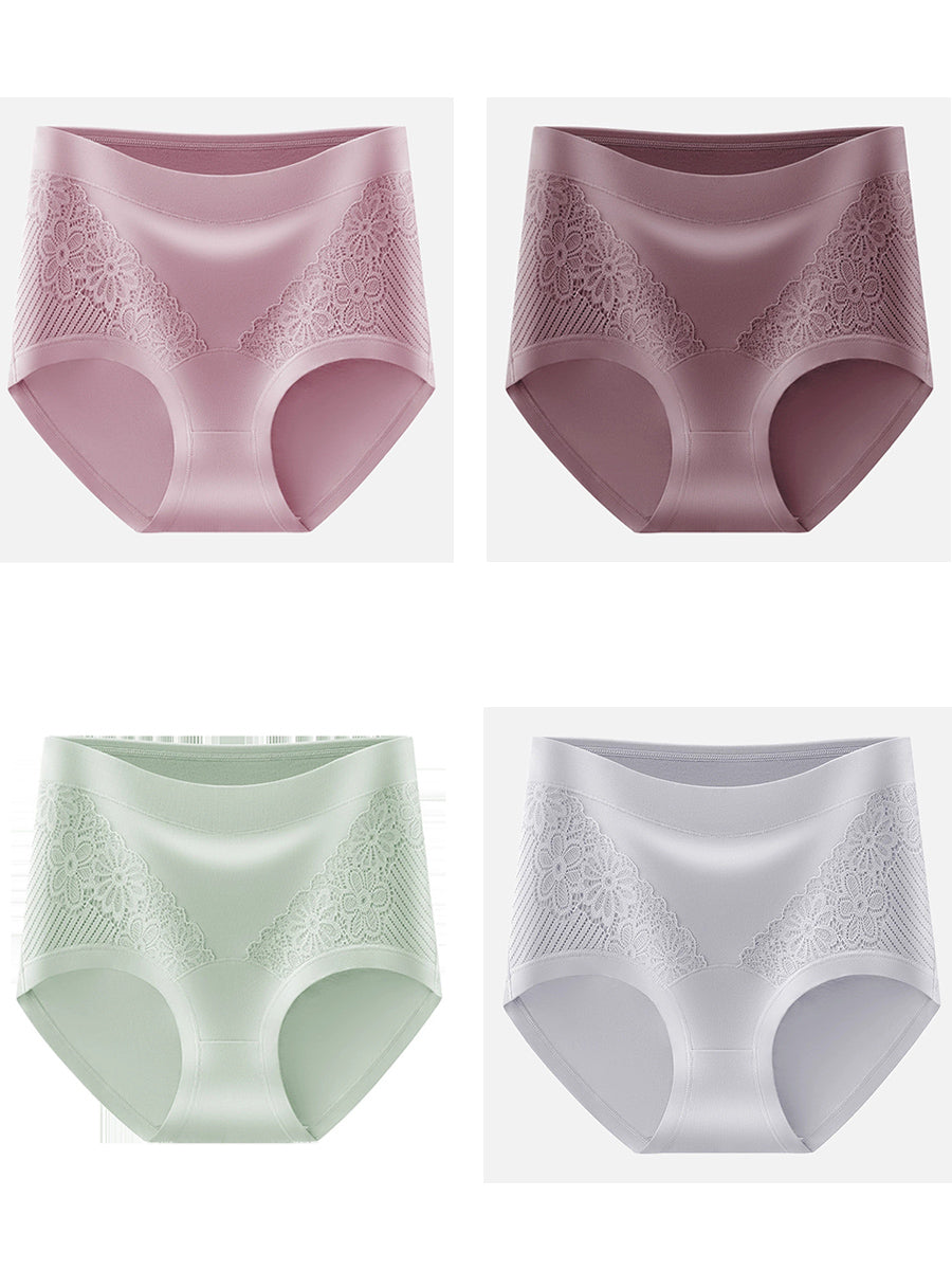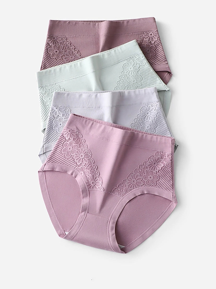 女性用アーティスティックレースフラワーハイウエスト下着4枚セット