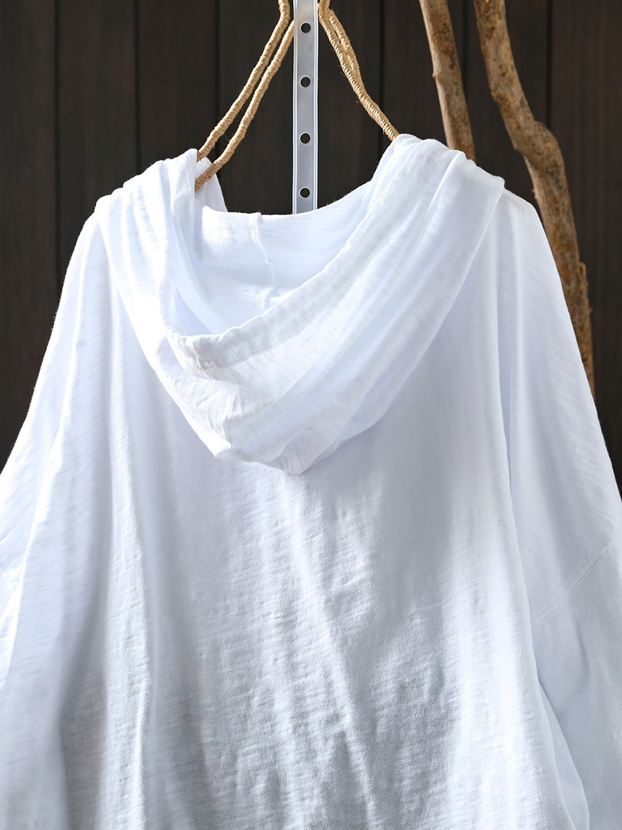 レディース カジュアル 春 ピュアカラー 100%コットン パーカー
