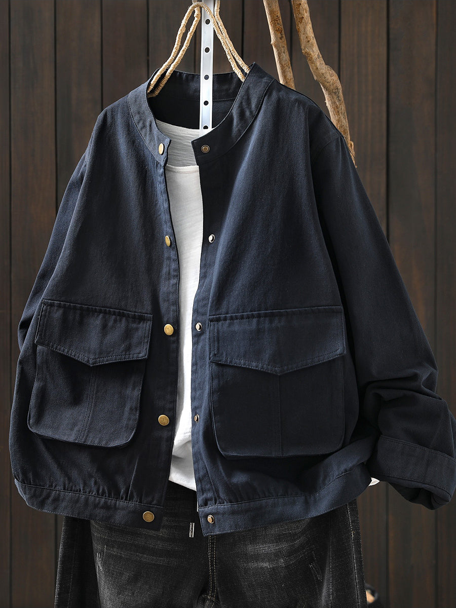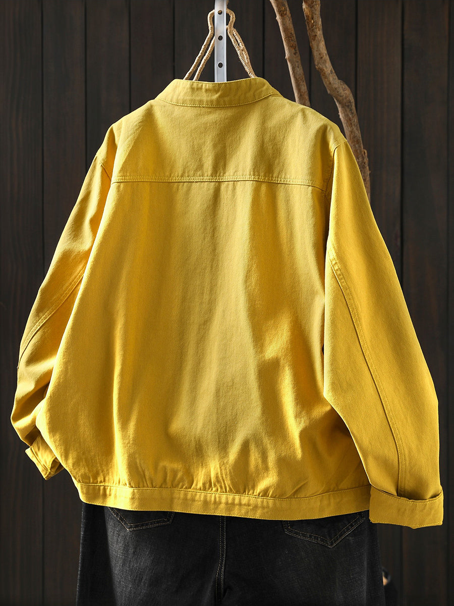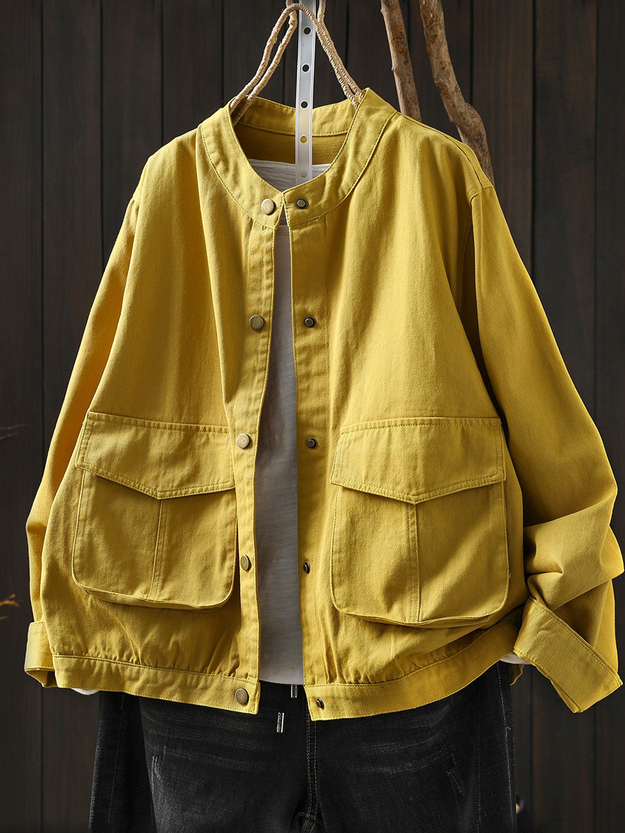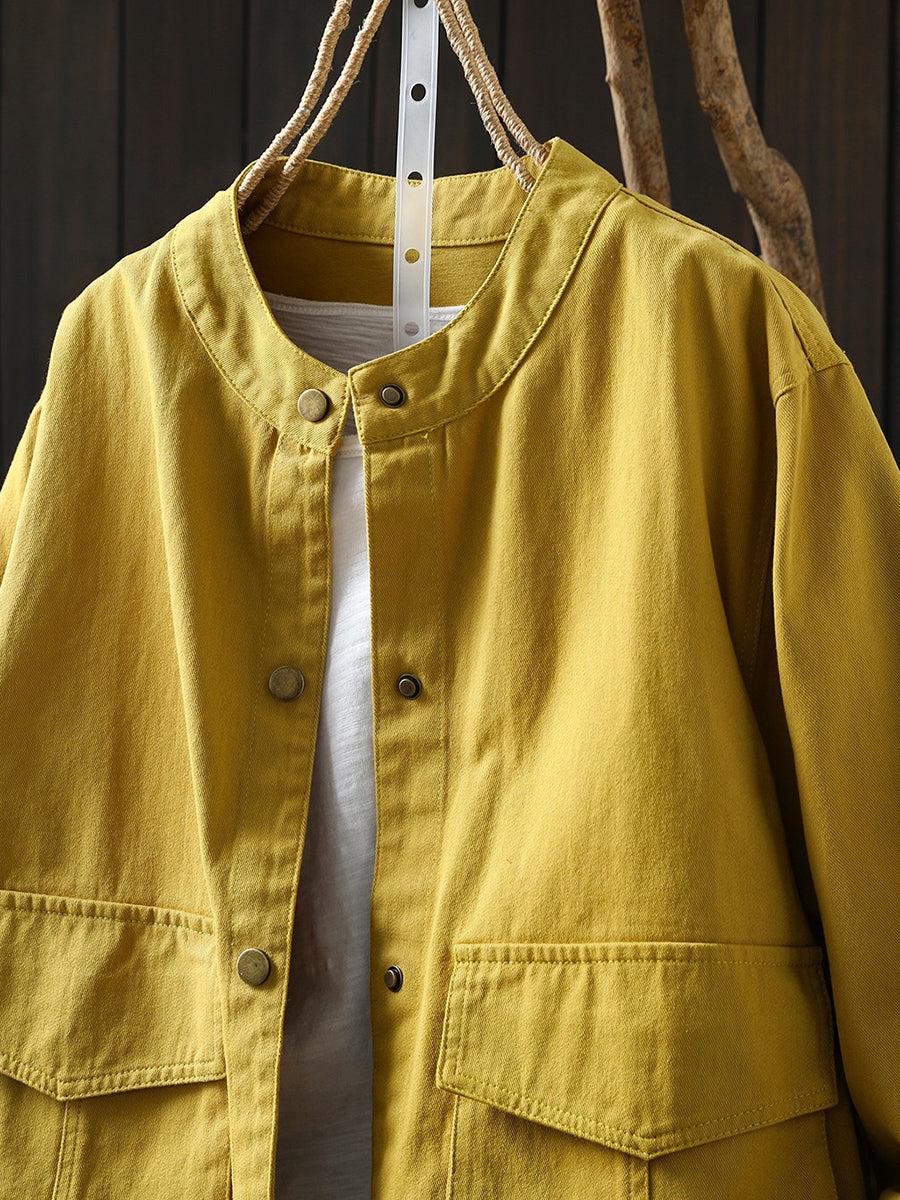 レディース 春 ピュアカラー スタンドカラー 100%コットンコート