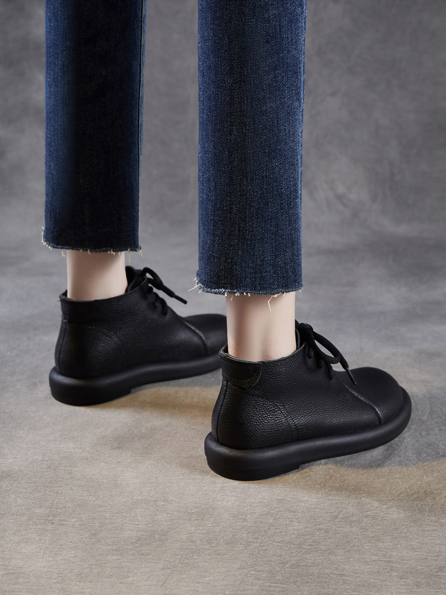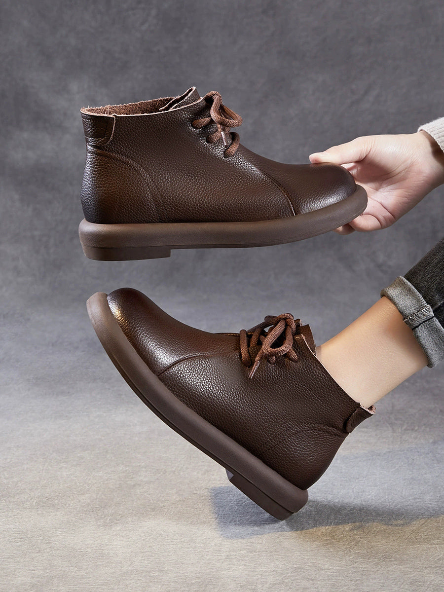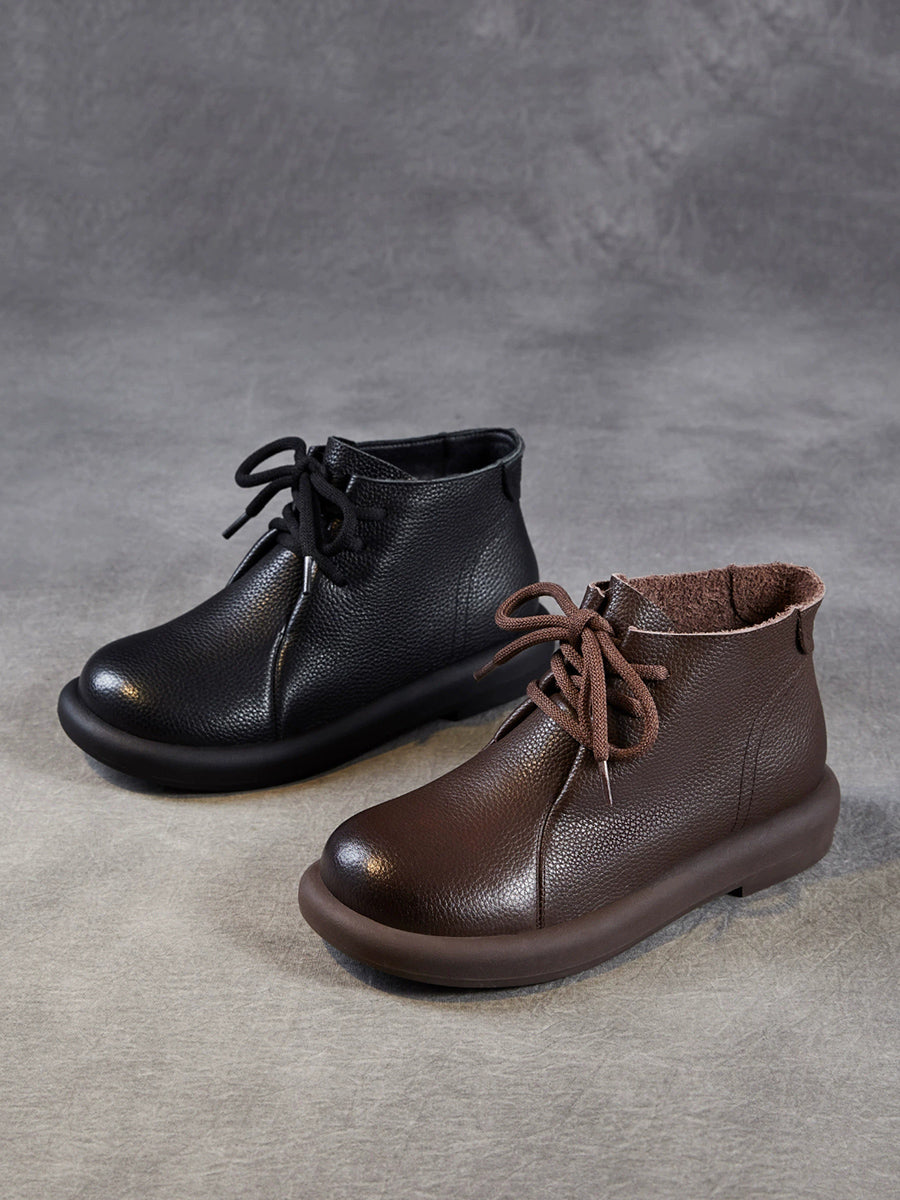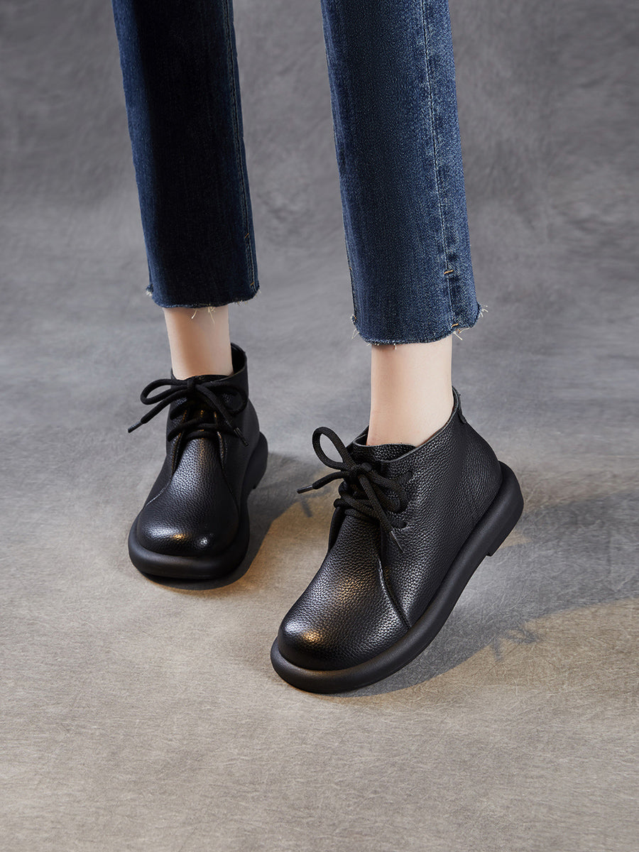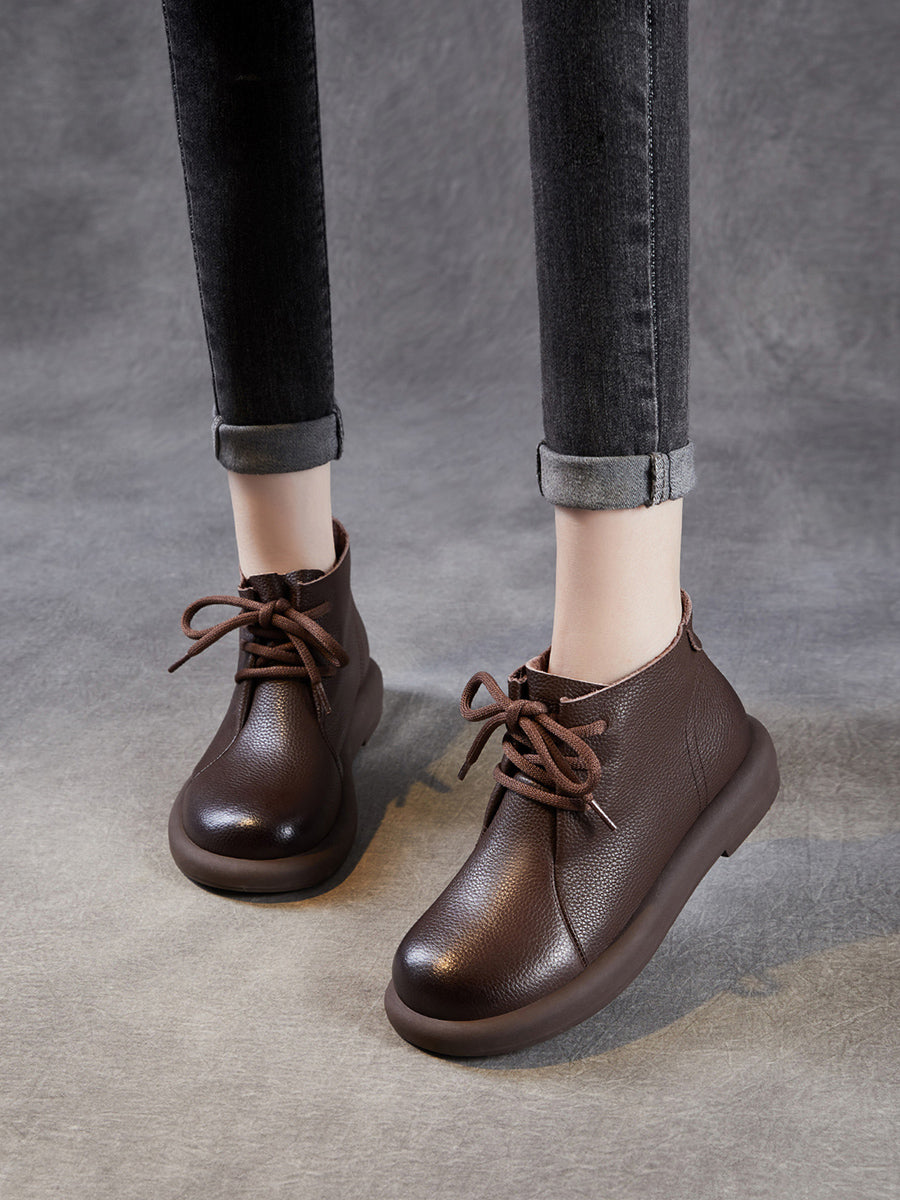 レディース ヴィンテージ 本革 ローヒール アンクルブーツ