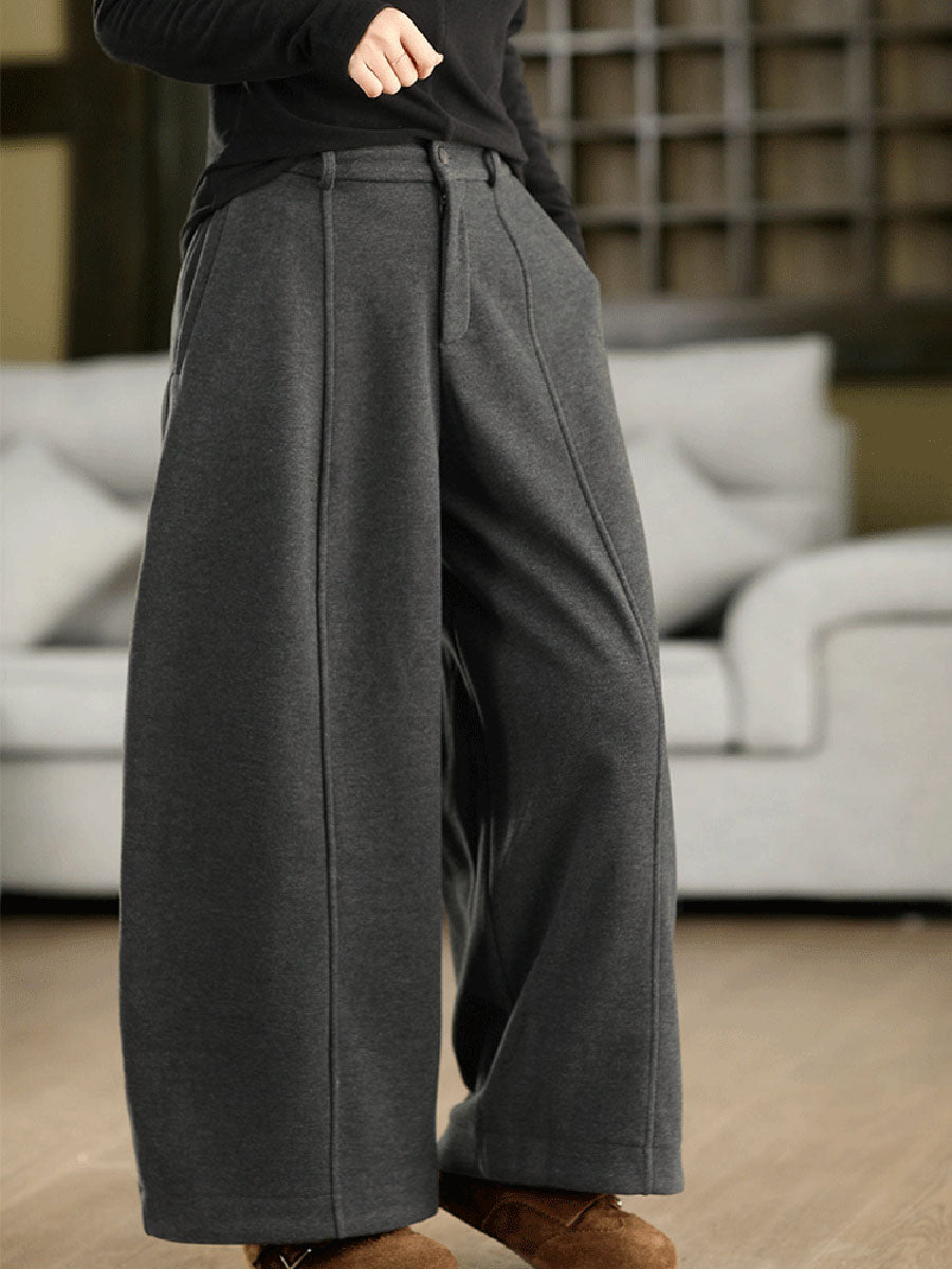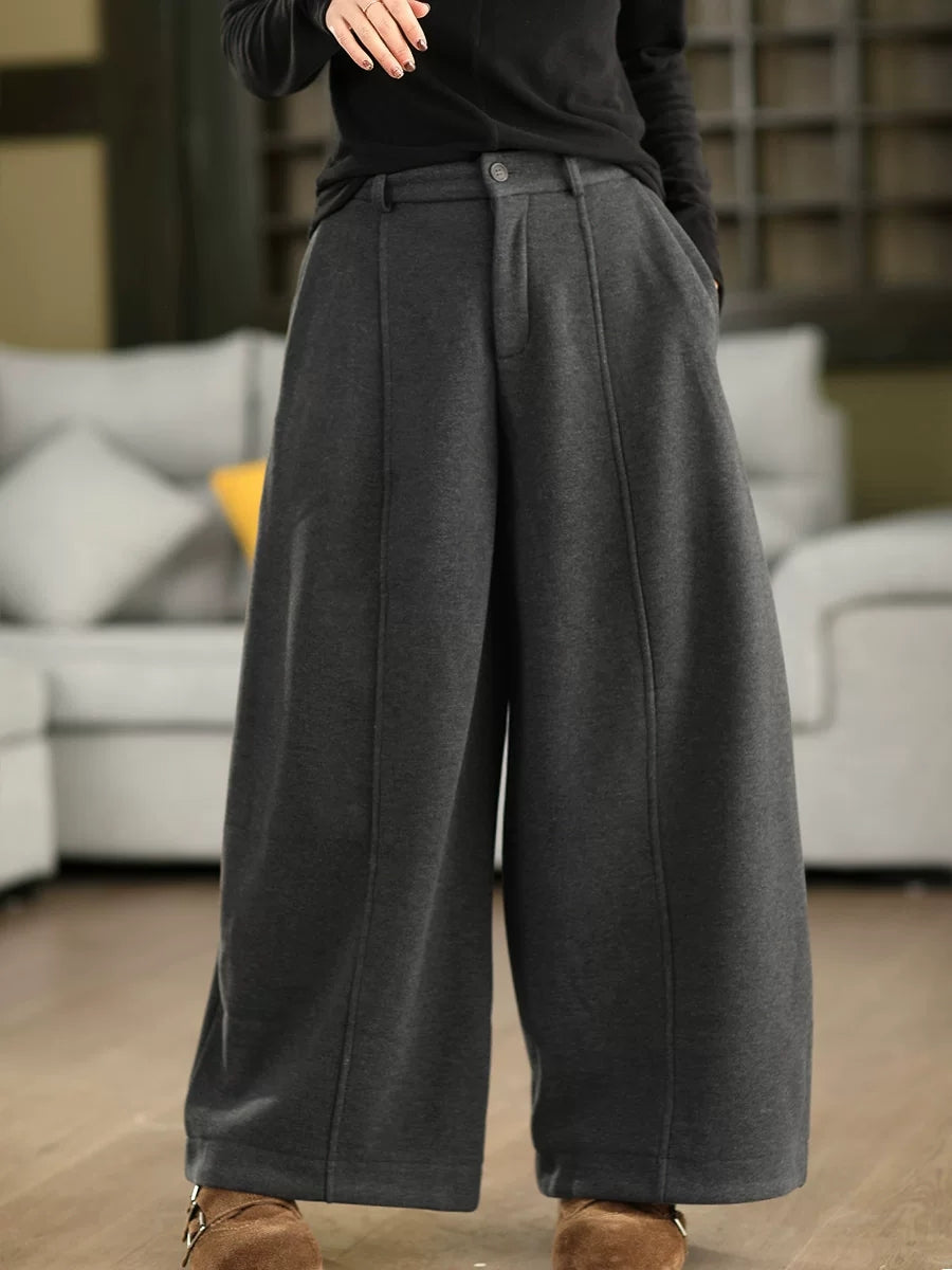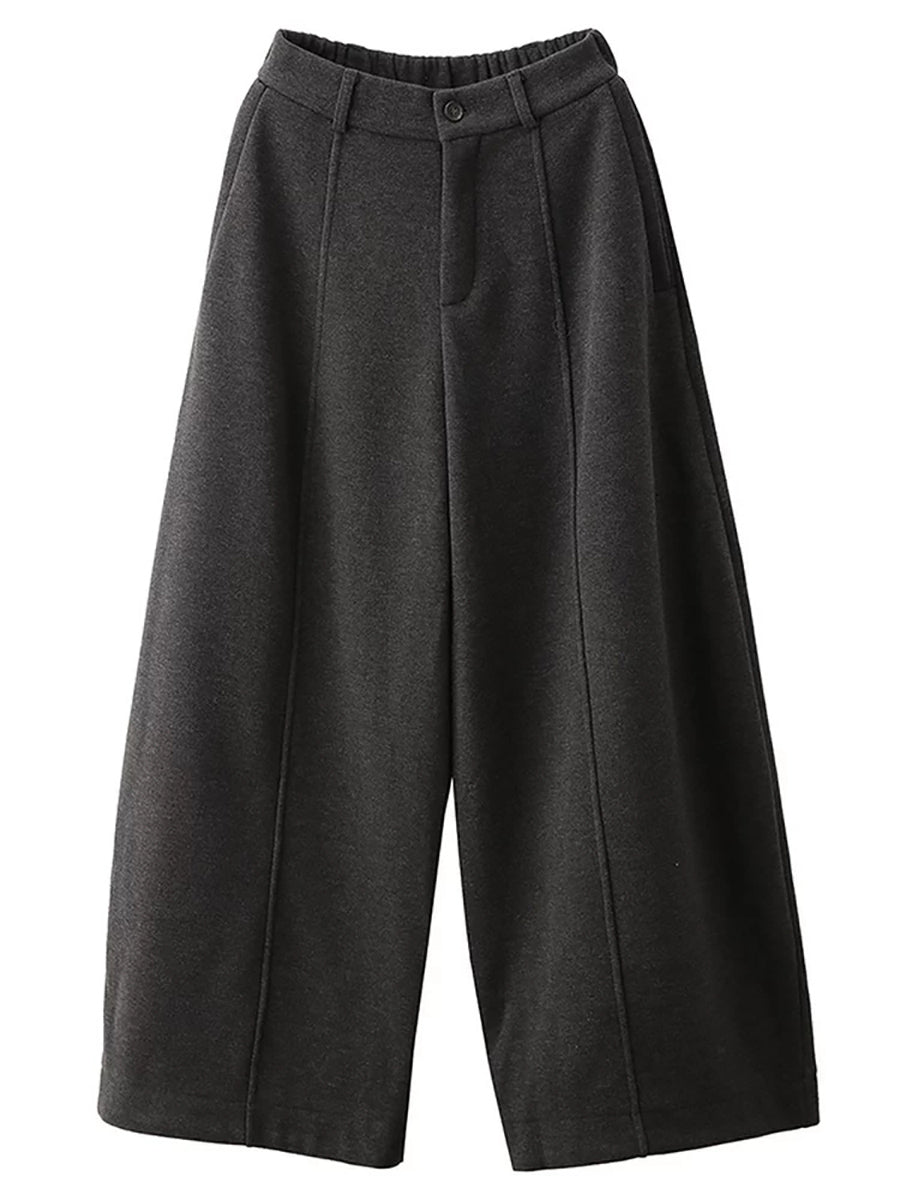 レディース 冬 カジュアル ピュアカラー ワイドレッグパンツ