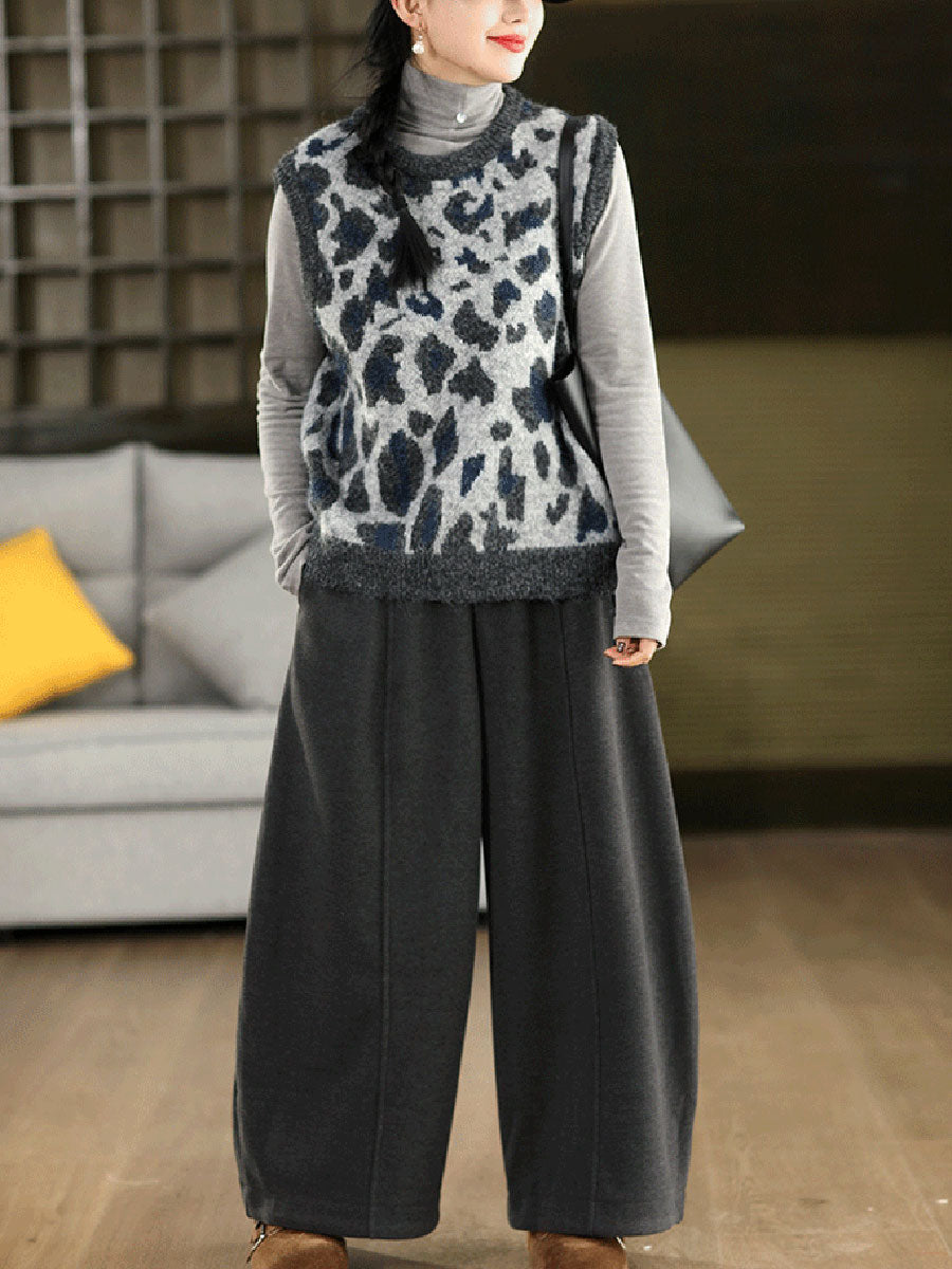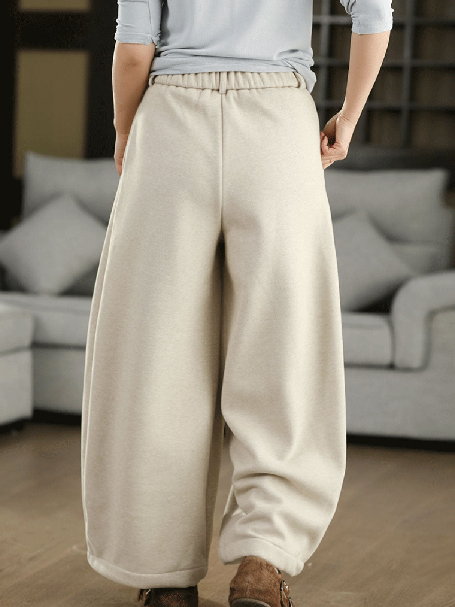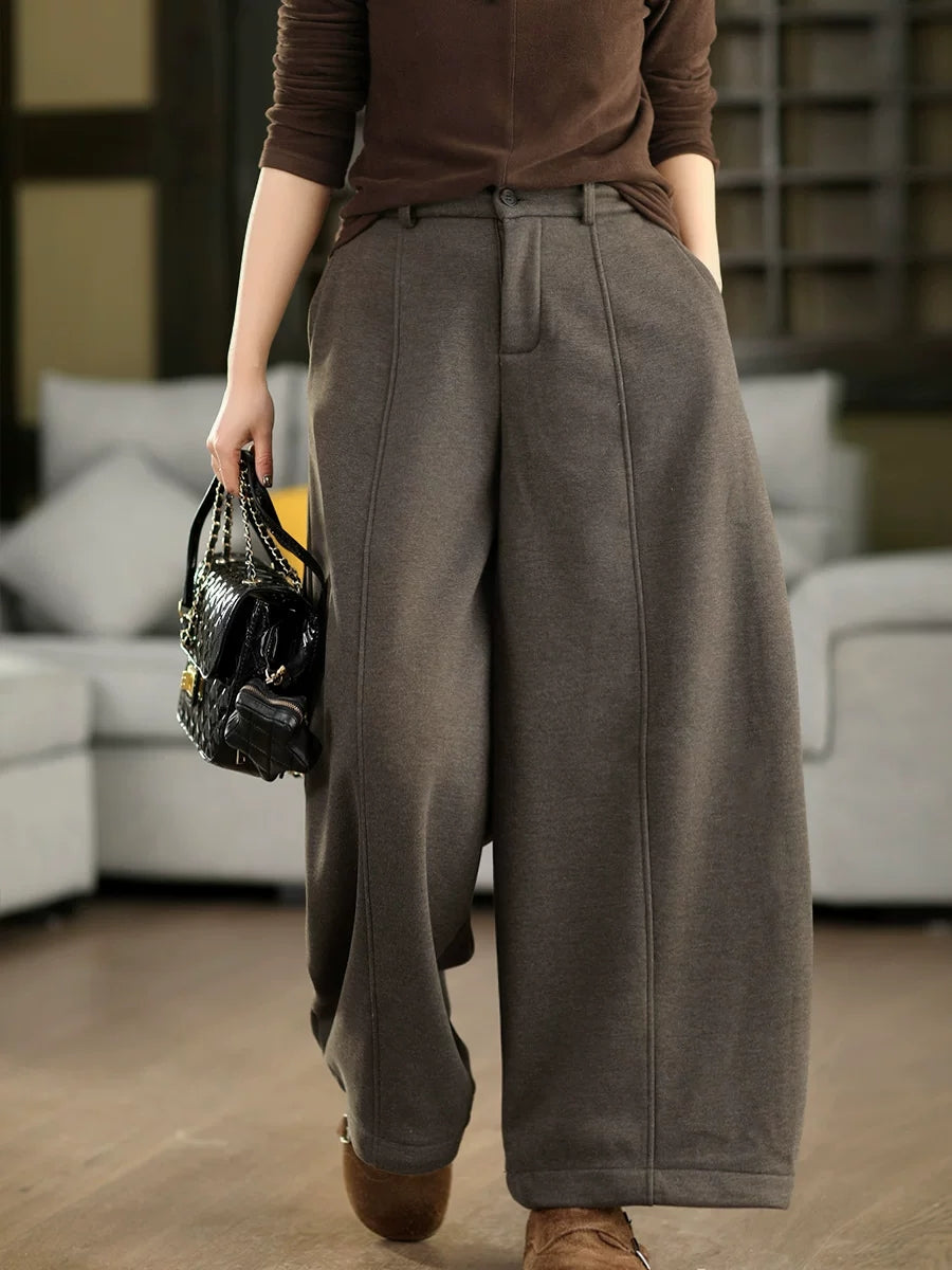 レディース 冬 カジュアル ピュアカラー ワイドレッグパンツ