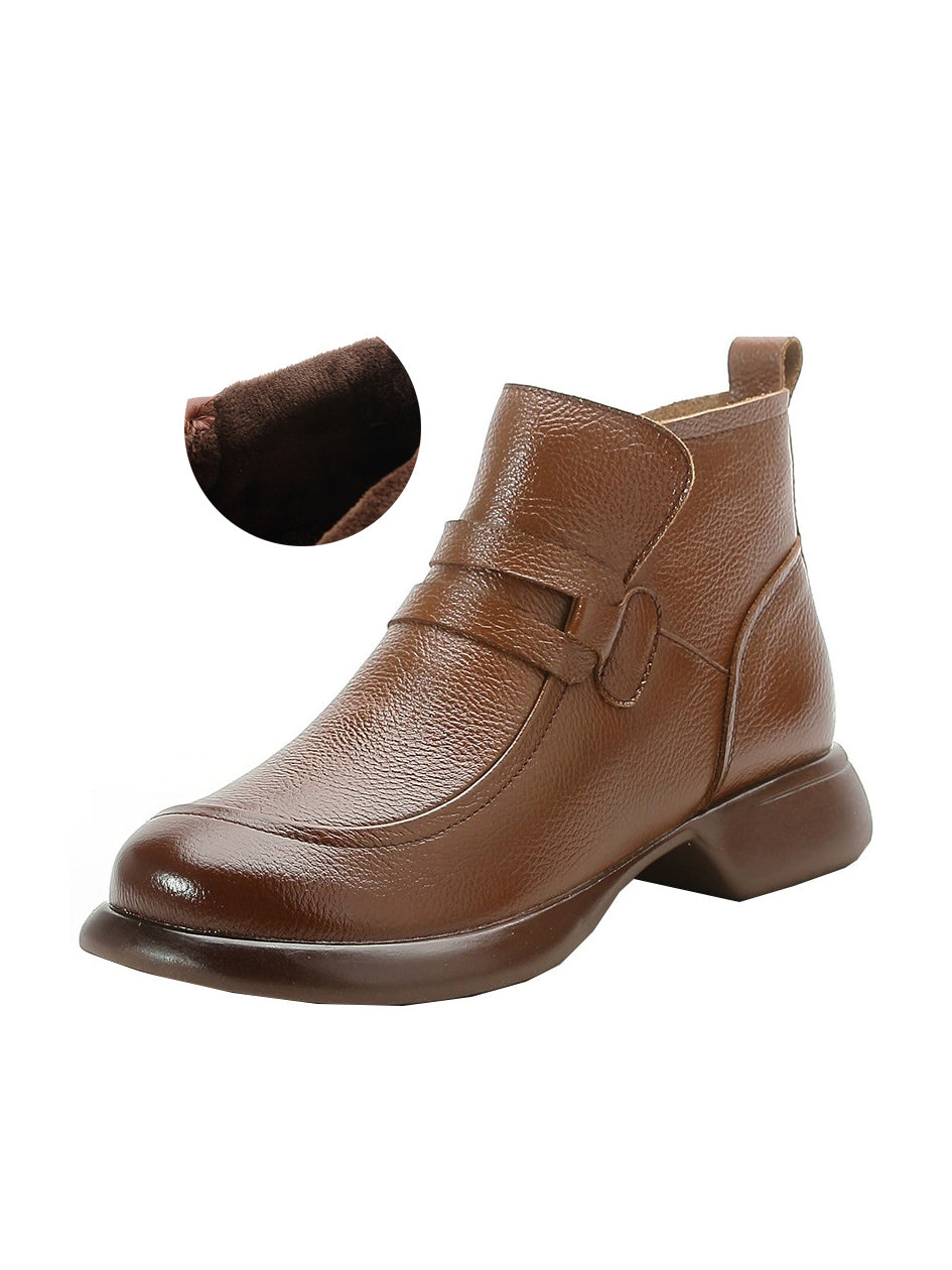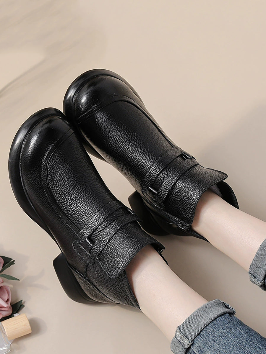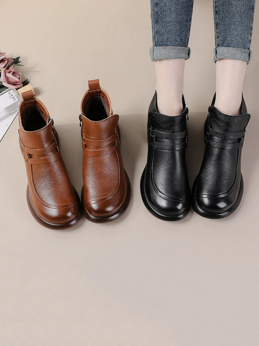 レディース 冬用 本革 プラットフォーム アンクルブーツ