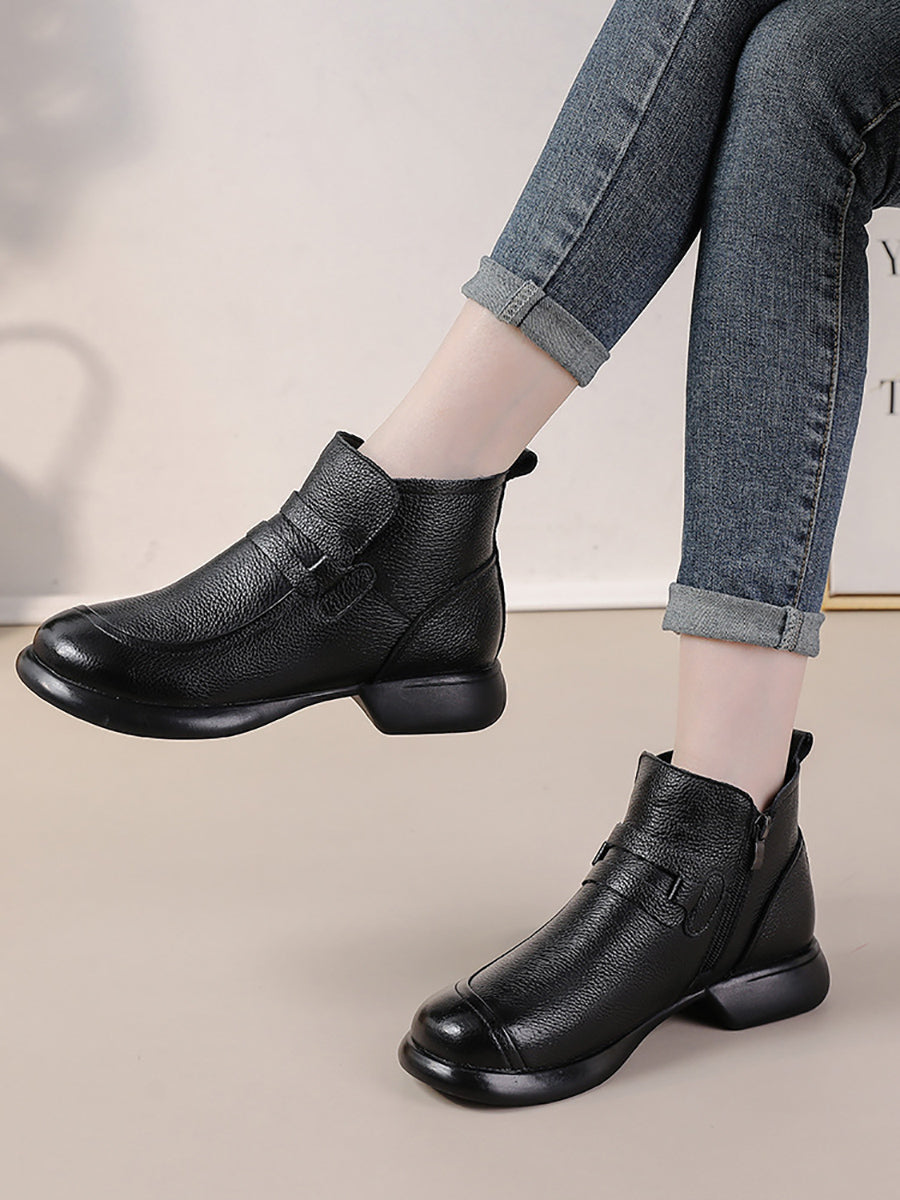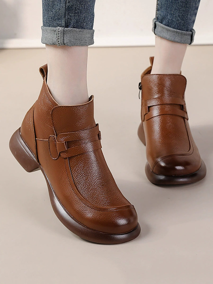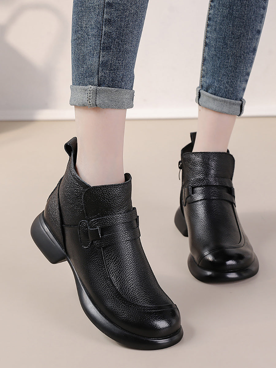 レディース 冬用 本革 プラットフォーム アンクルブーツ