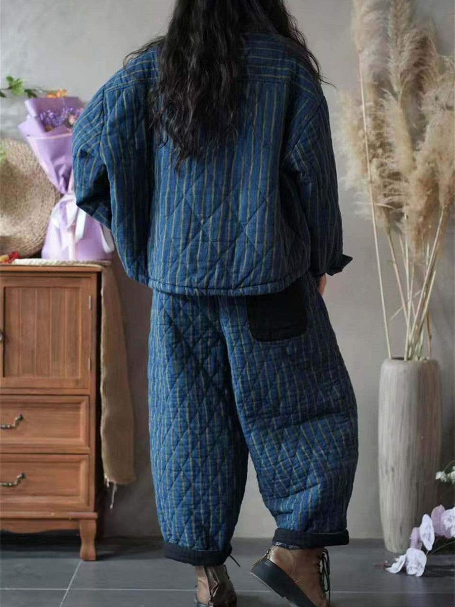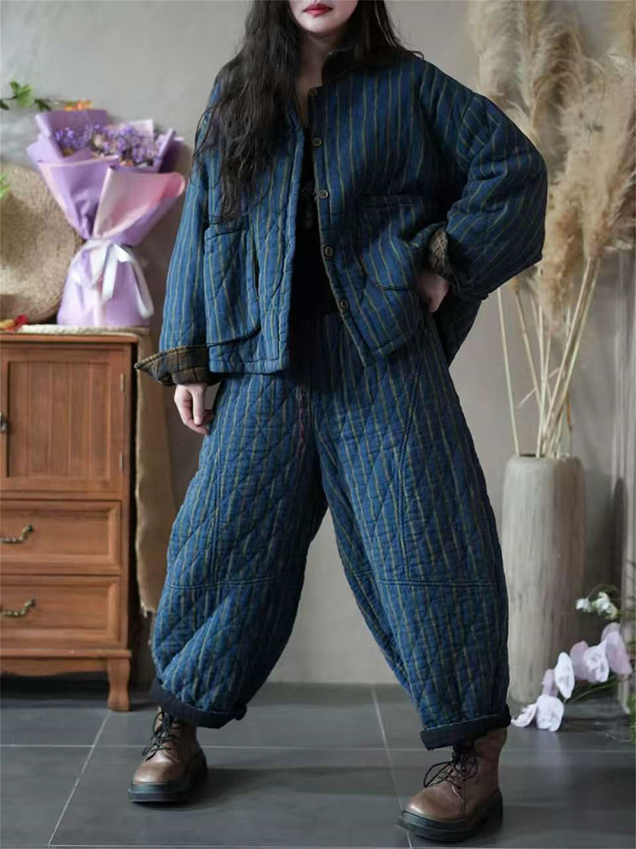 レディース 冬用 ヴィンテージ ストライプ パッド入りスーツ