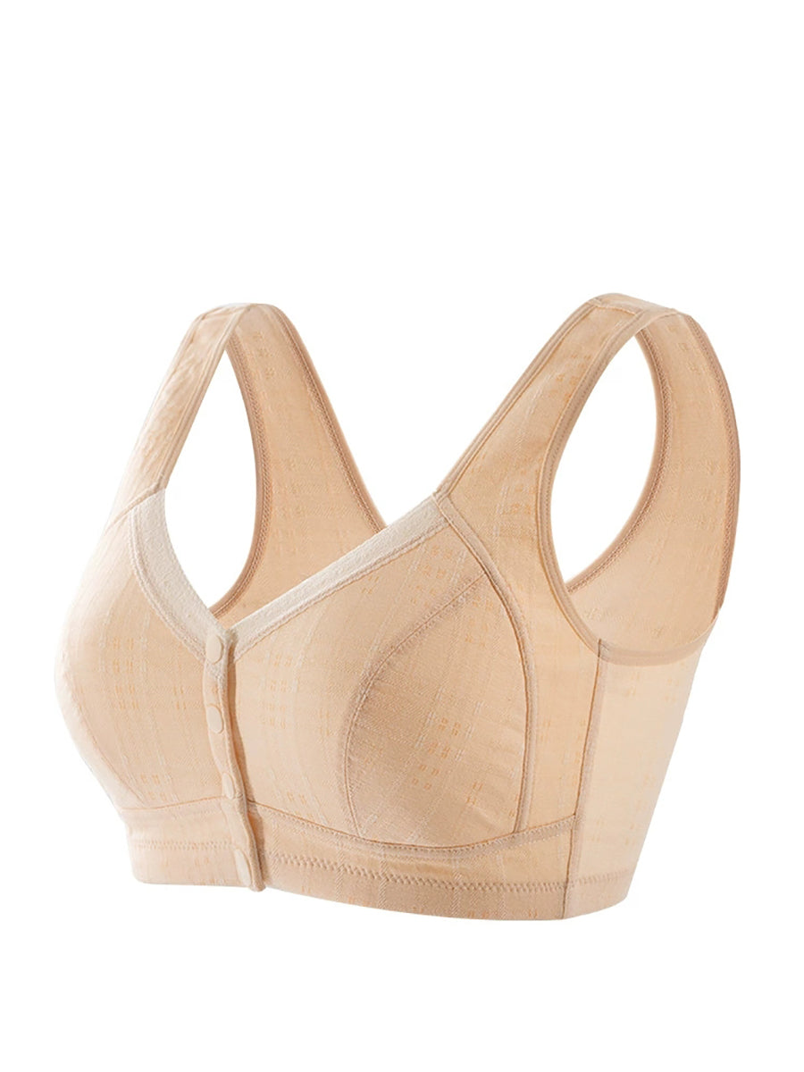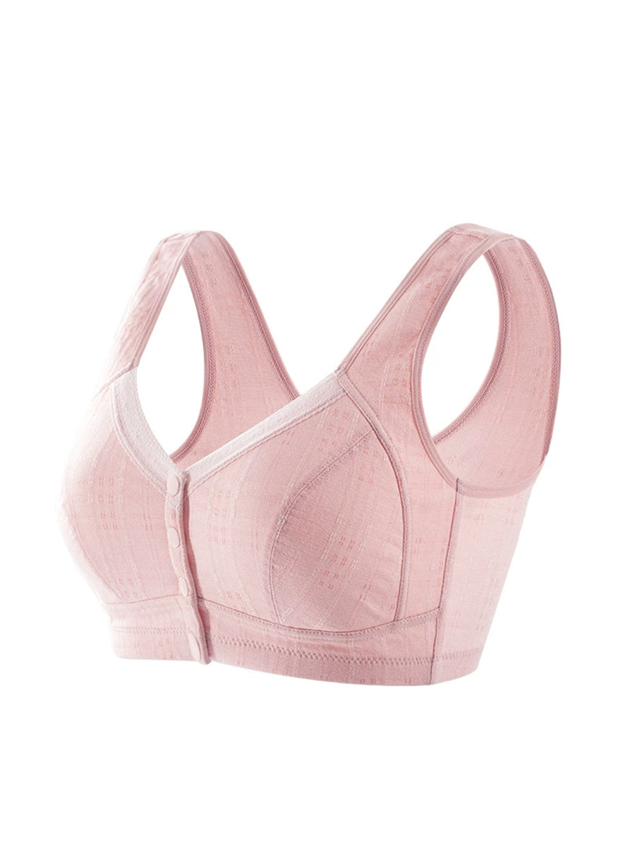 レディースカジュアルピュアカラーフロントバックルワイヤレスブラ