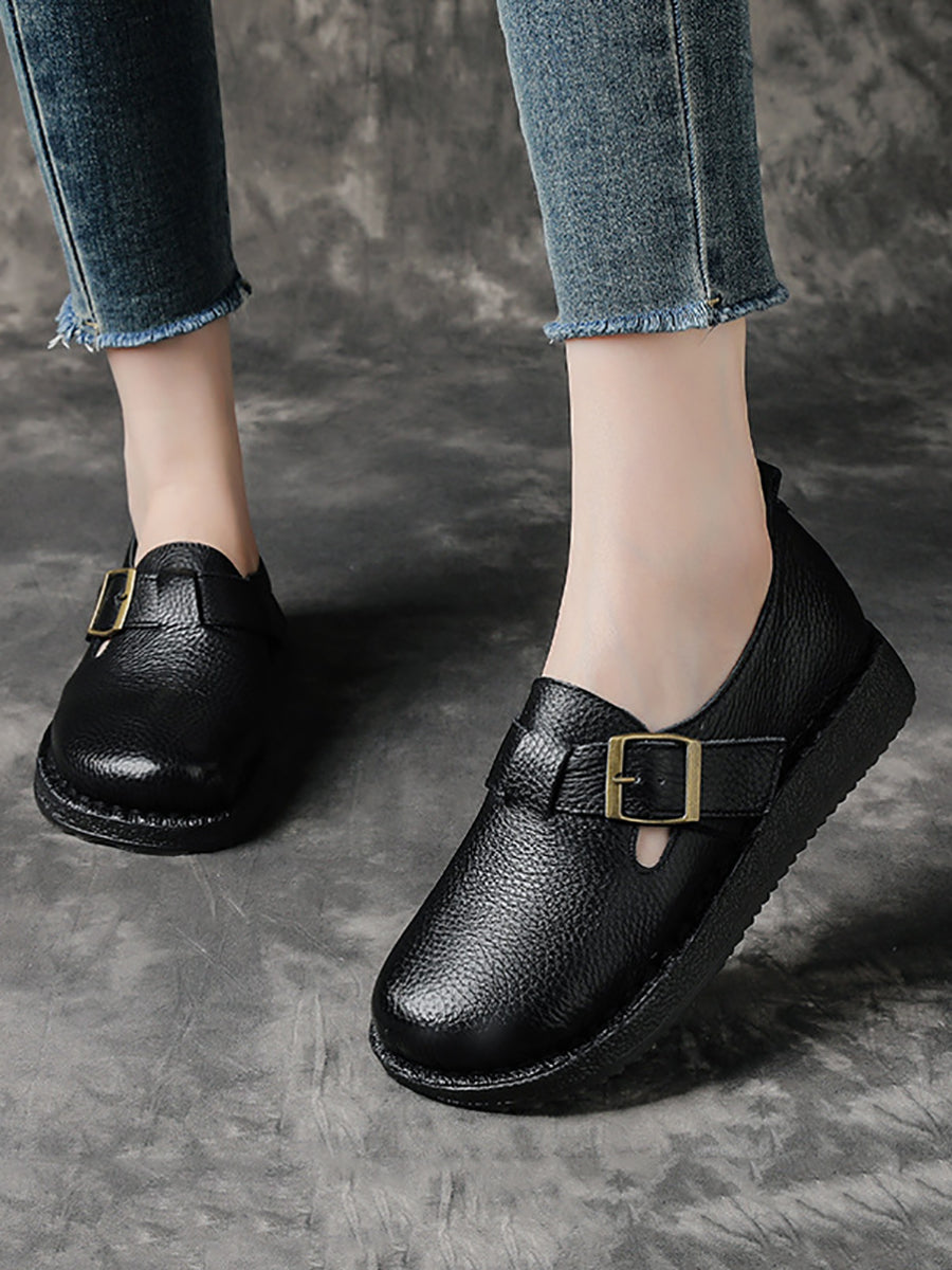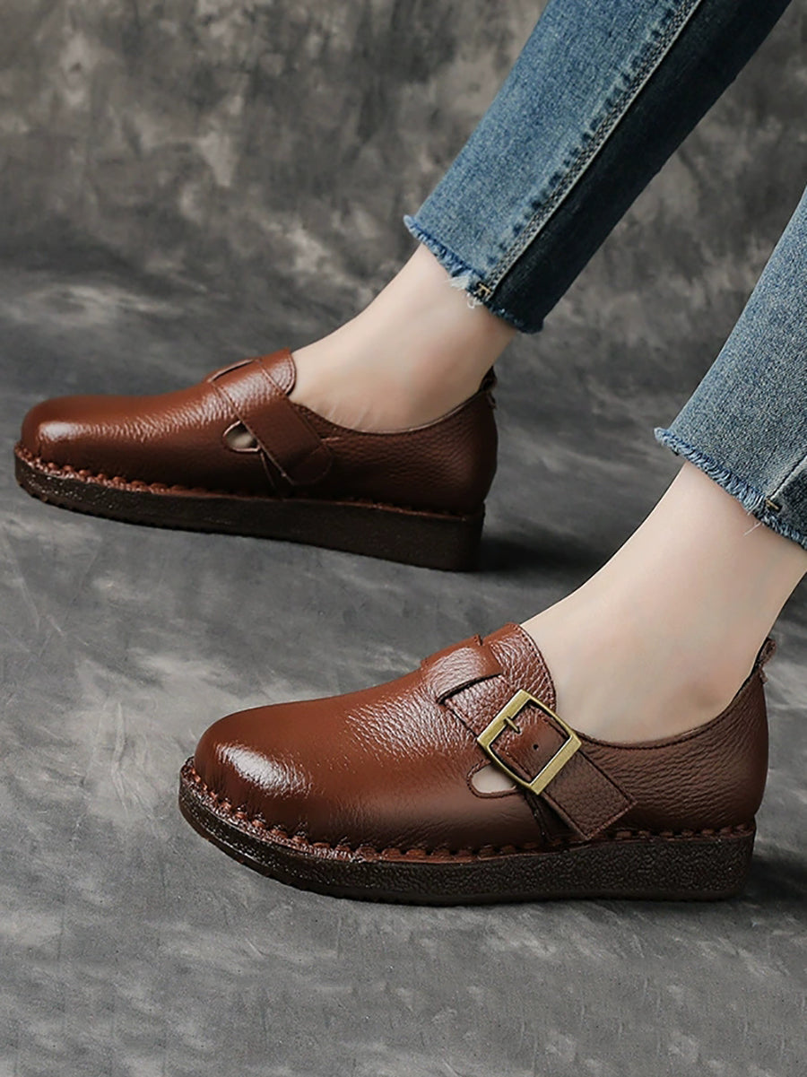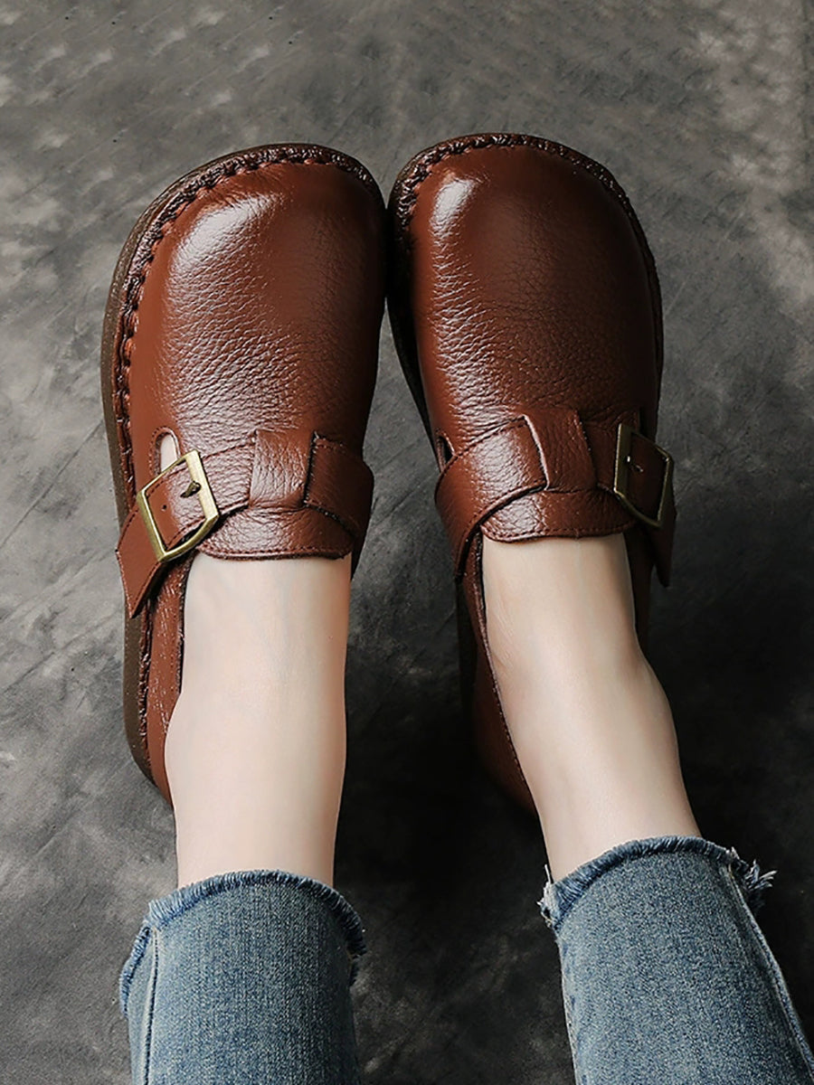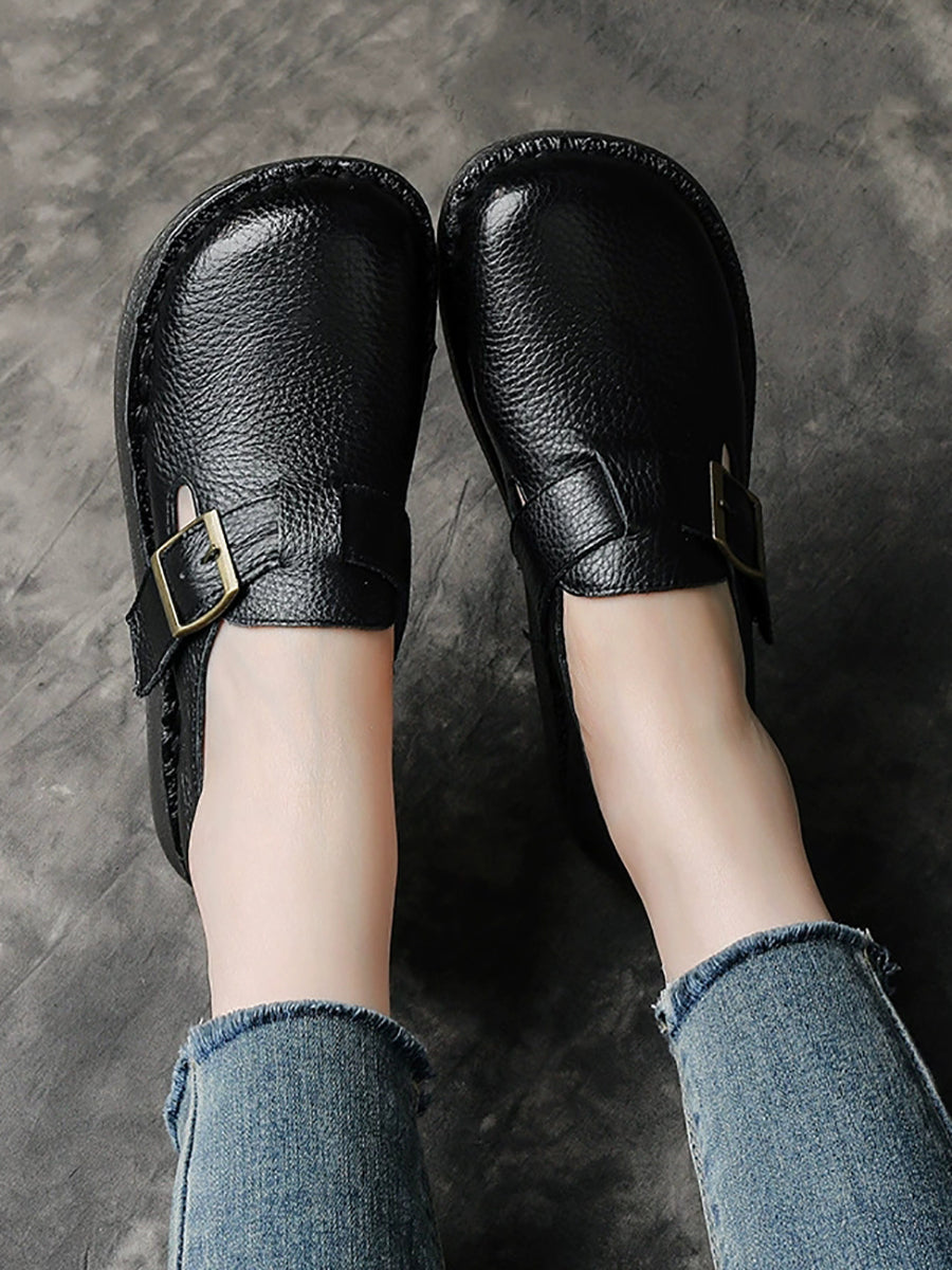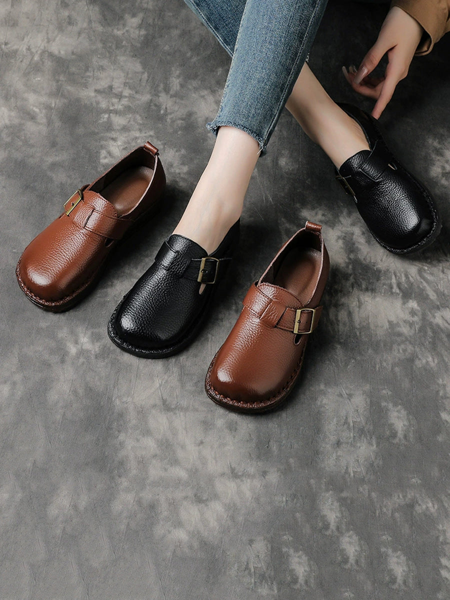 レディース 春 ヴィンテージ 本革 フラットシューズ