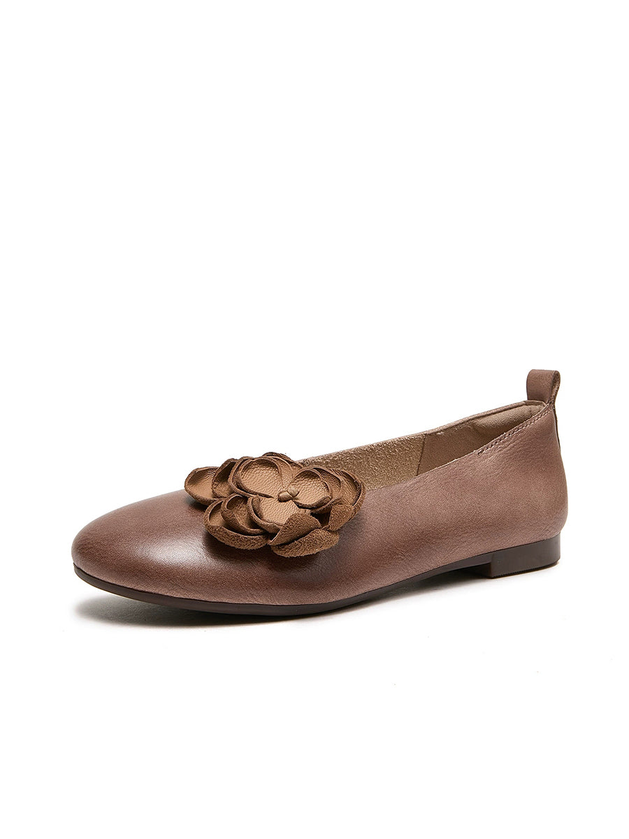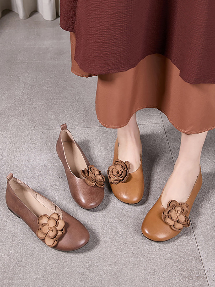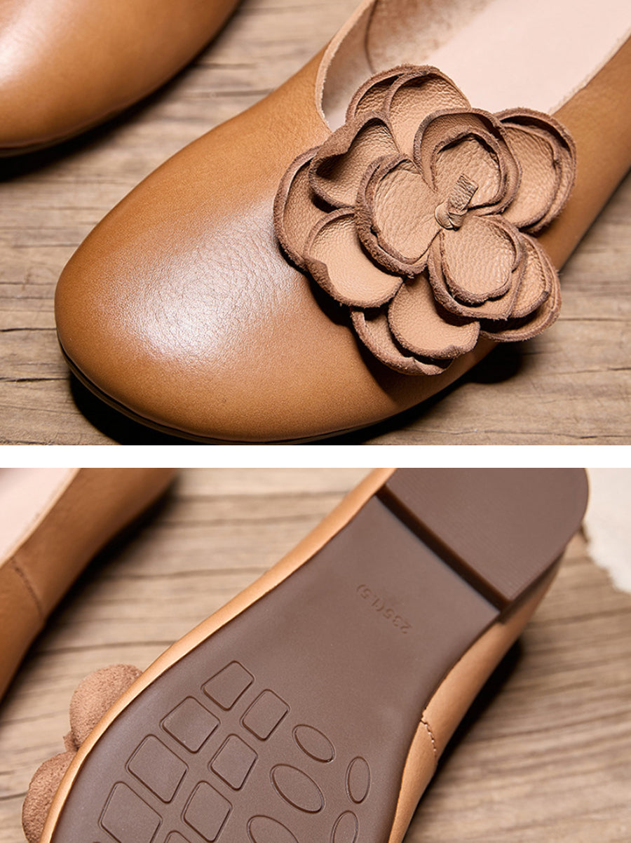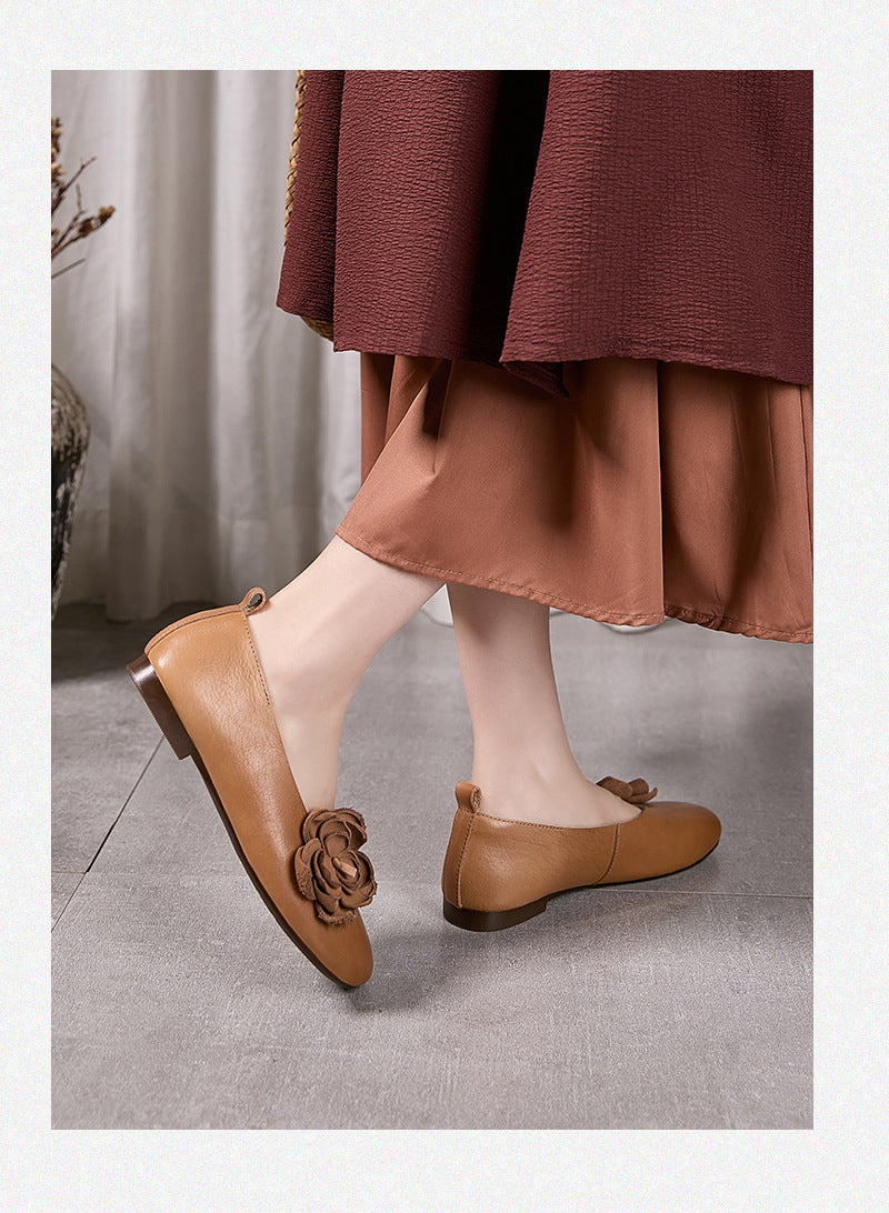 女性用アーティスティックフラワーレザースプライスローヒールシューズ