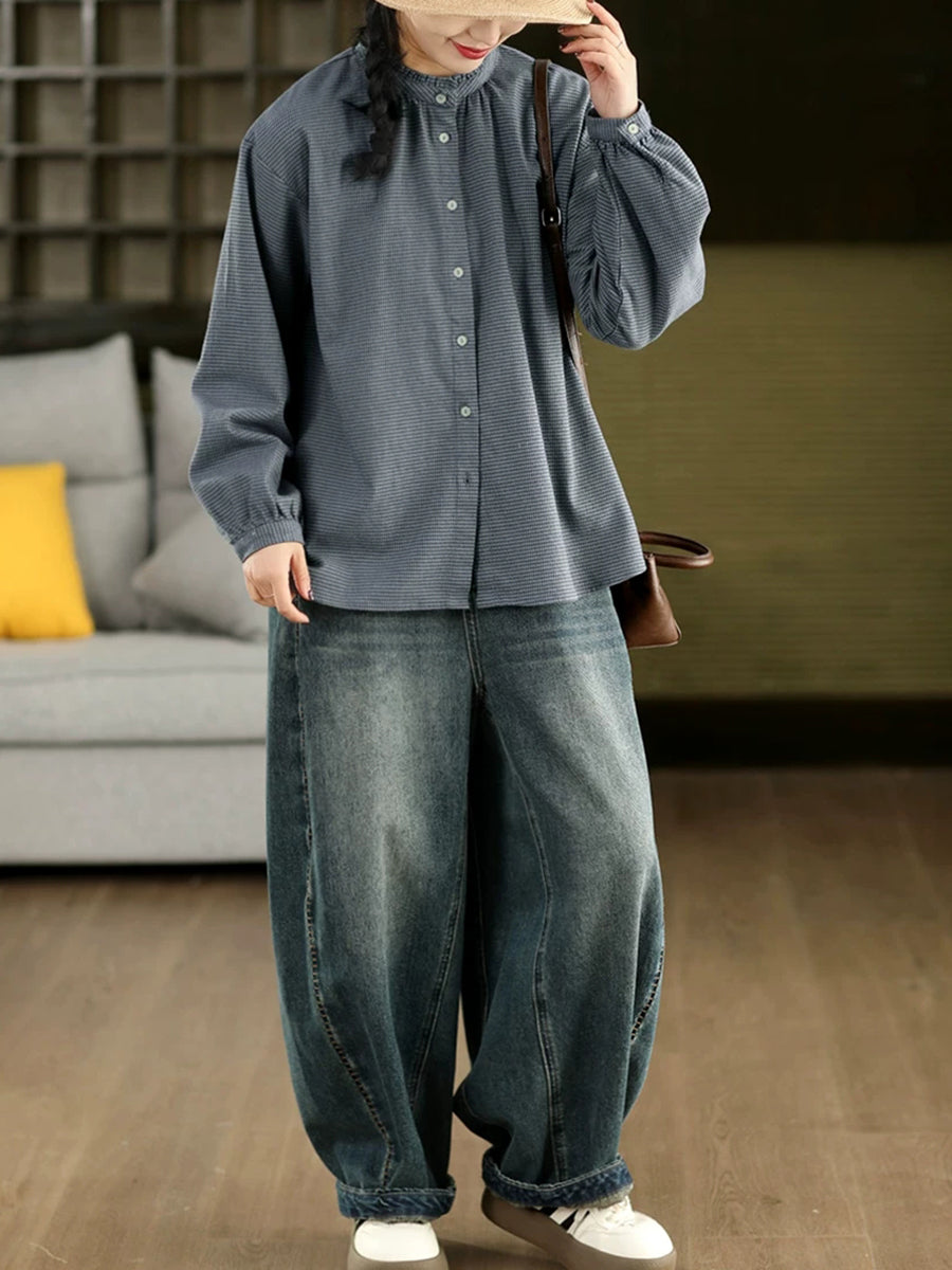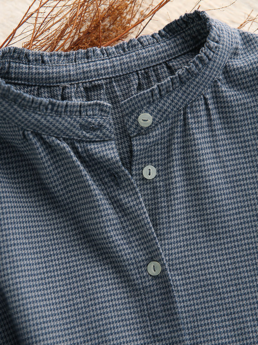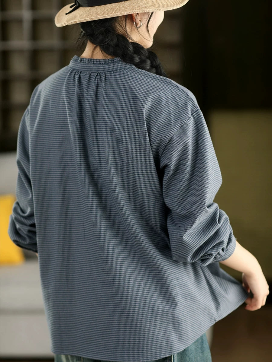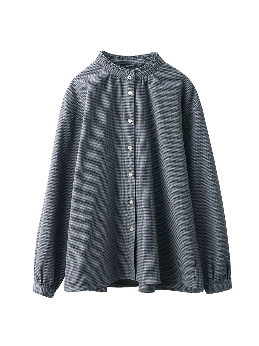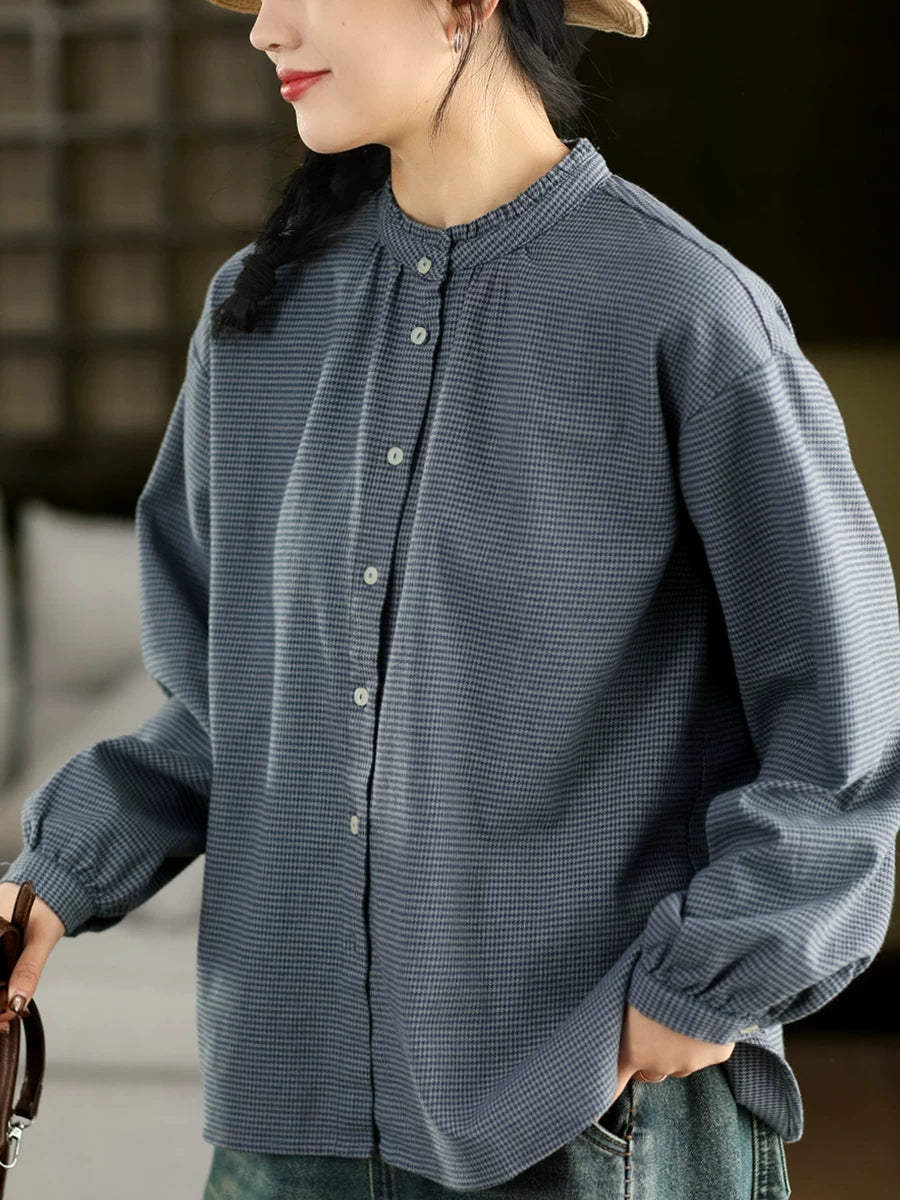 レディース 春 アーティスティック ラティス スタンドカラー 100%コットン シャツ