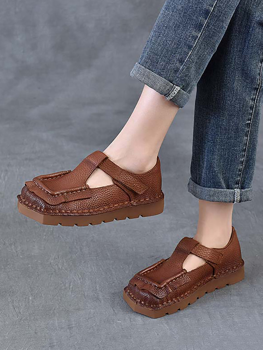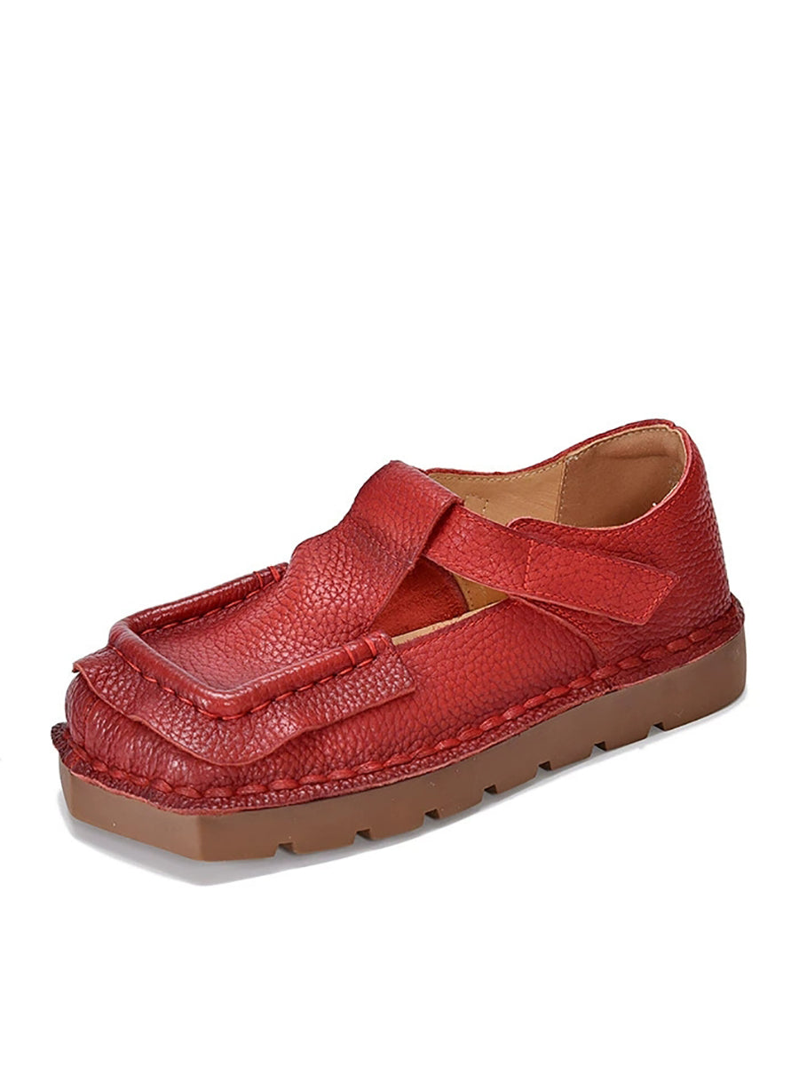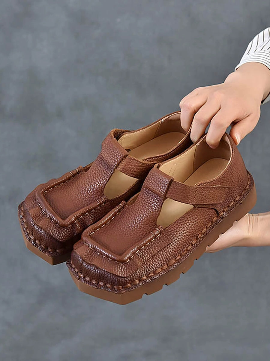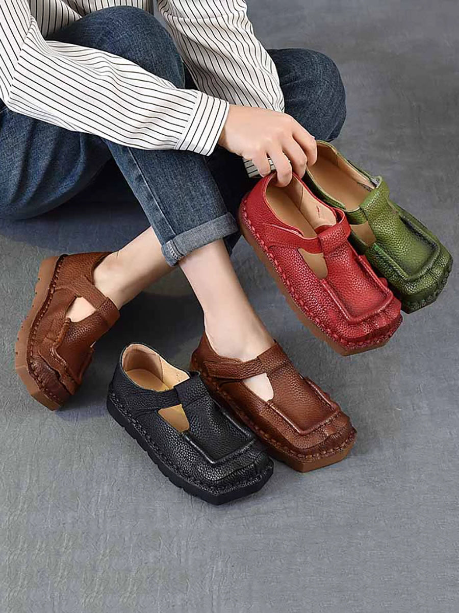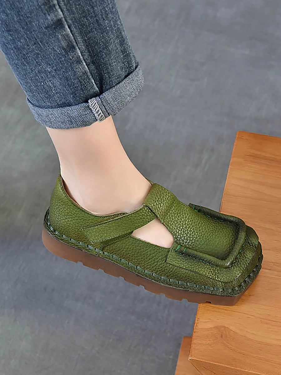 レディース ヴィンテージ 本革 スクエアトゥ シューズ