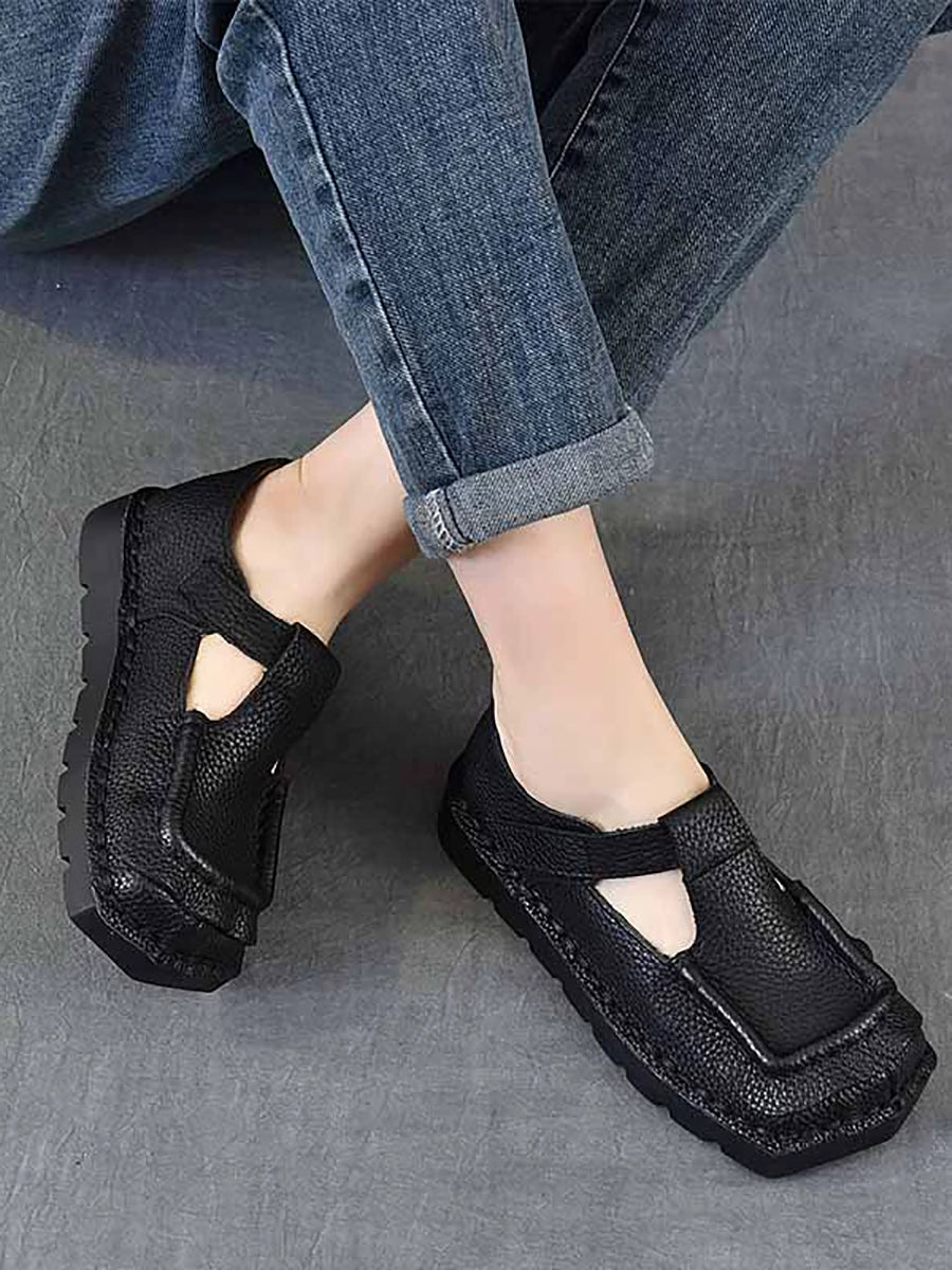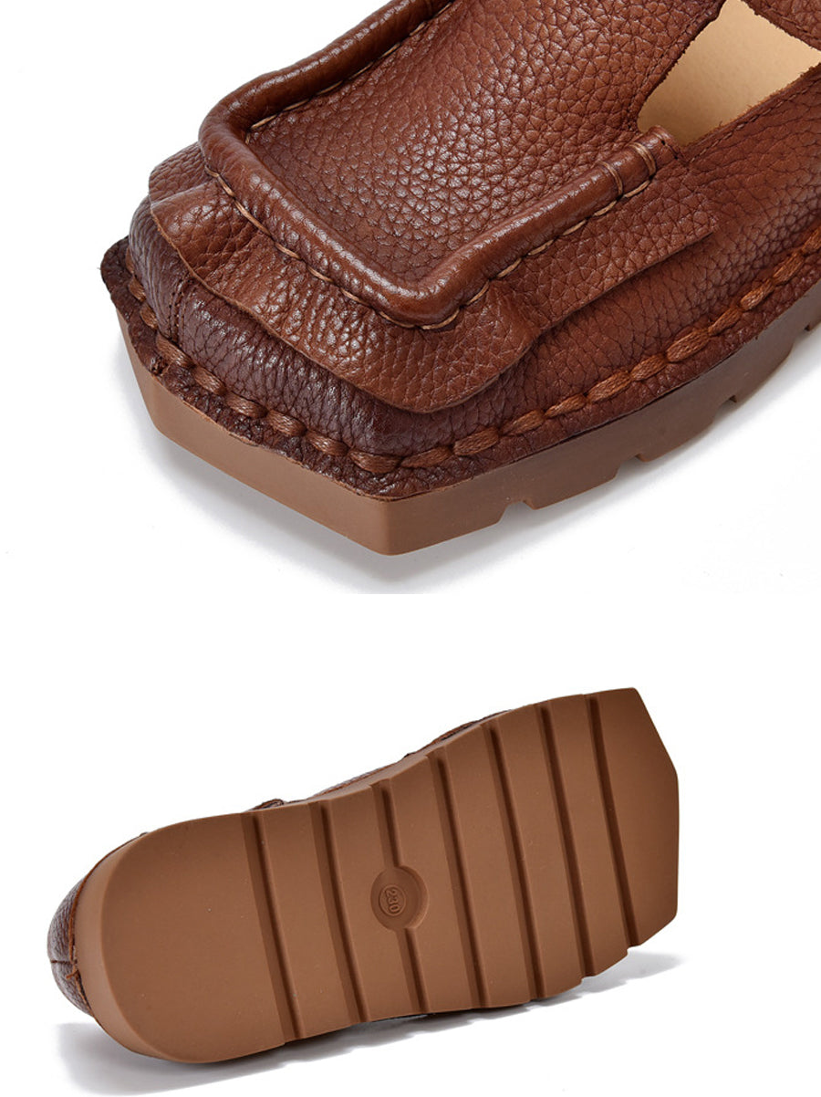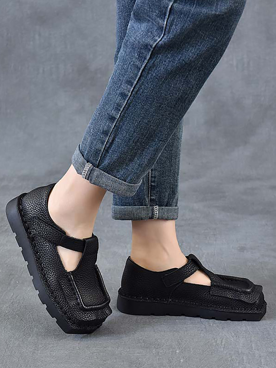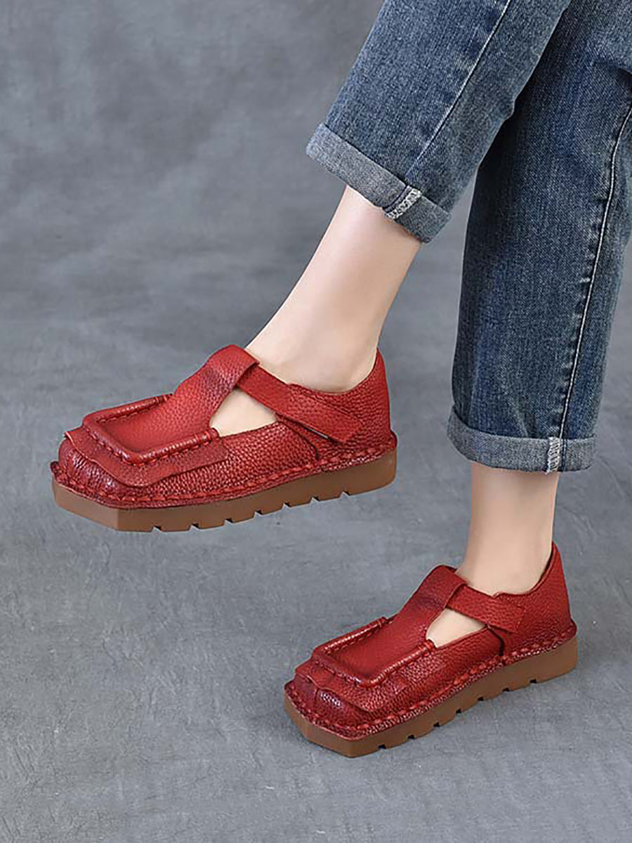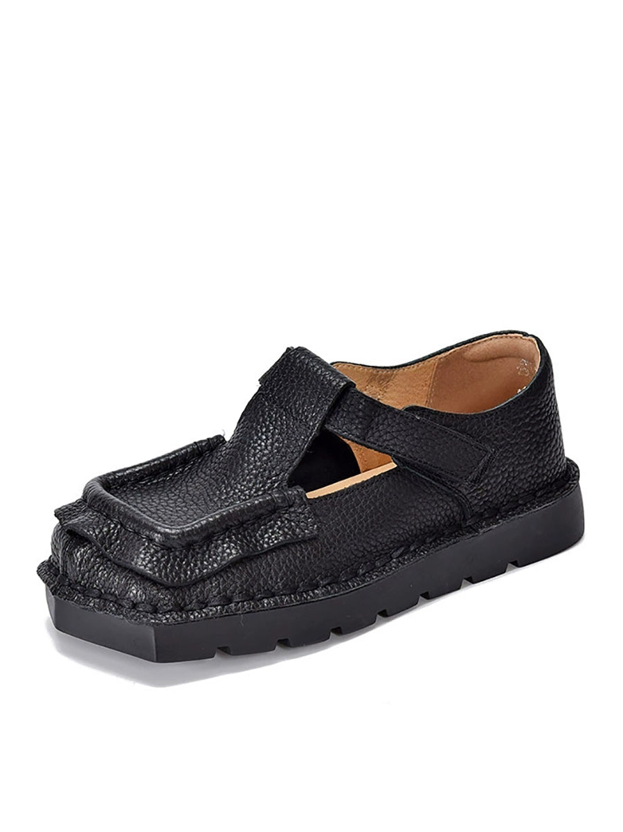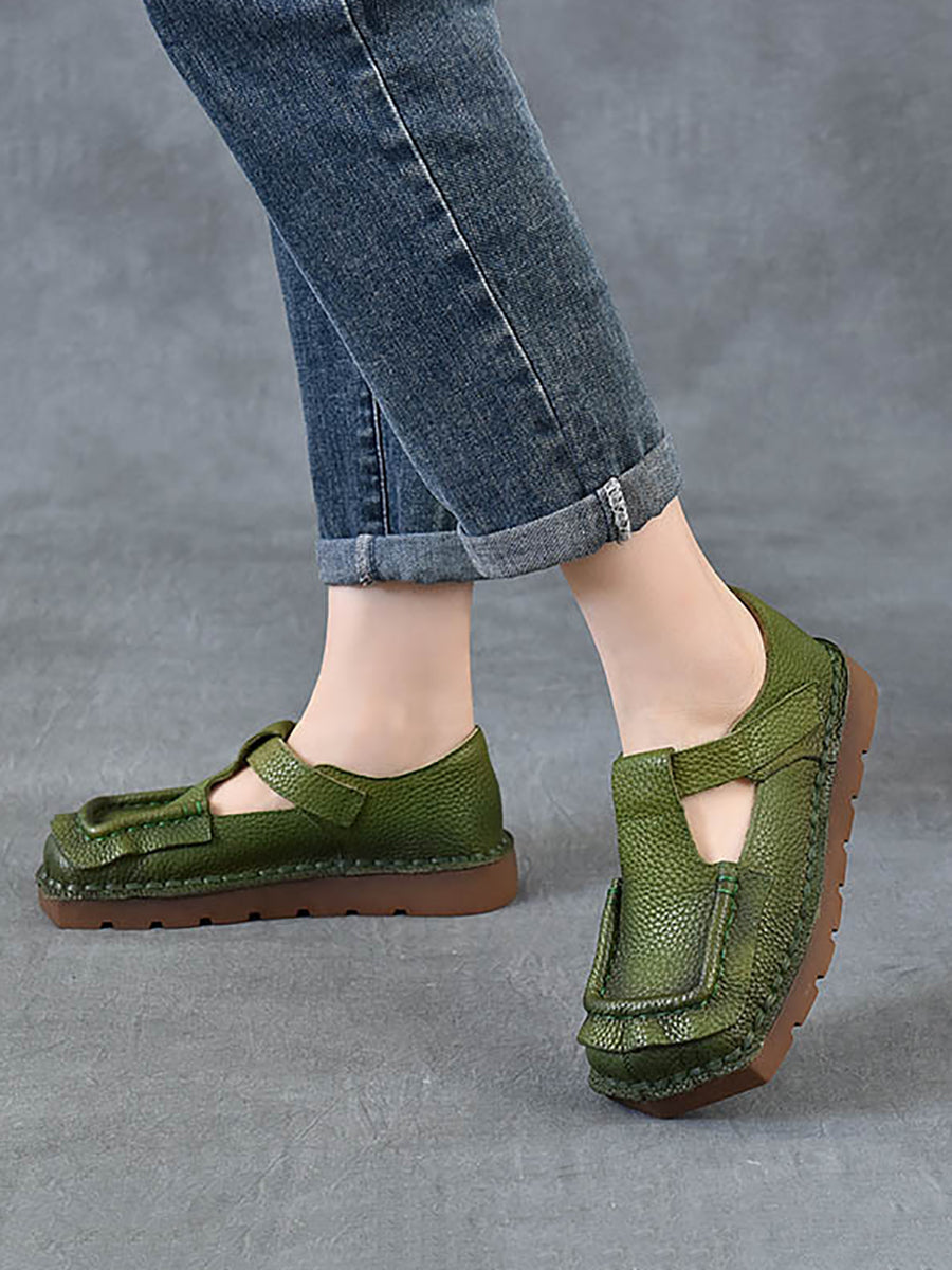 レディース ヴィンテージ 本革 スクエアトゥ シューズ