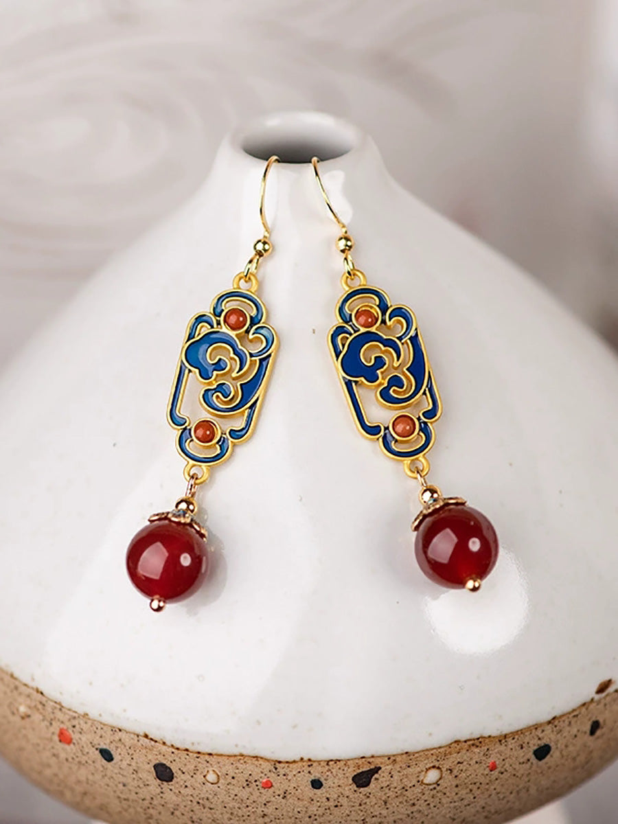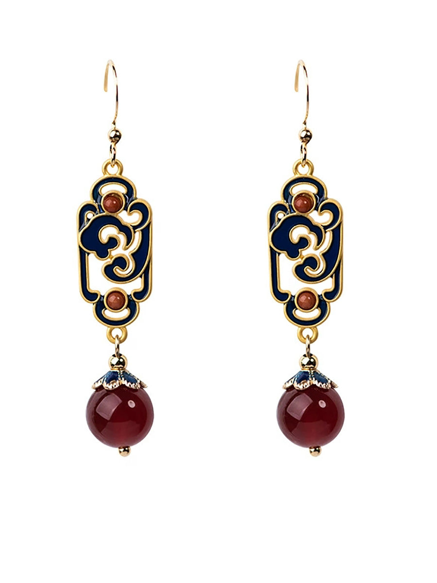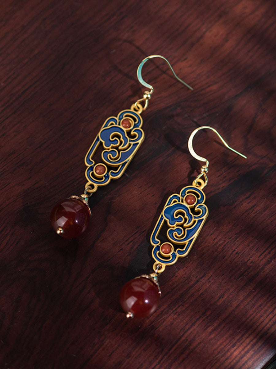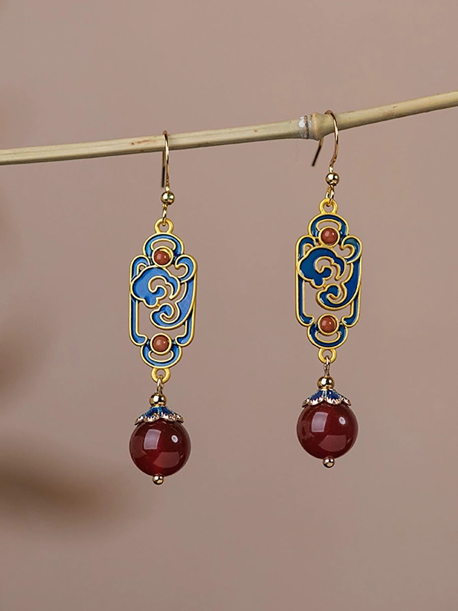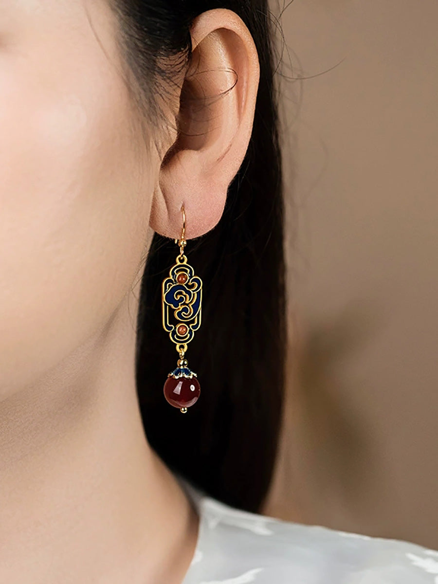 女性用ヴィンテージレッドアゲートエナメル合金イヤリング