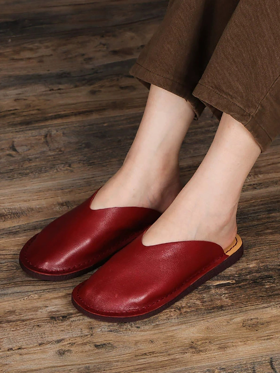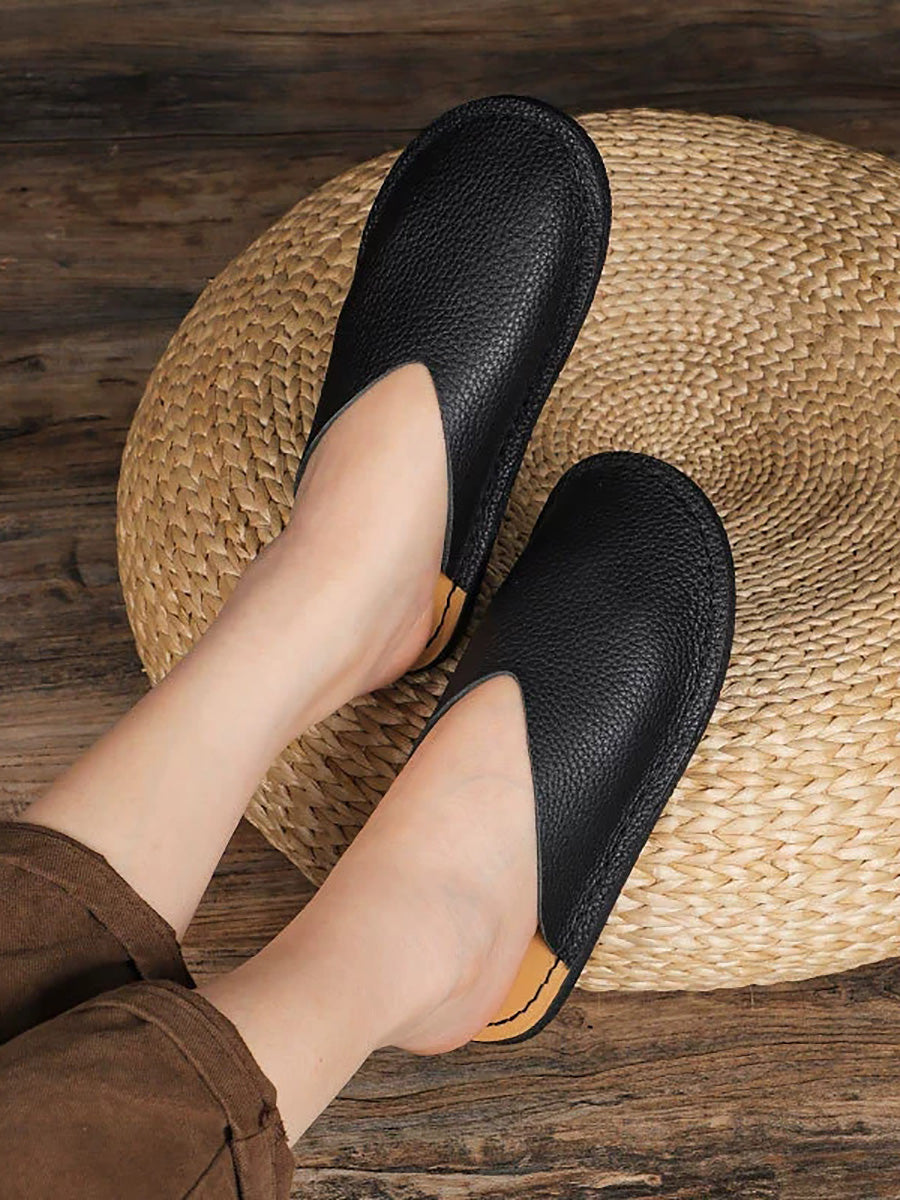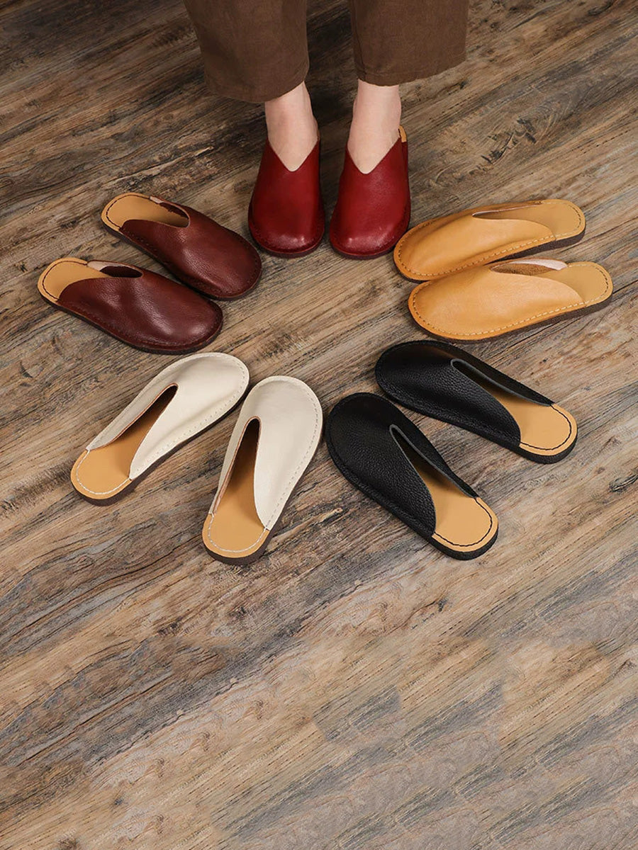 レディースカジュアル本革フラットスリッパ