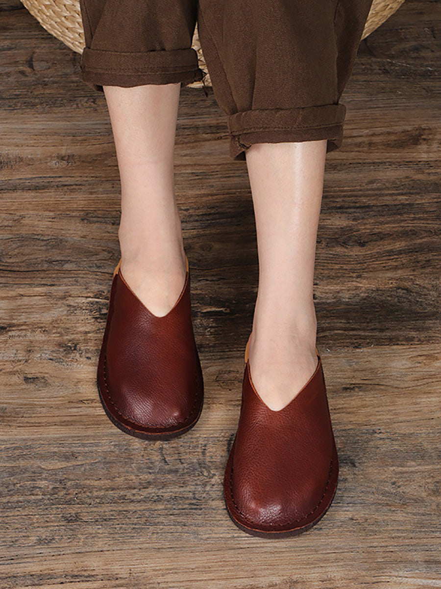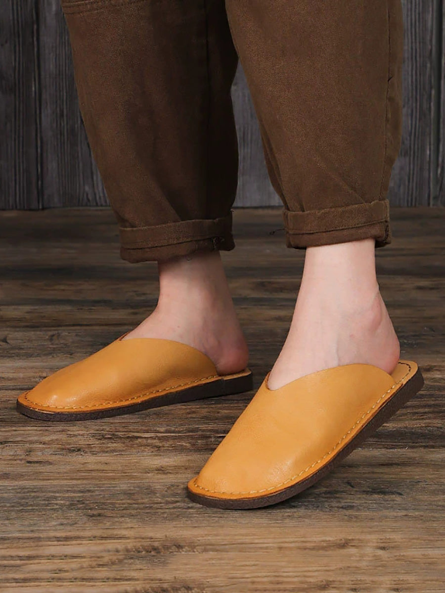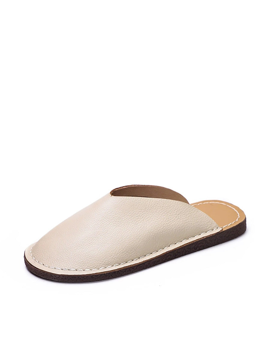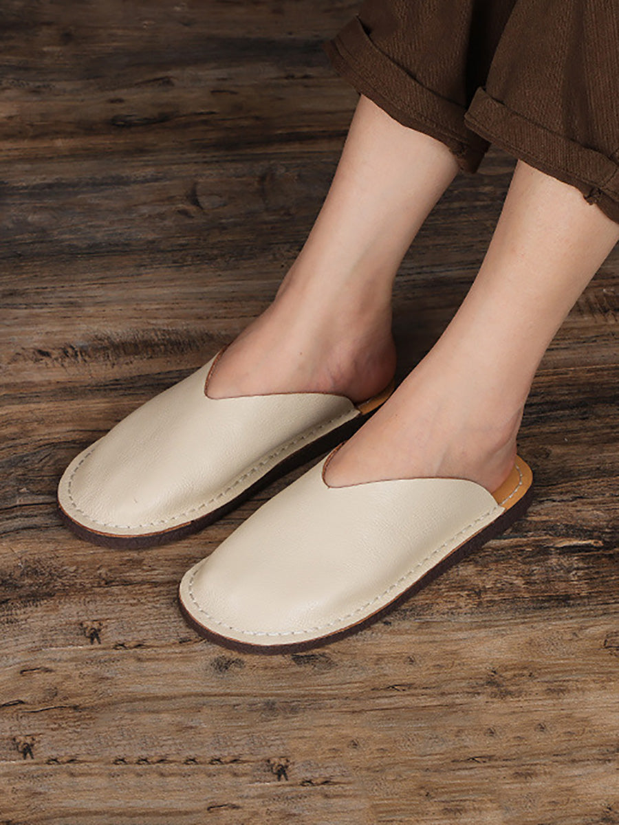 レディースカジュアル本革フラットスリッパ