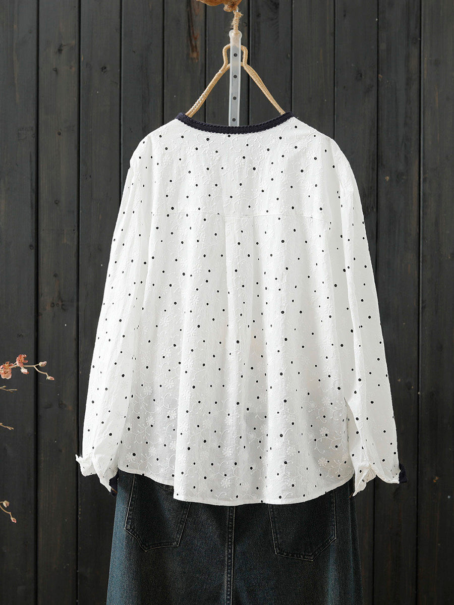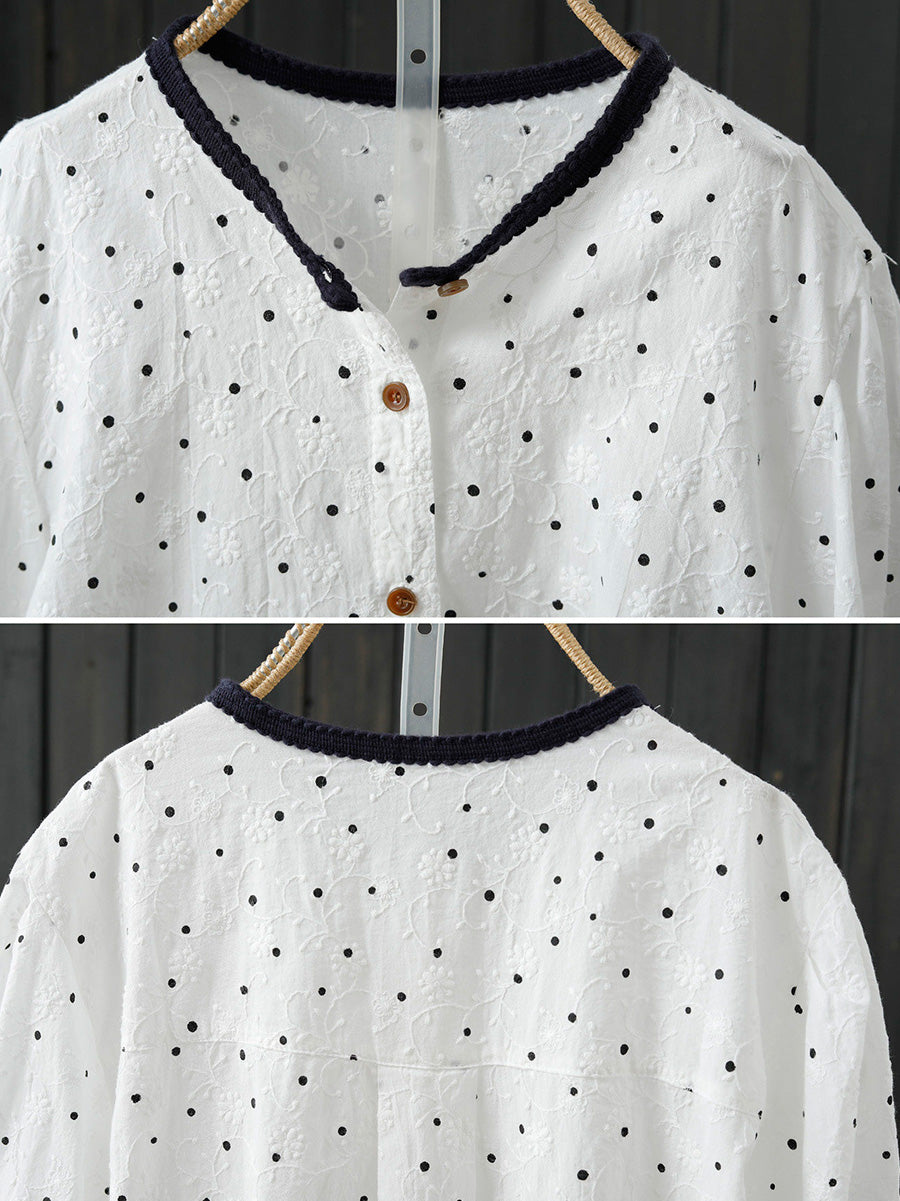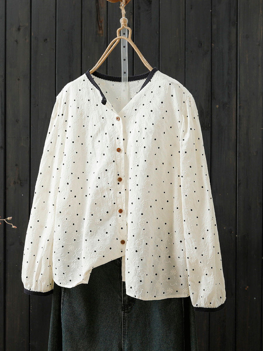 レディース 春 アーティスティック ドット 刺繍 100%コットン シャツ