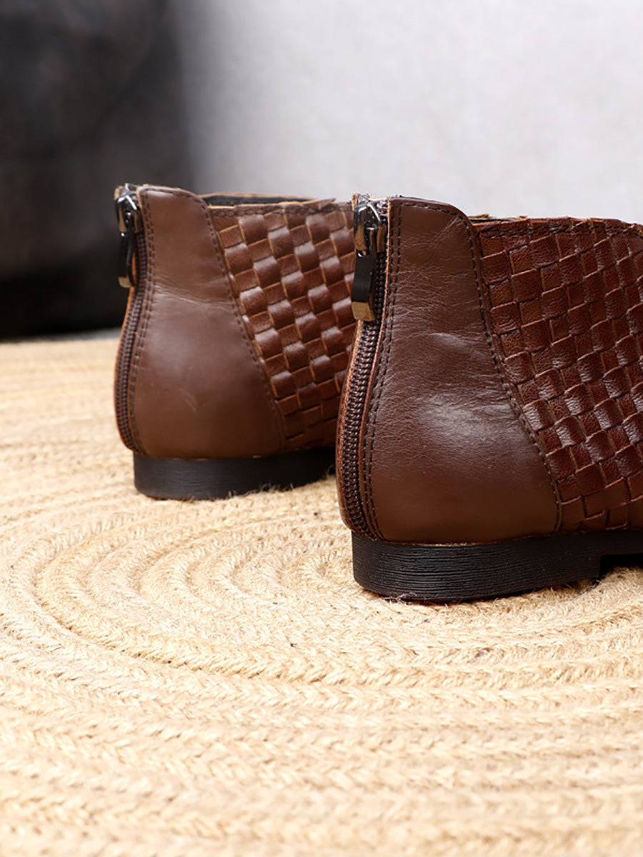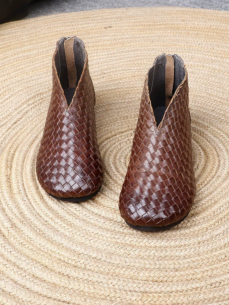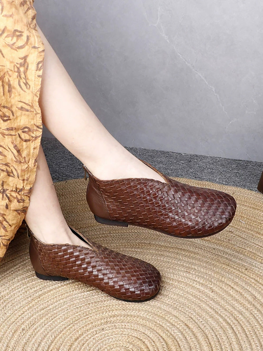レディース ヴィンテージ 本革 織り フラットシューズ