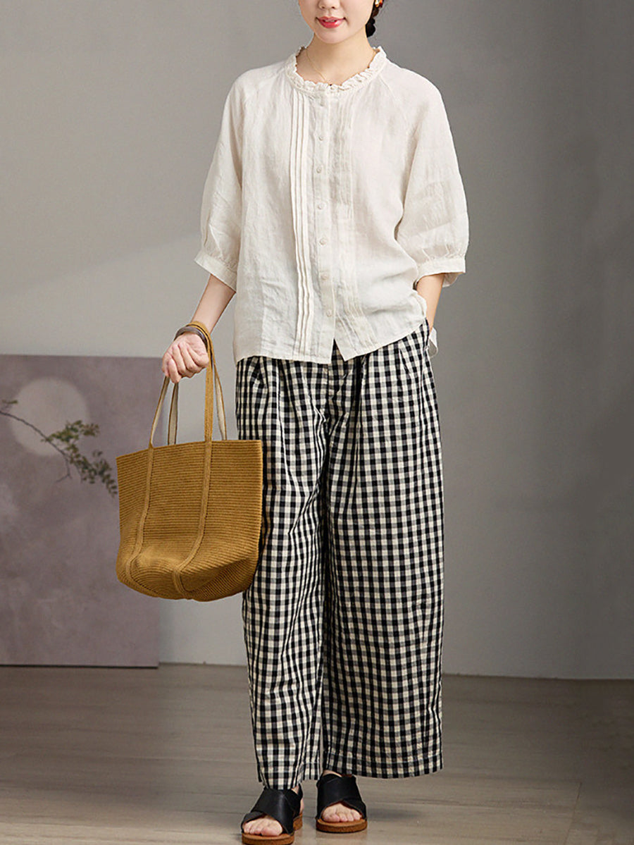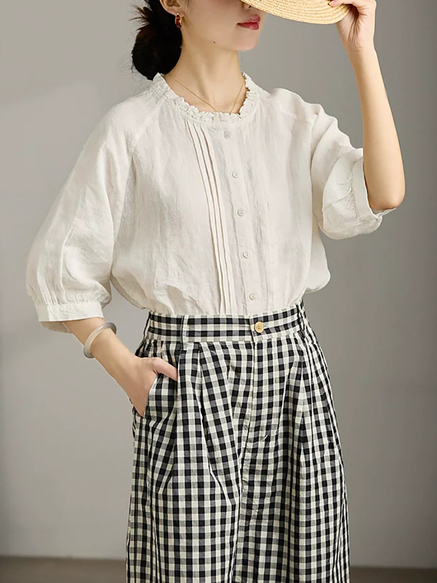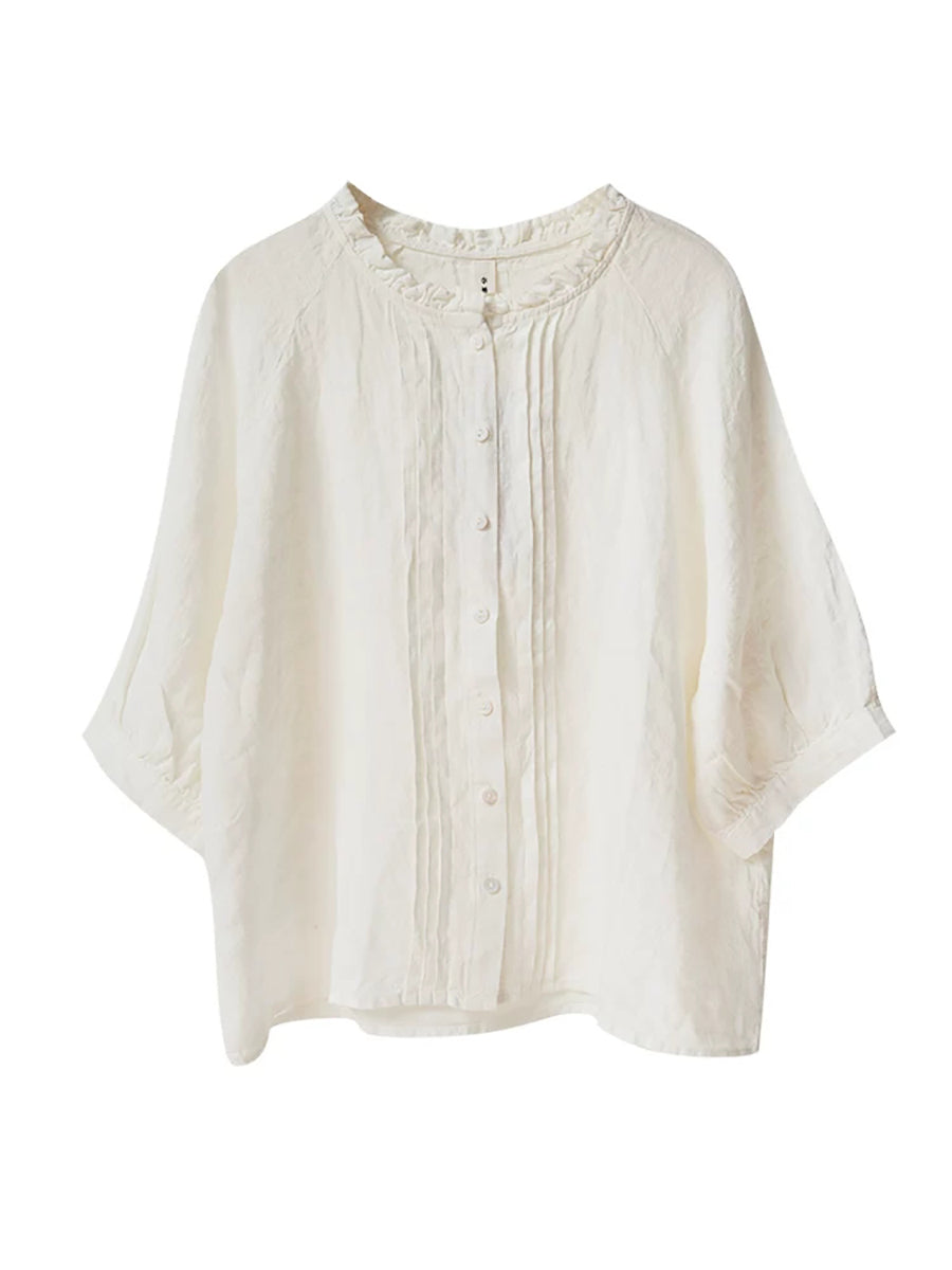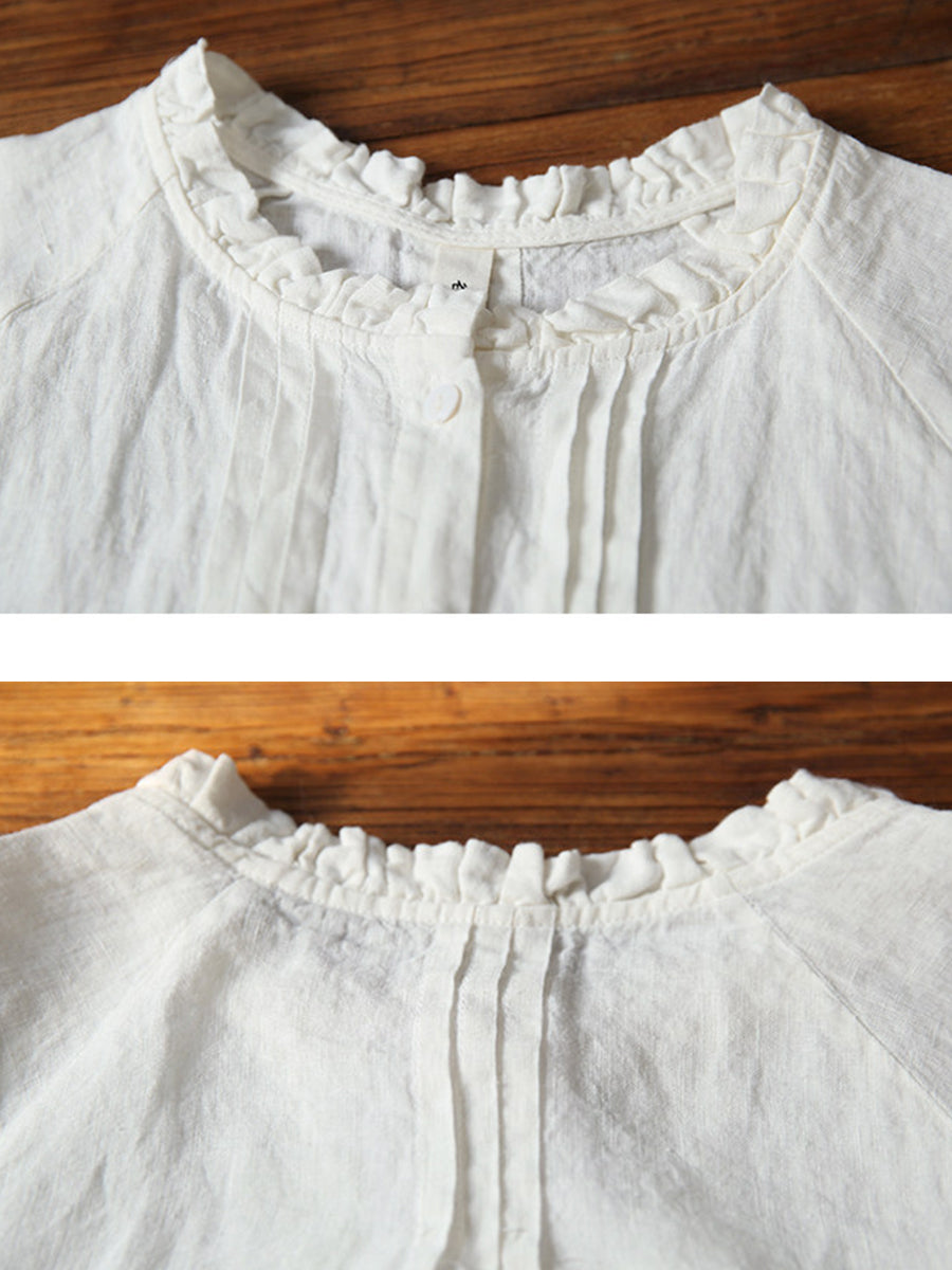 レディース サマー シャーリング スタンドカラー 100%リネン ブラウス