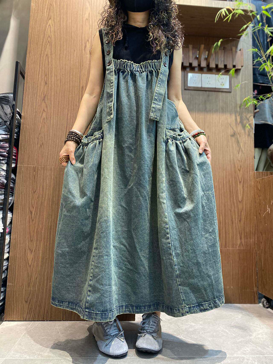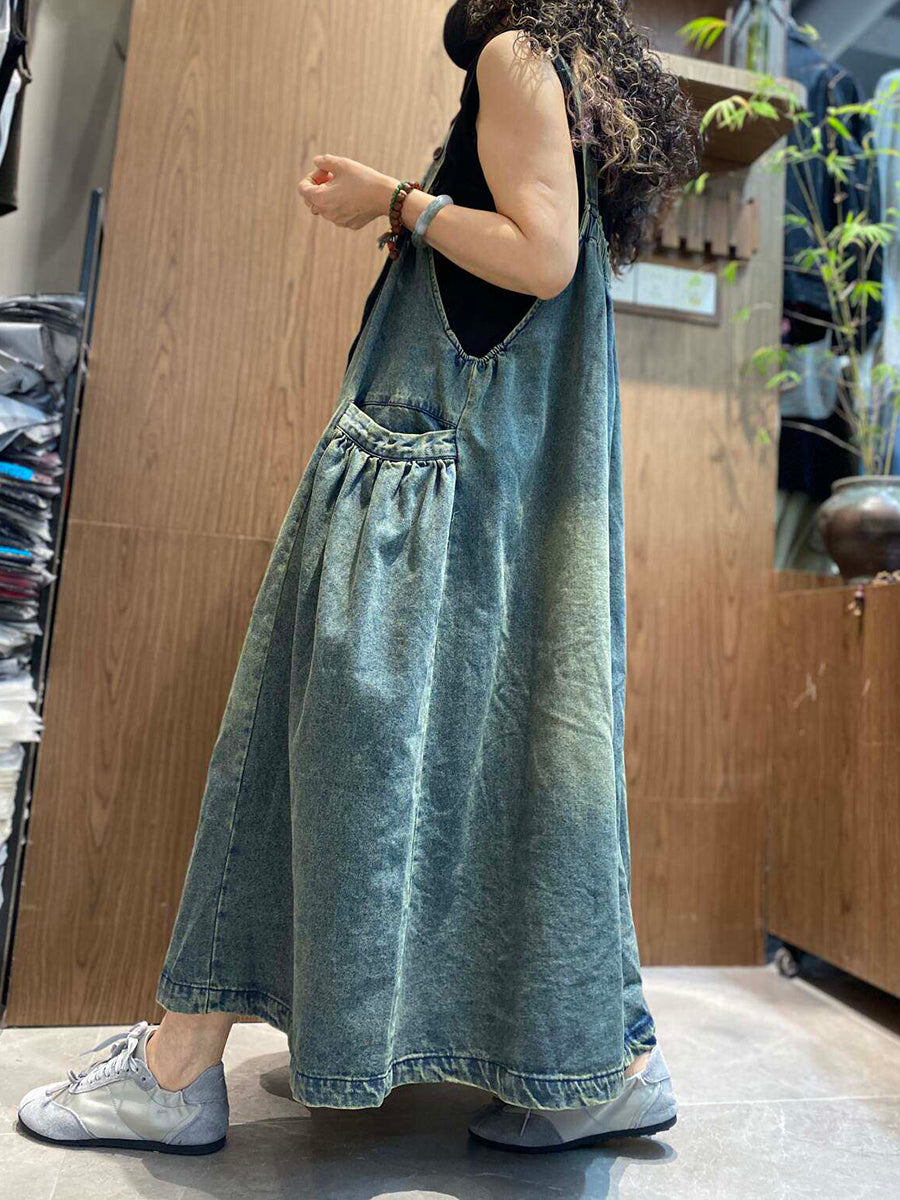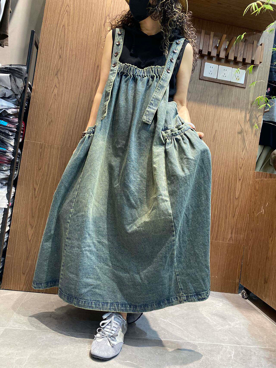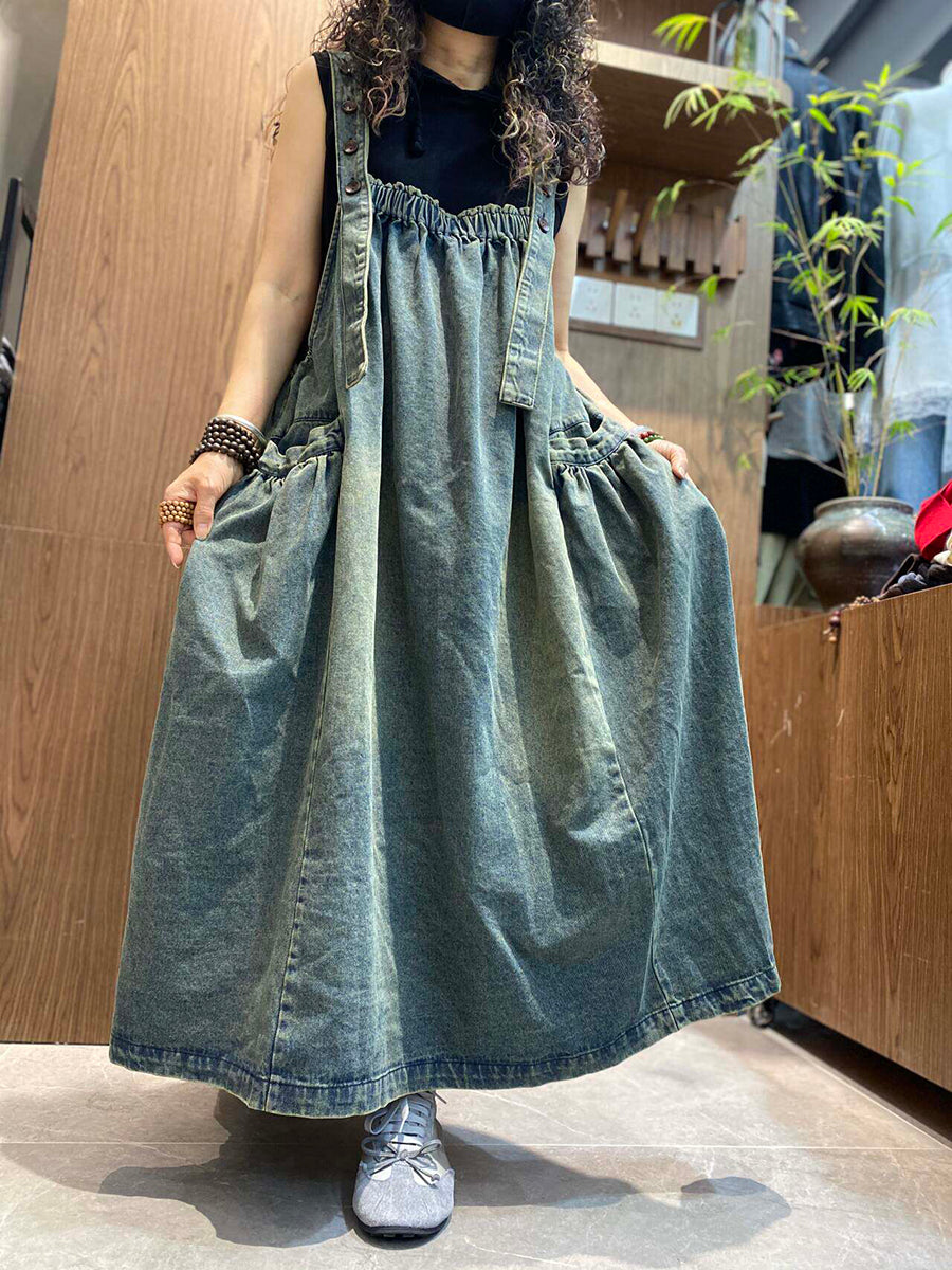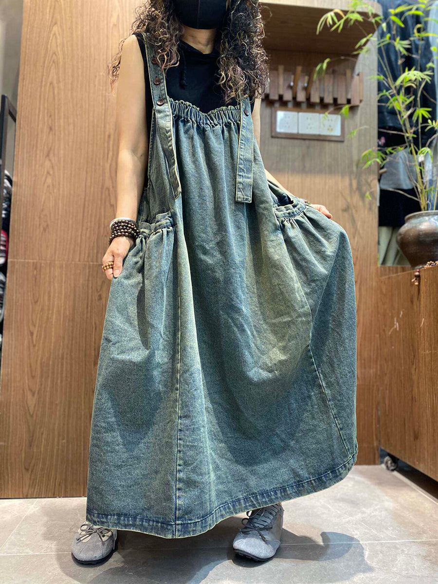 レディース サマー ヴィンテージ デニム オーバーオールドレス