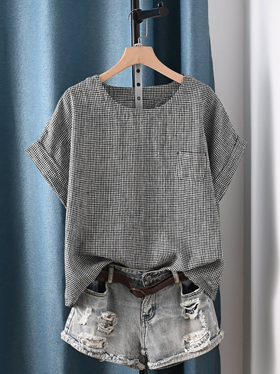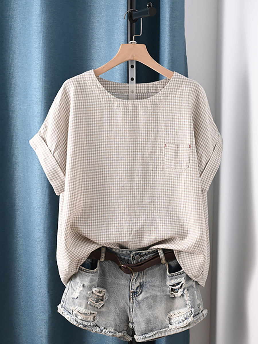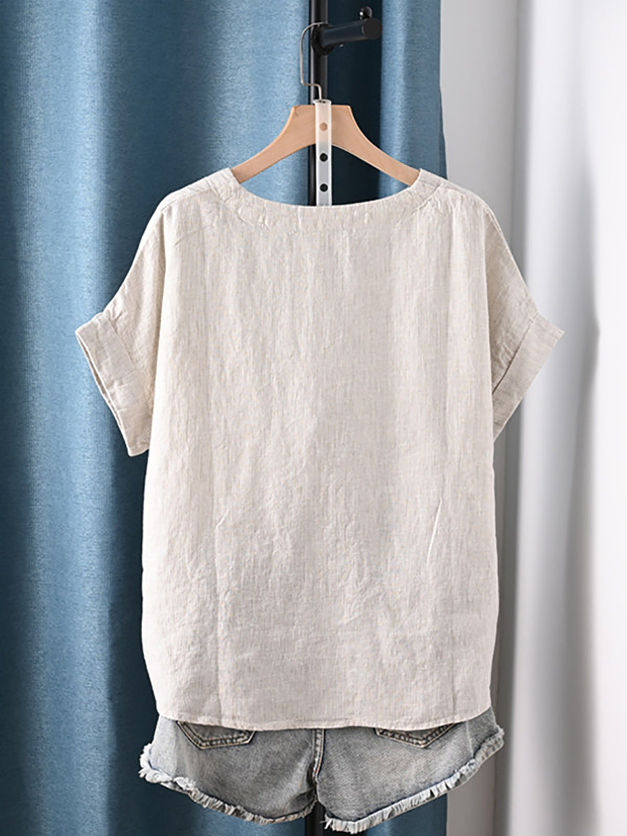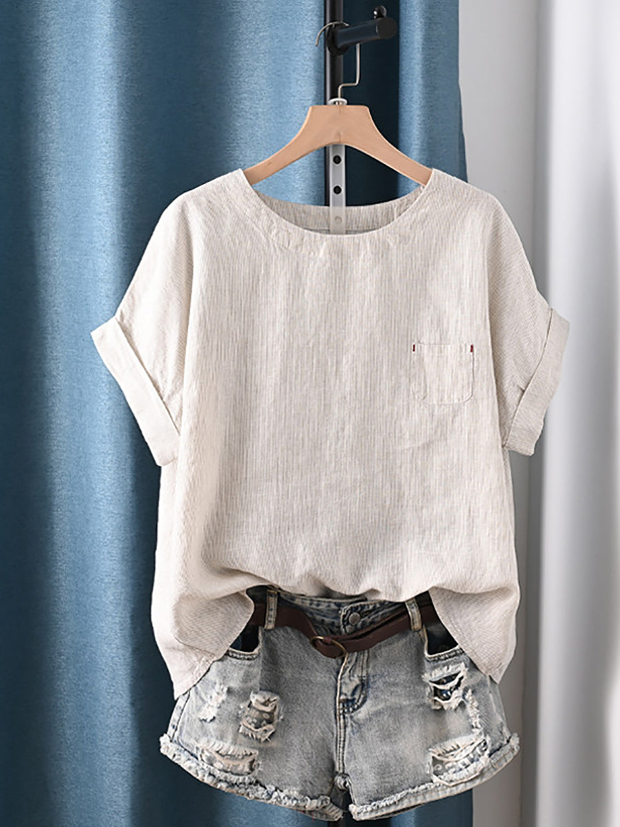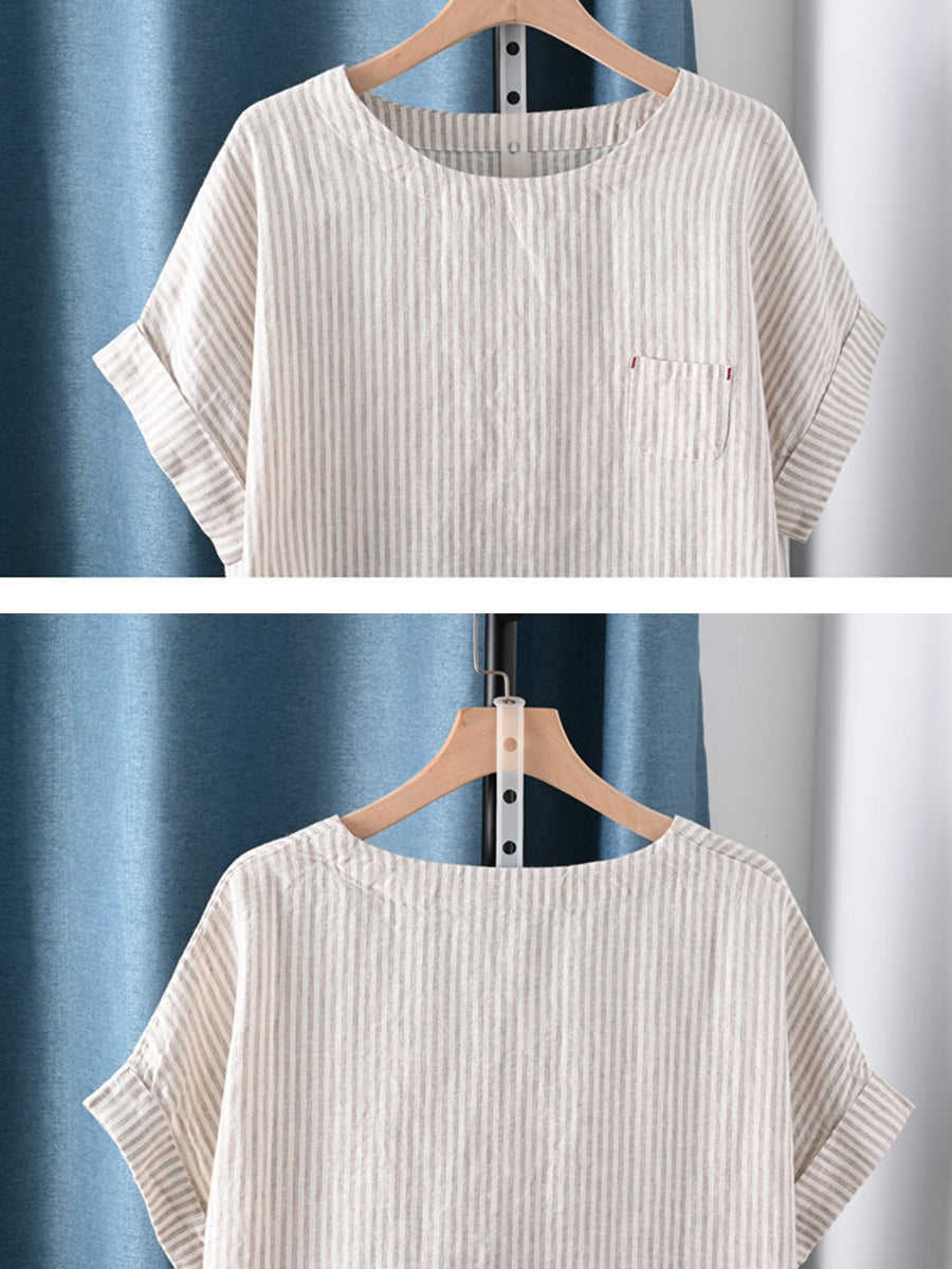 レディース 夏物 アーティスティック ストライプ ラウンドネック 100%コットン ブラウス
