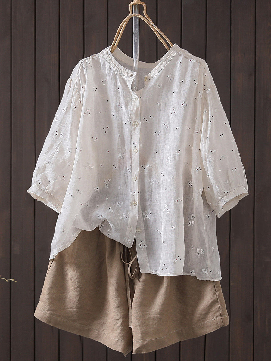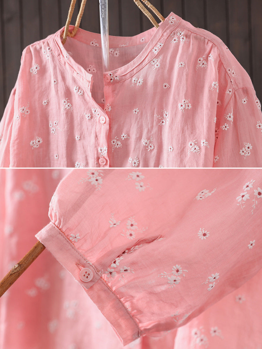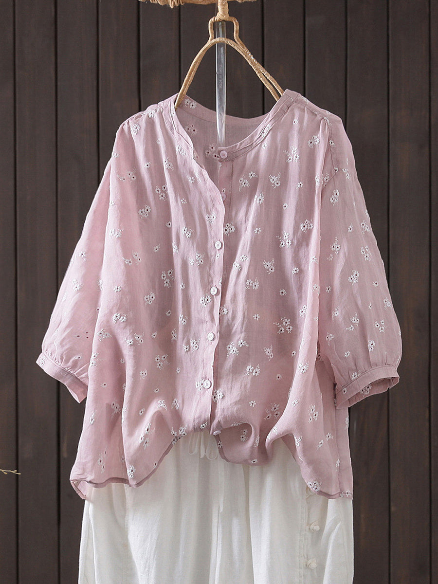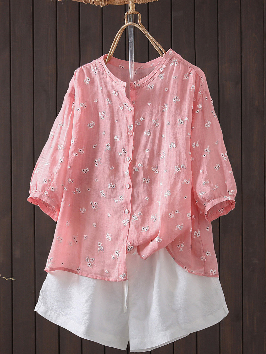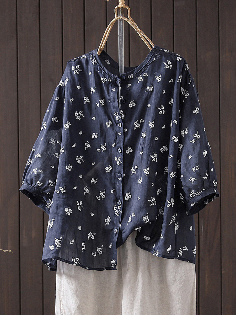 レディース 夏用 カジュアル 花柄 100%ラミーシャツ