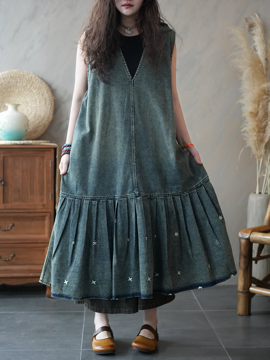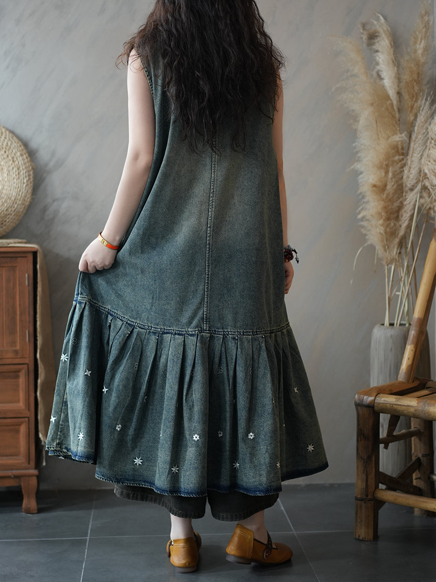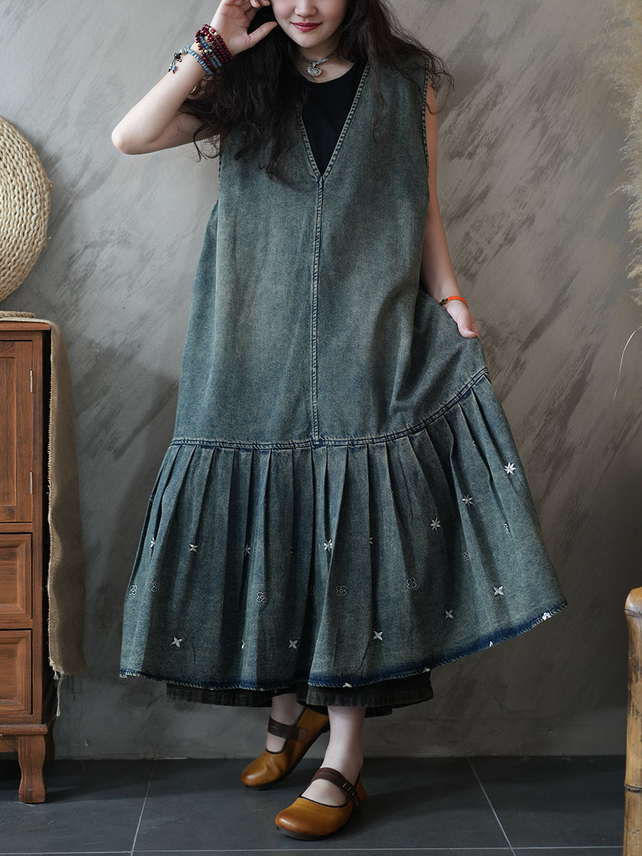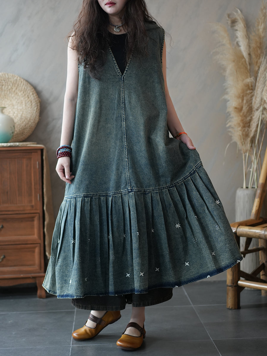 レディース 夏物 ヴィンテージ デニム ベスト プリーツドレス