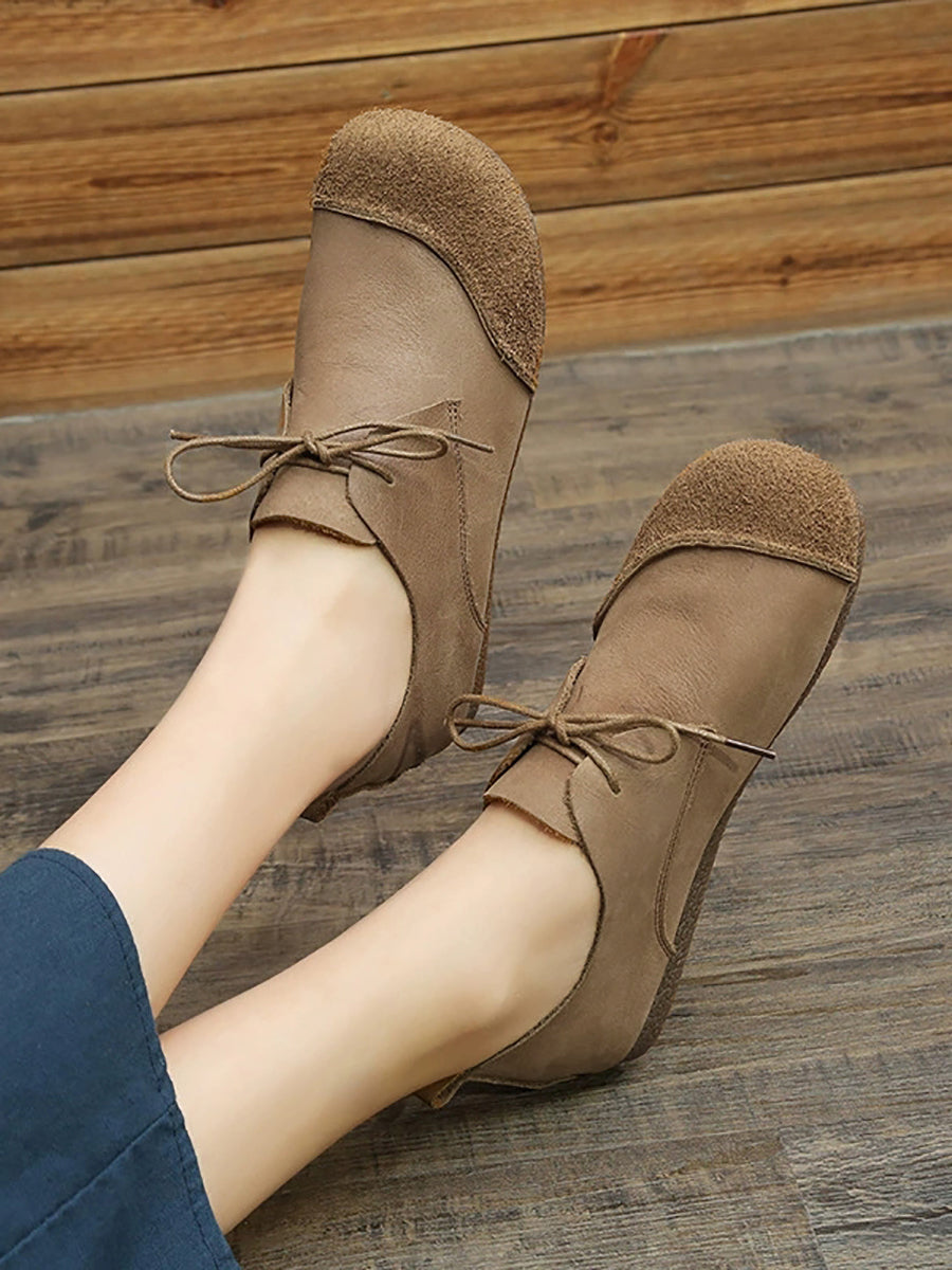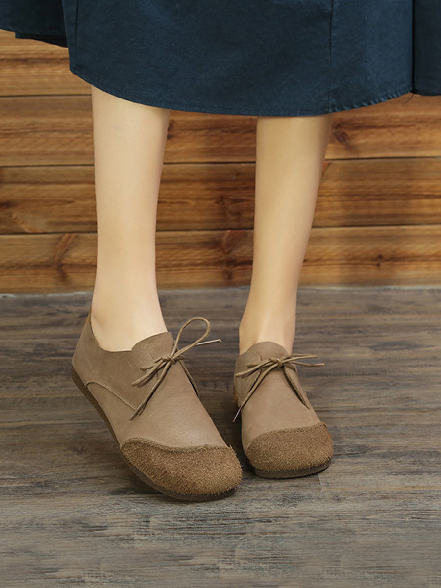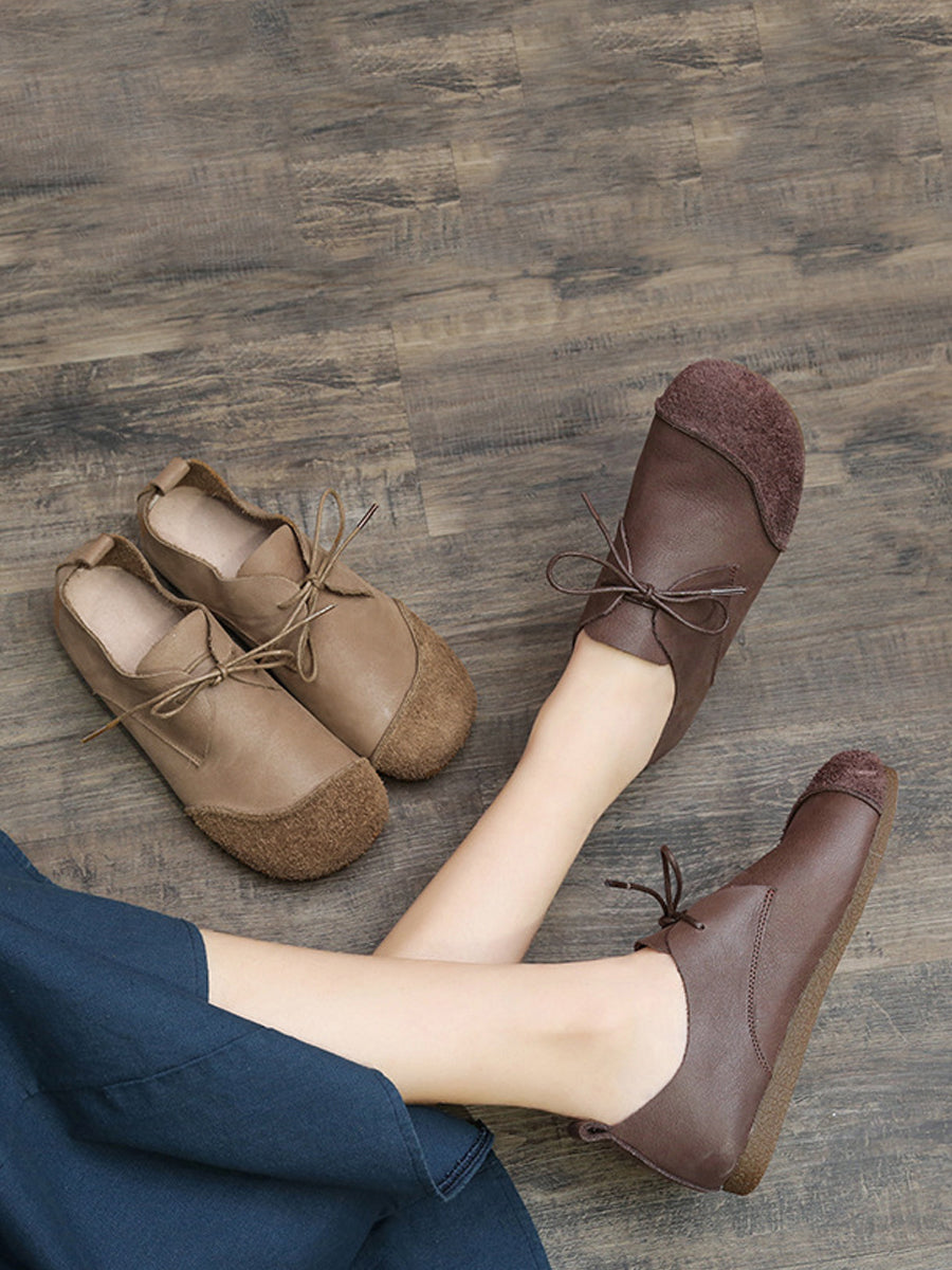 レディース レトロ 本革 スプライス フラットシューズ