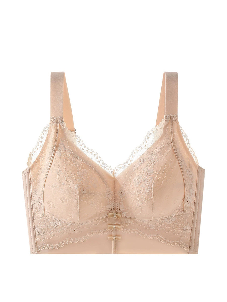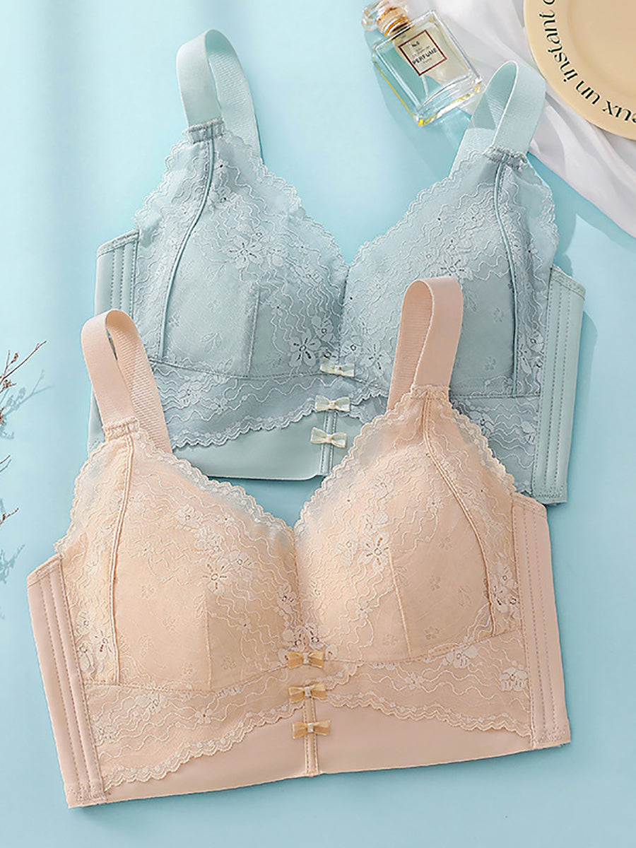 女性用アーティスティックフラワーレースシルクワイヤレスブラ