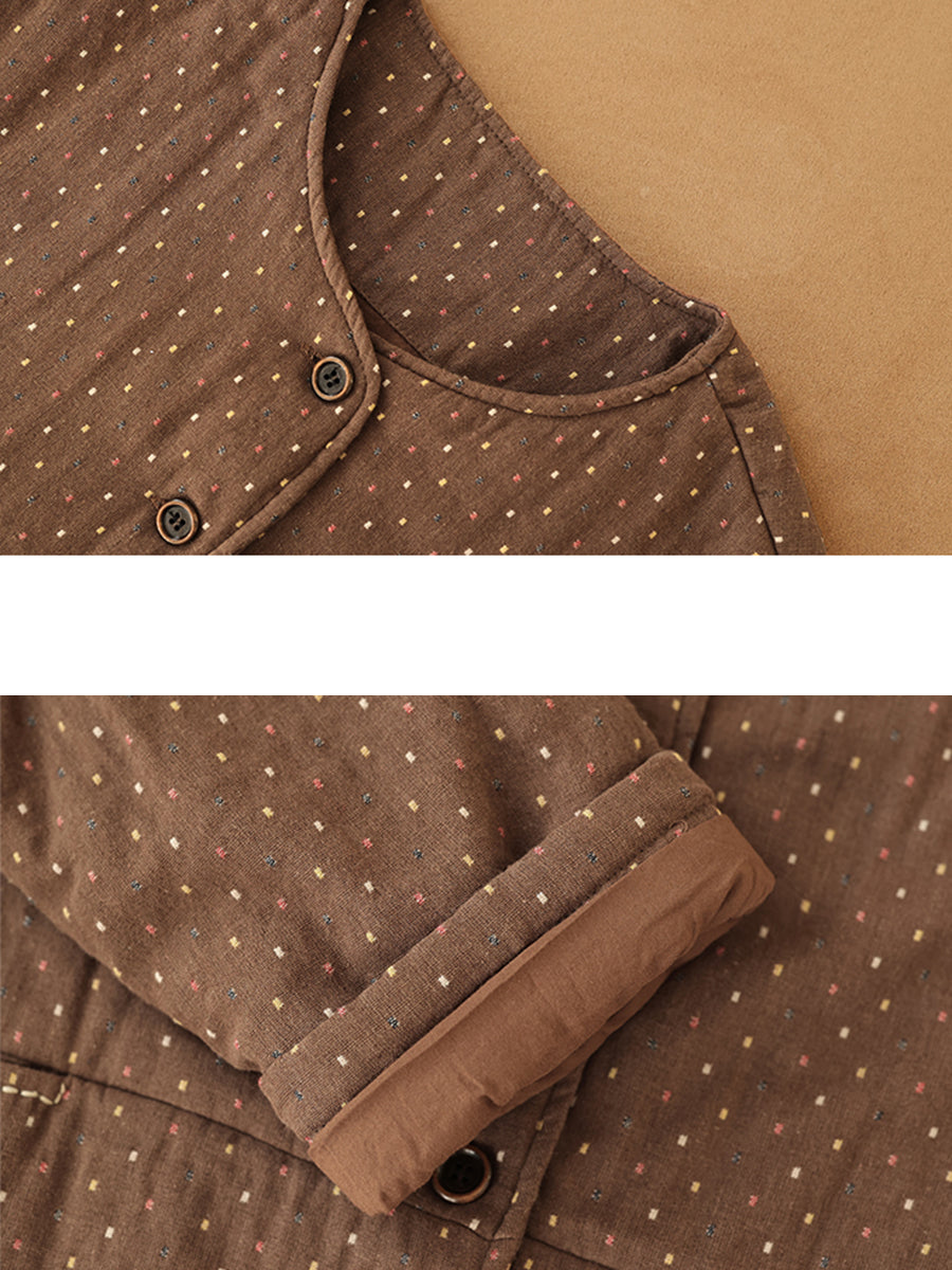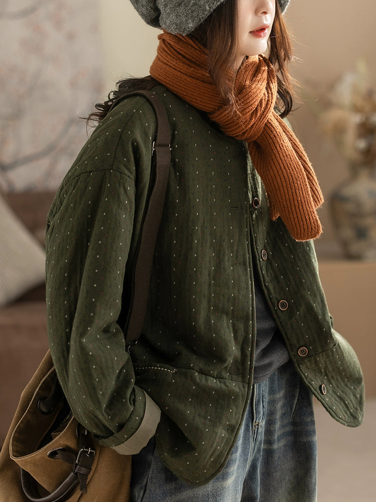 レディース 冬用 レトロドット Oネック パッド入りコート