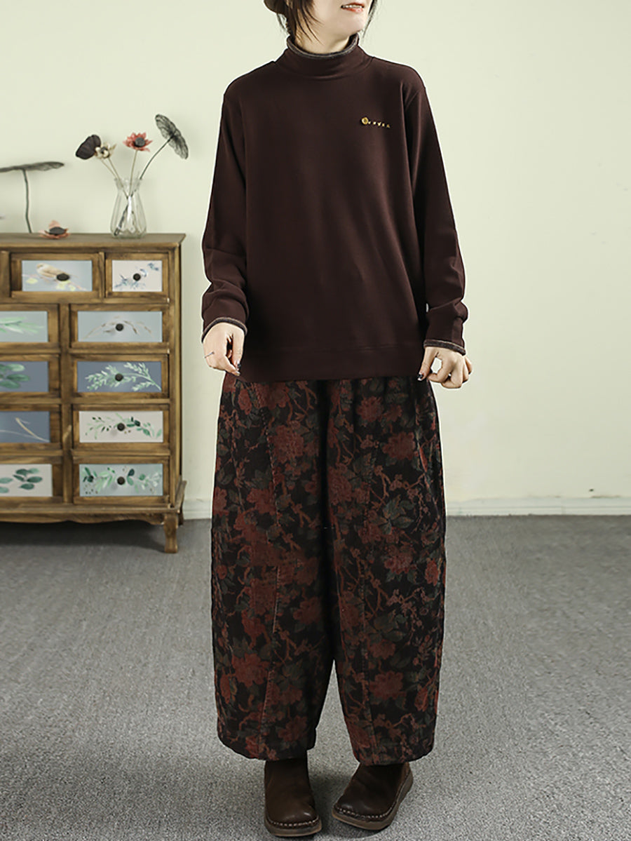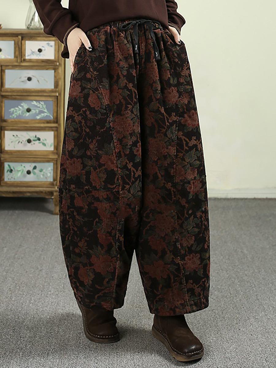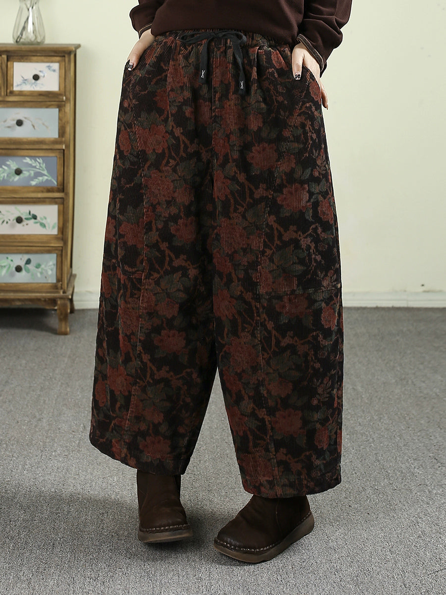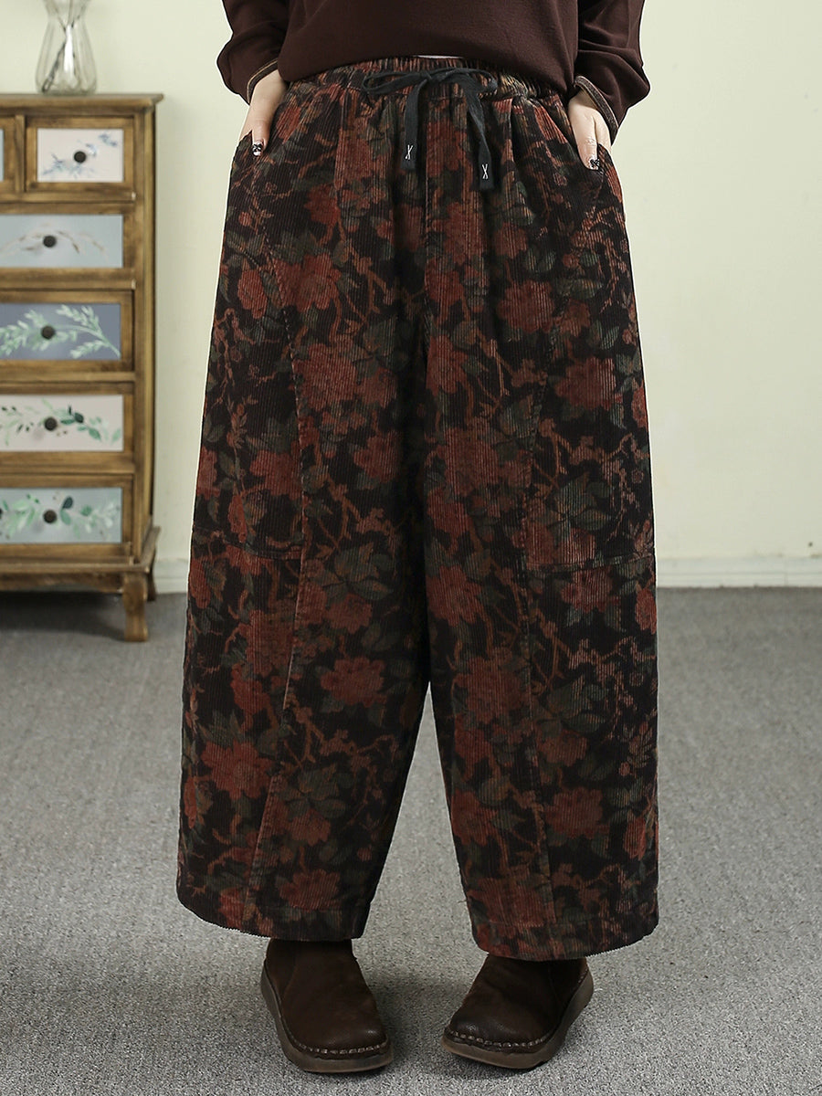 レディース ウィンターフラワーコーデュロイパッド入りワイドレッグパンツ