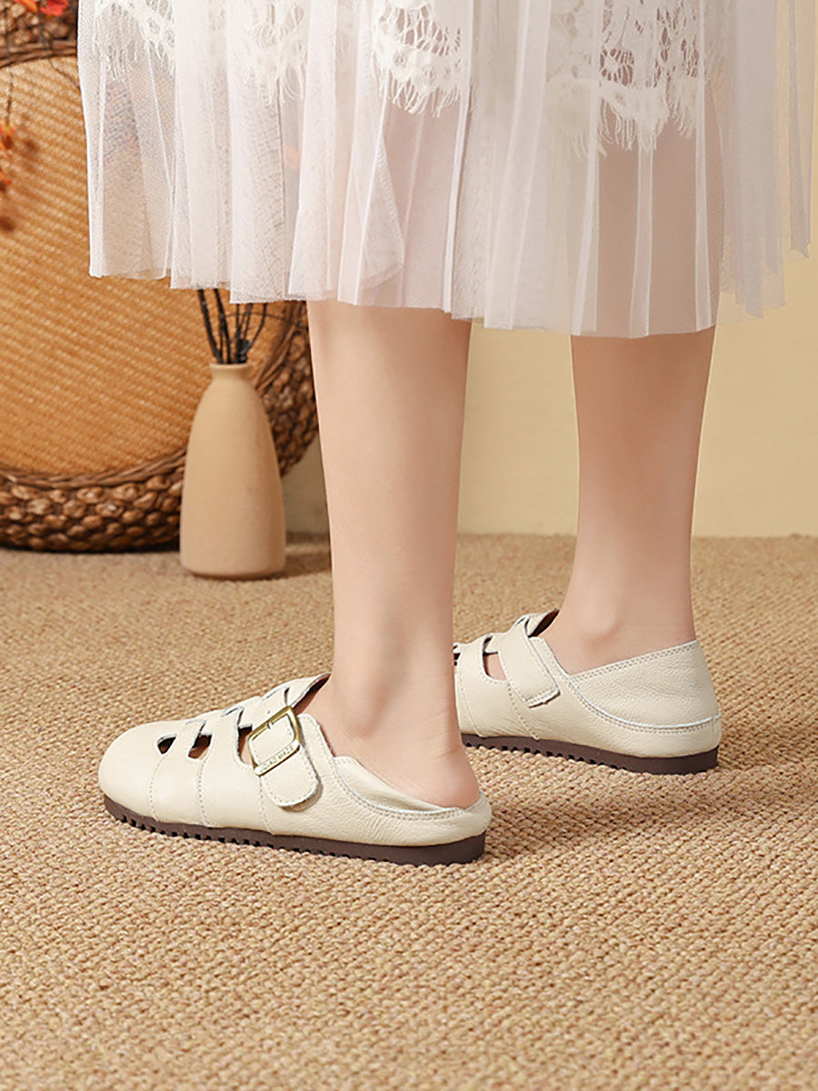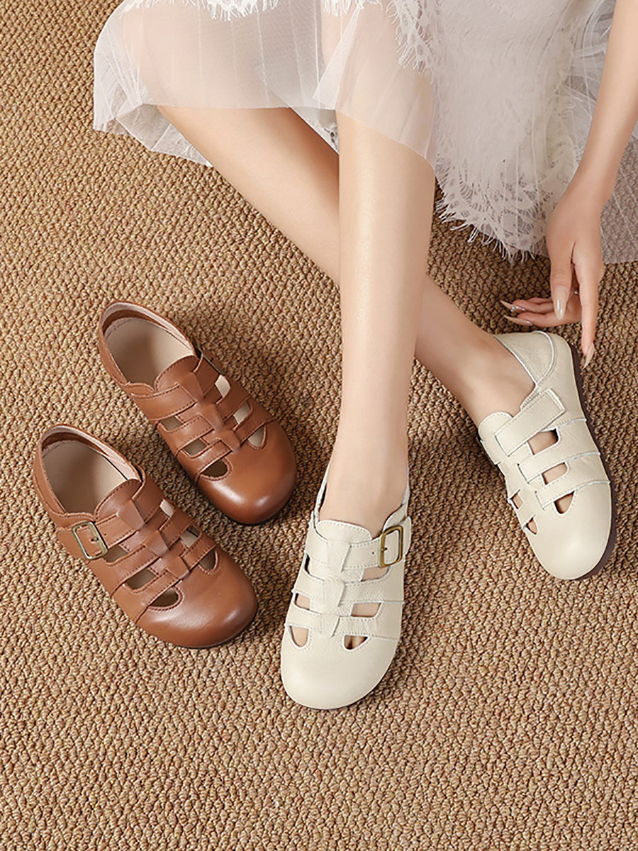 レディース 夏用 ヴィンテージ 本革 フラットサンダル