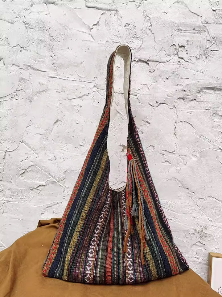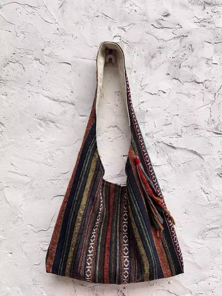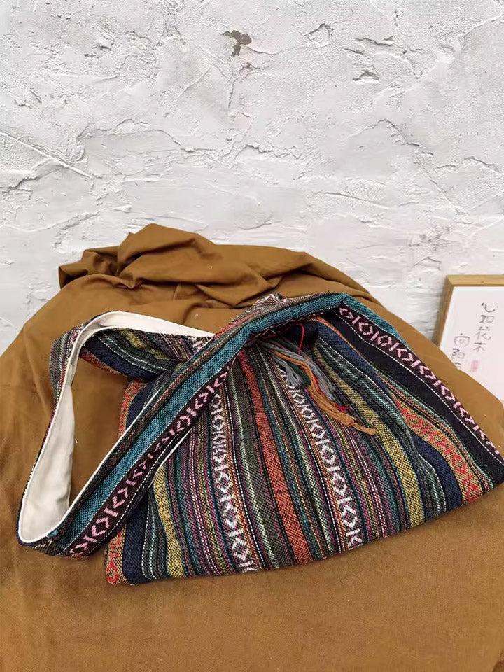 3038 エスニックカラーブロッキングストライプショルダーバッグ