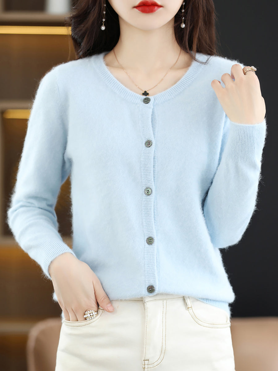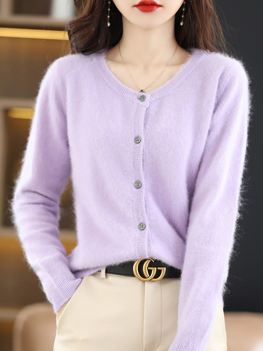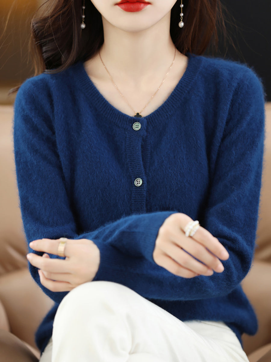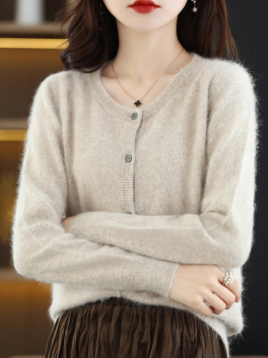 レディース 秋 アーティスティック ピュアカラー Oネック ウール カーディガン セーター