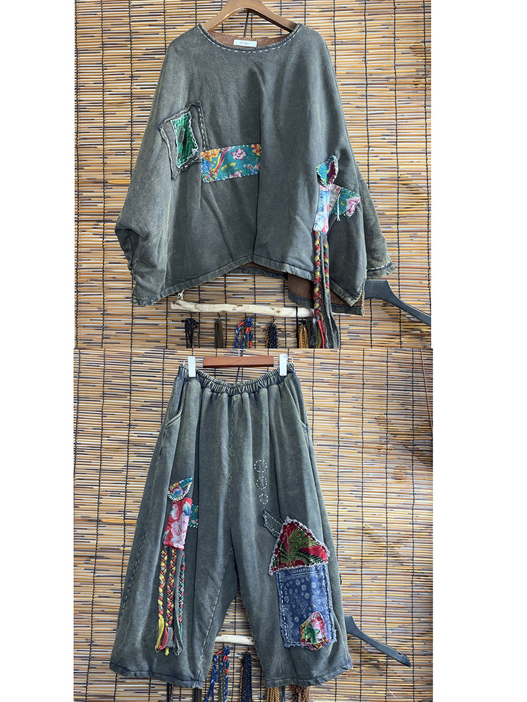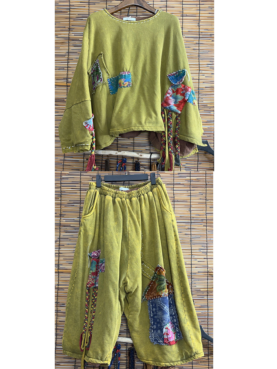 レディース 冬 レトロ パッチワーク Oネック タッセル スーツ