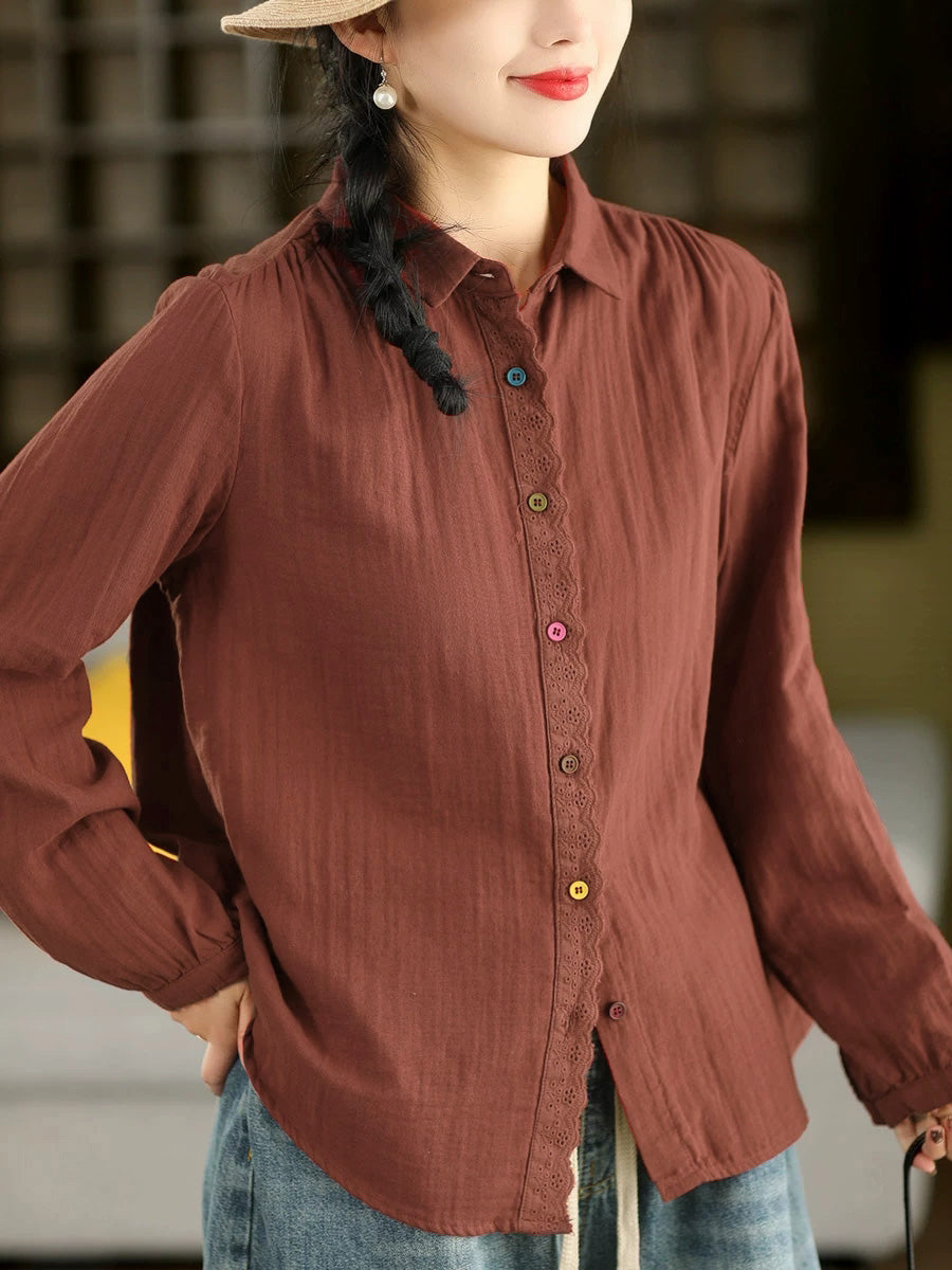 レディース 春 アーティスティック スプライス 100%コットンシャツ