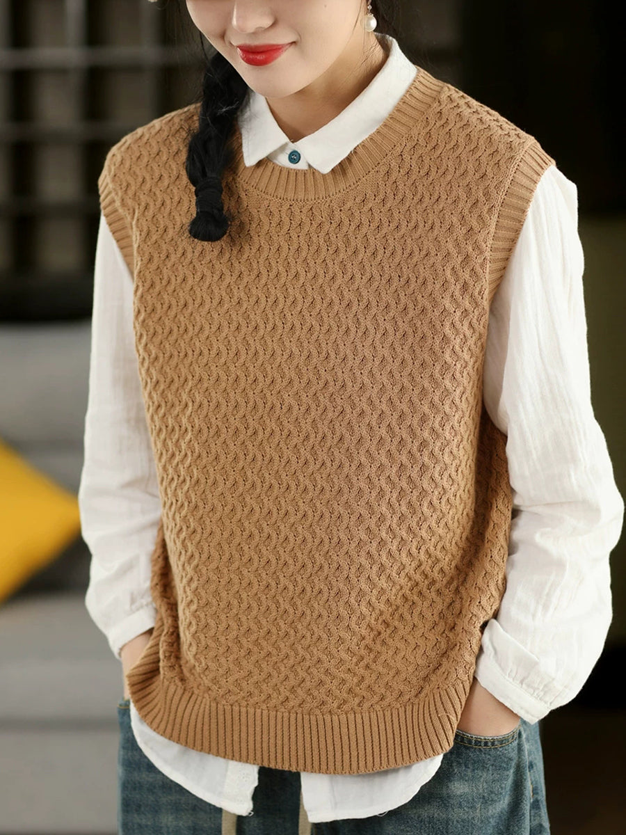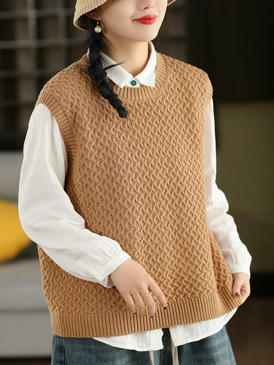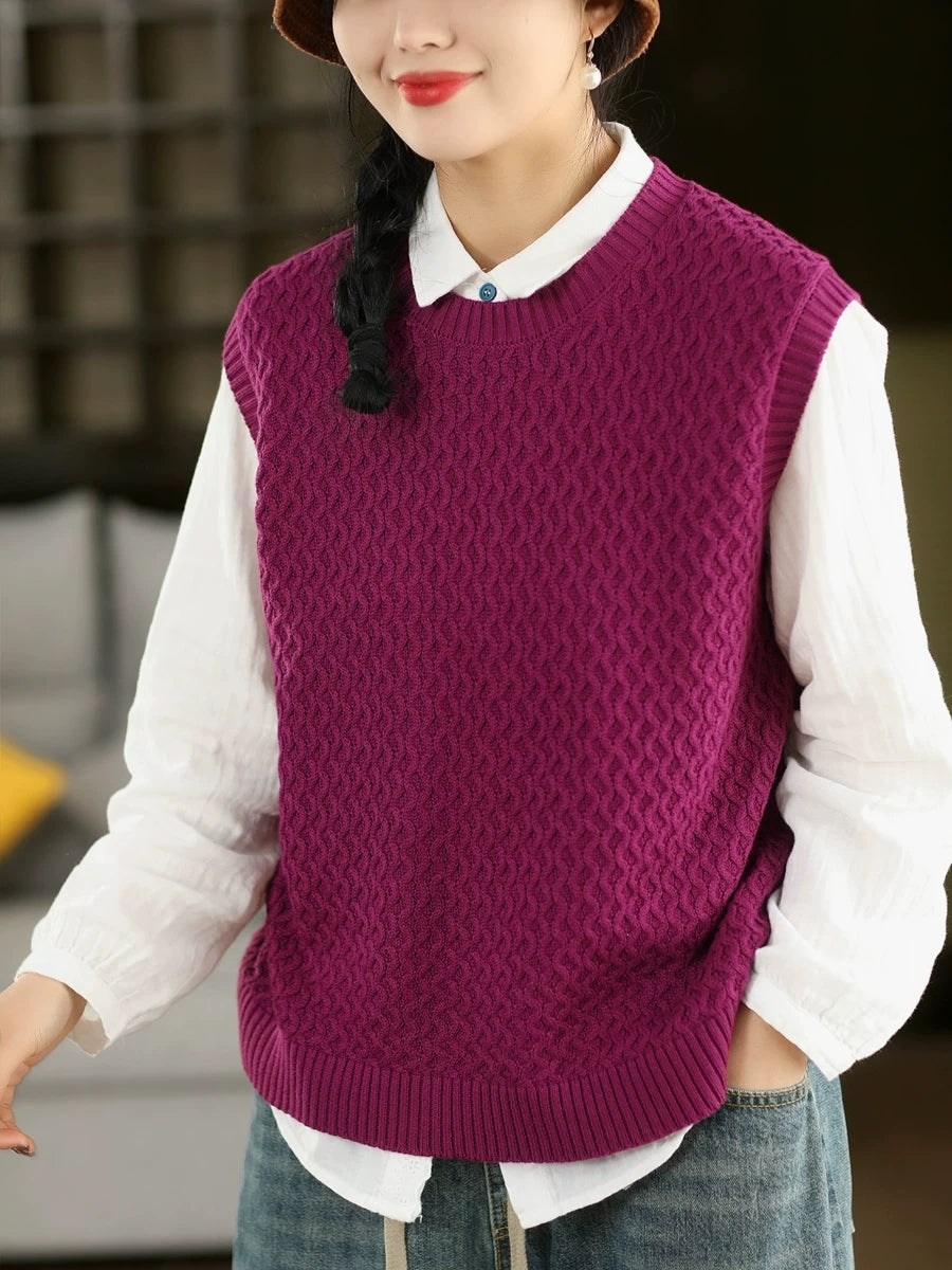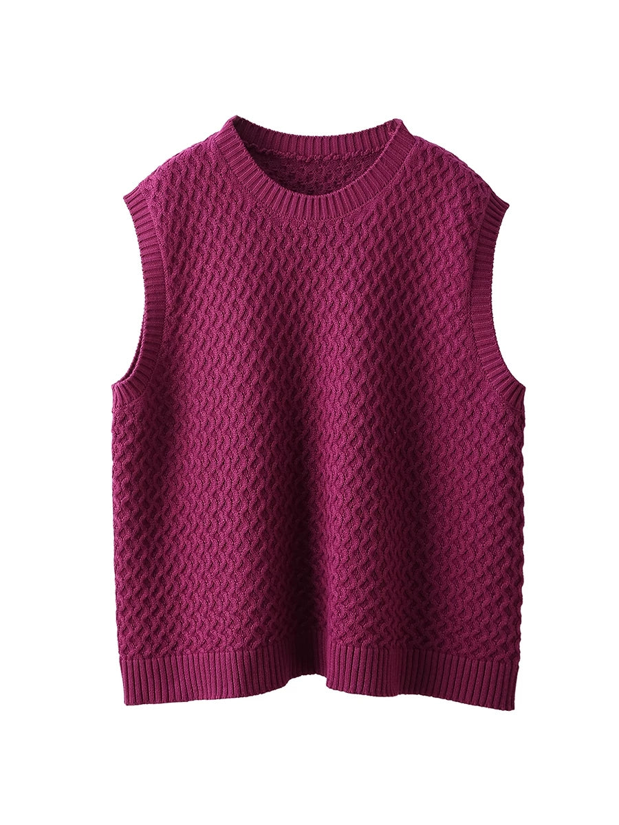 レディース 春 アーティスティック Oネック ピュアカラー ニットベスト