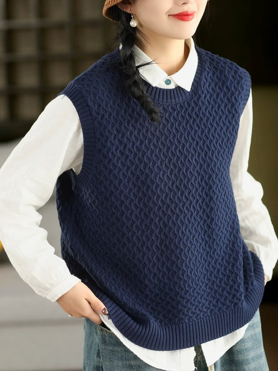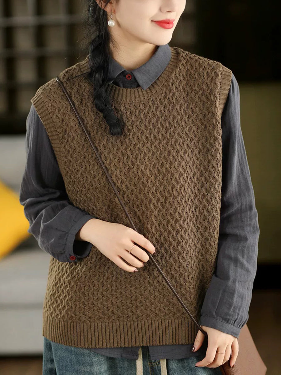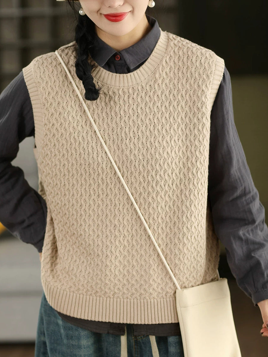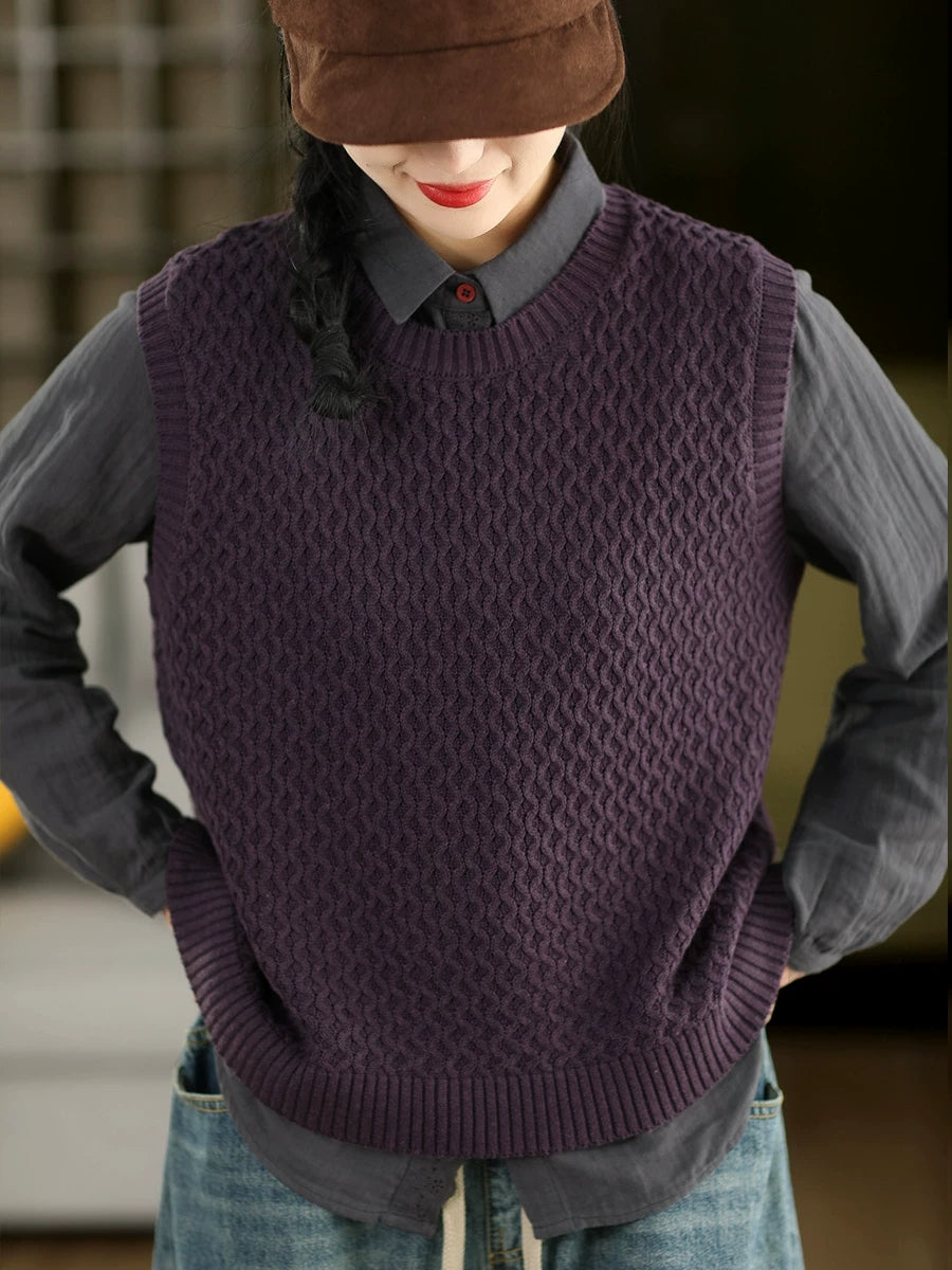 レディース 春 アーティスティック Oネック ピュアカラー ニットベスト