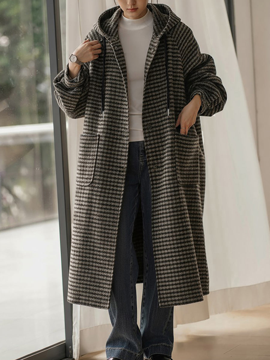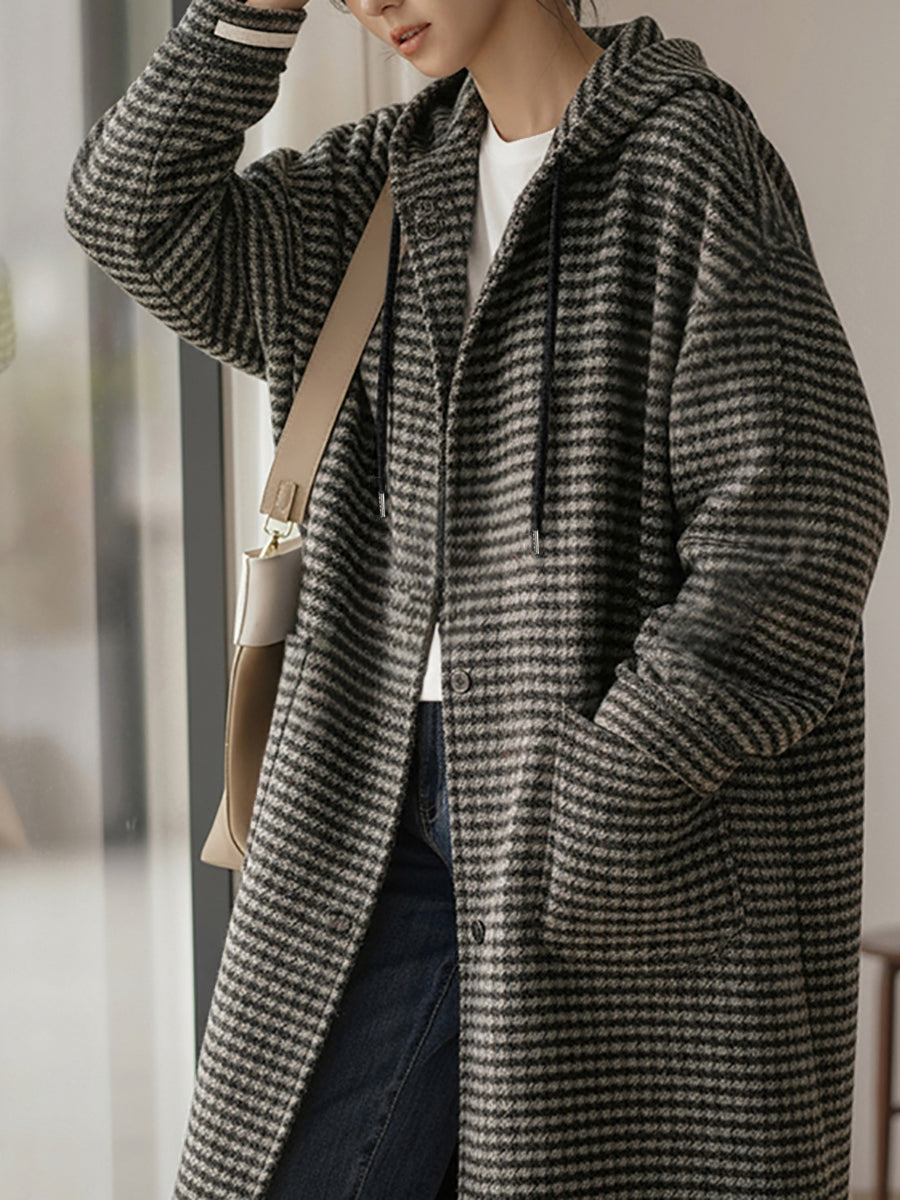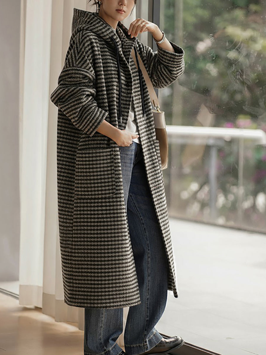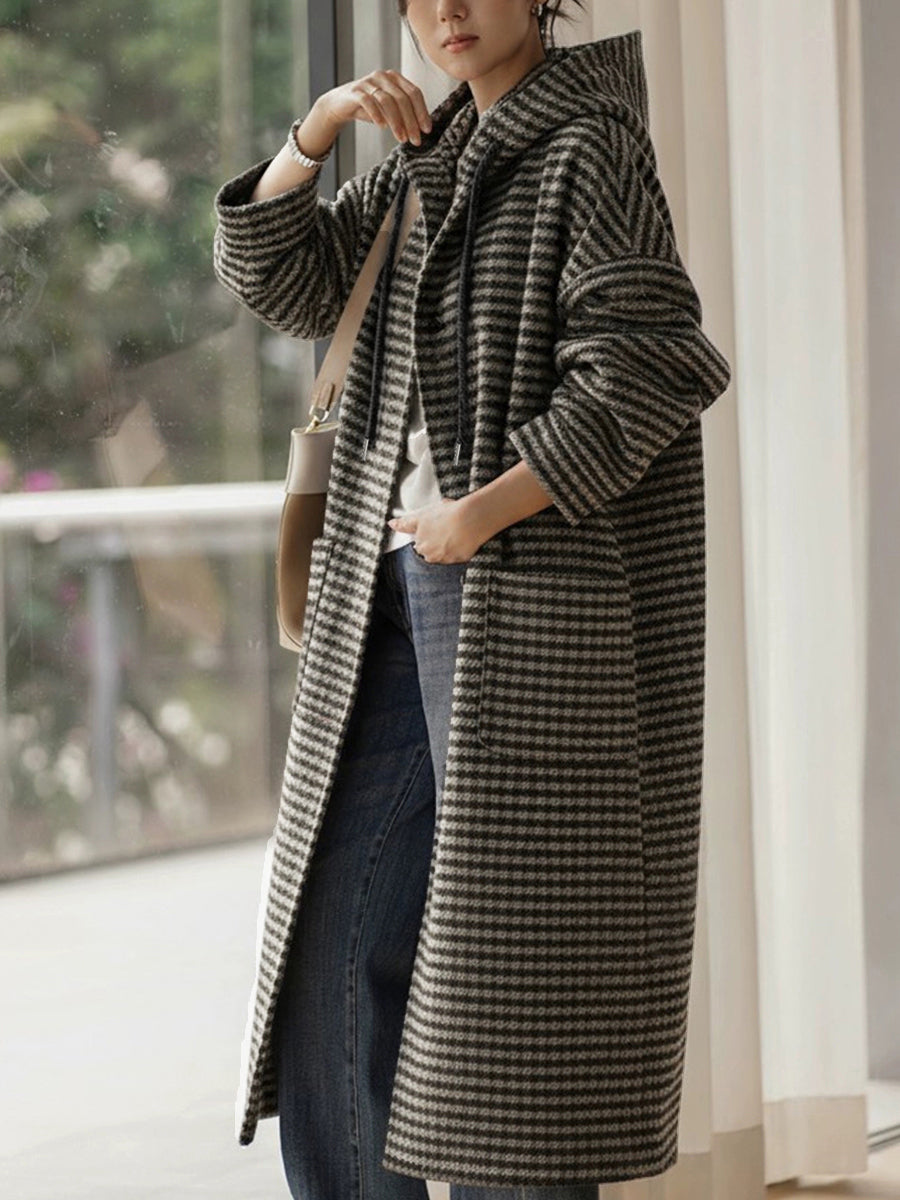 レディース ヴィンテージ 冬 ストライプ フード付きコート