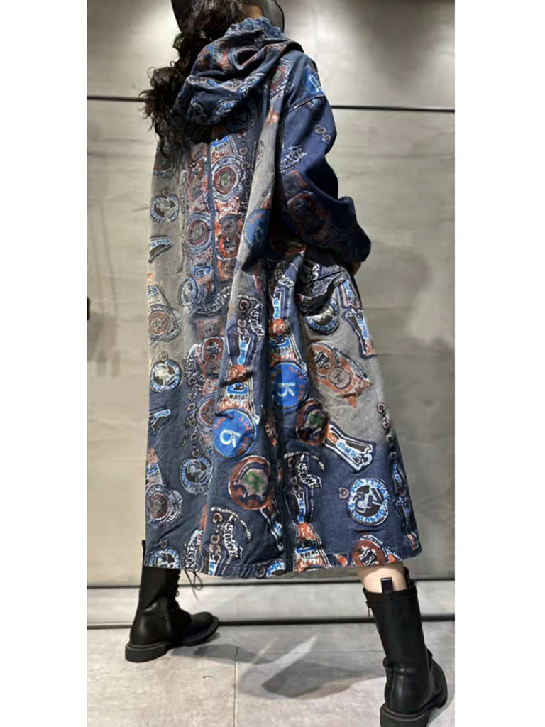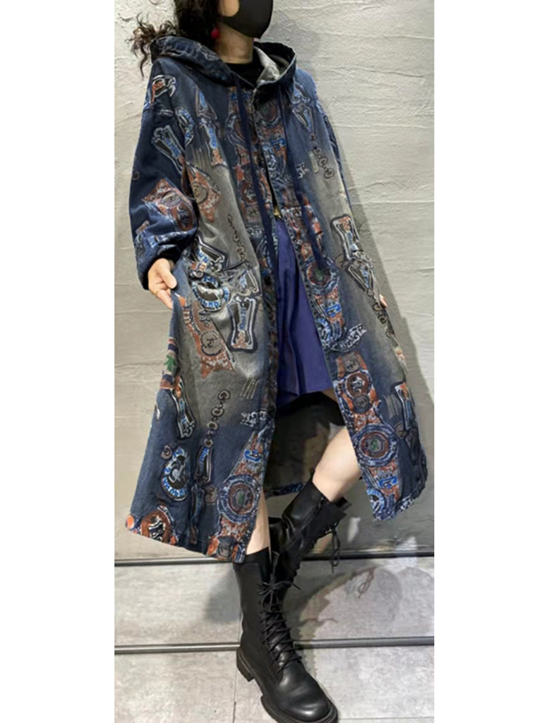 この商品はコットン素材で、花柄、フード付きの襟、フルレングスのラグランスリーブが特徴で、ヴィンテージスタイルで秋冬シーズンに適しています。
