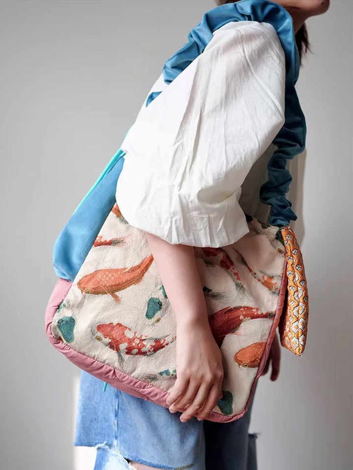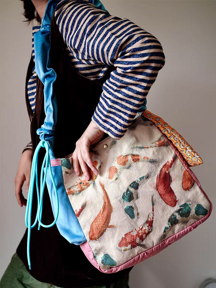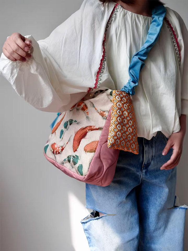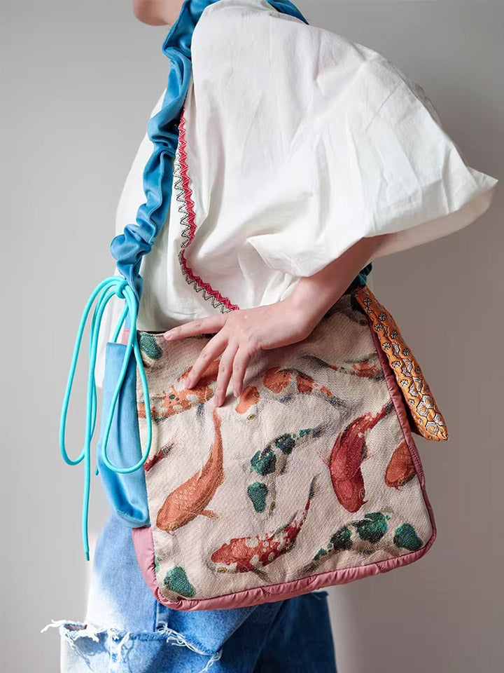 30210 エスニック鯉プリント クロスボディバッグ