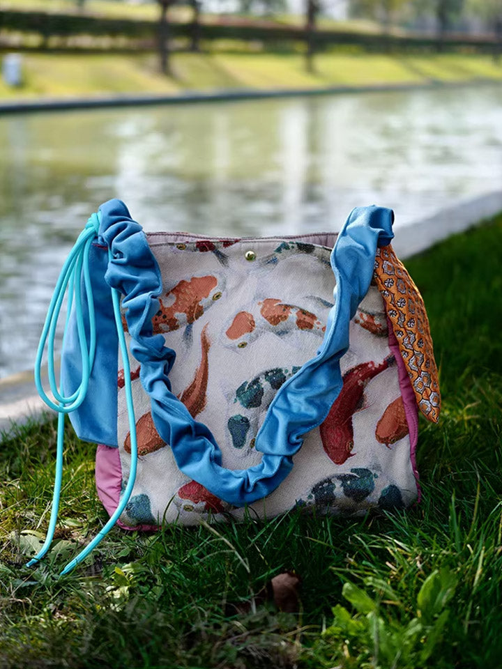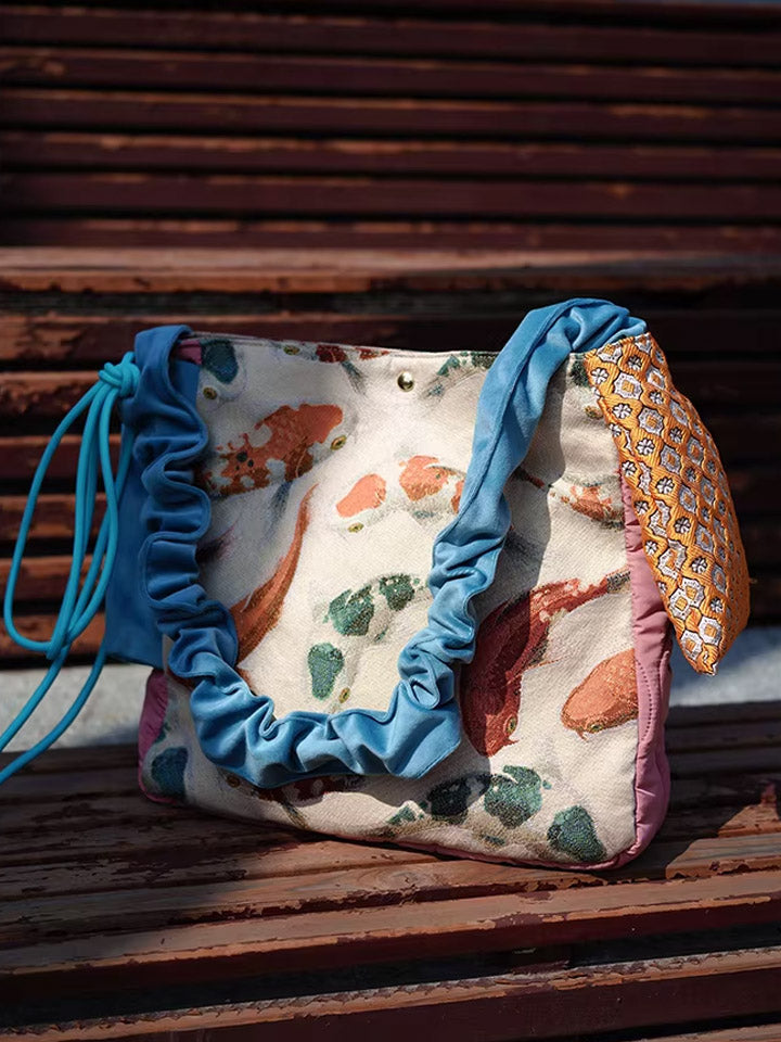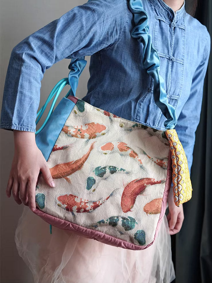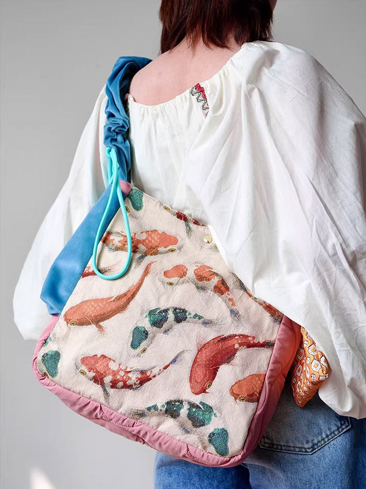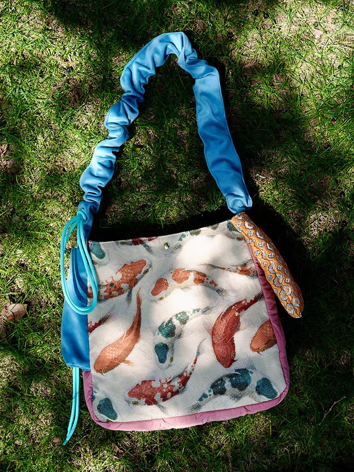 30210 エスニック鯉プリント クロスボディバッグ