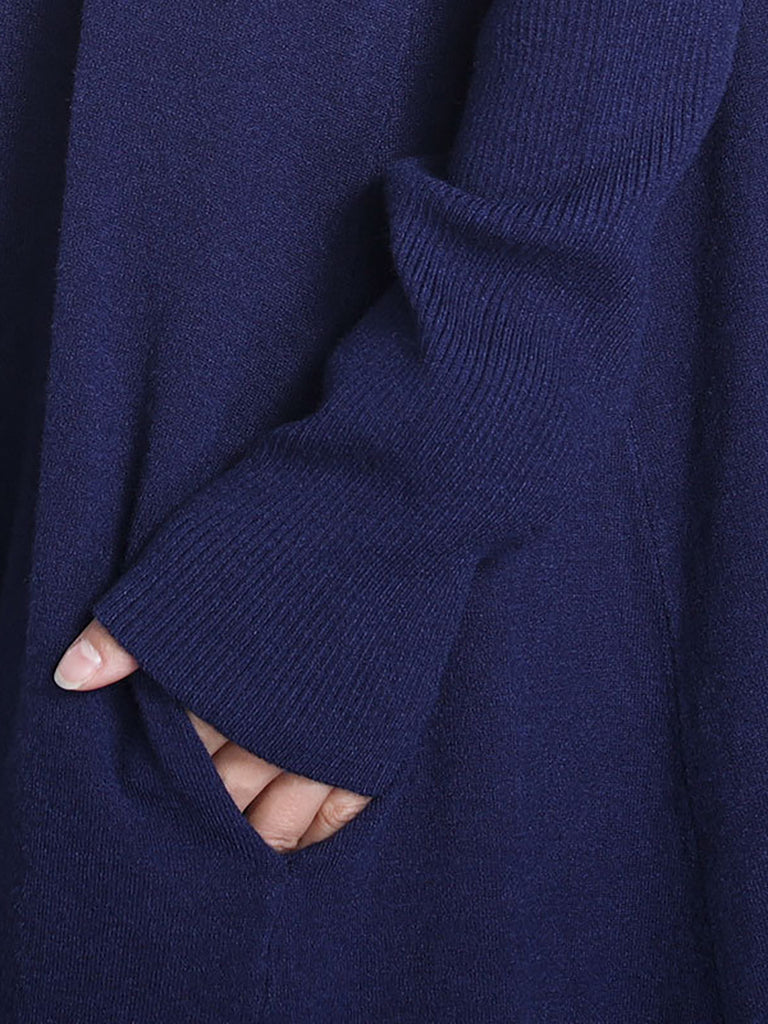 プラスサイズ レディース ピュアカラー ニット ハイネック ドレス