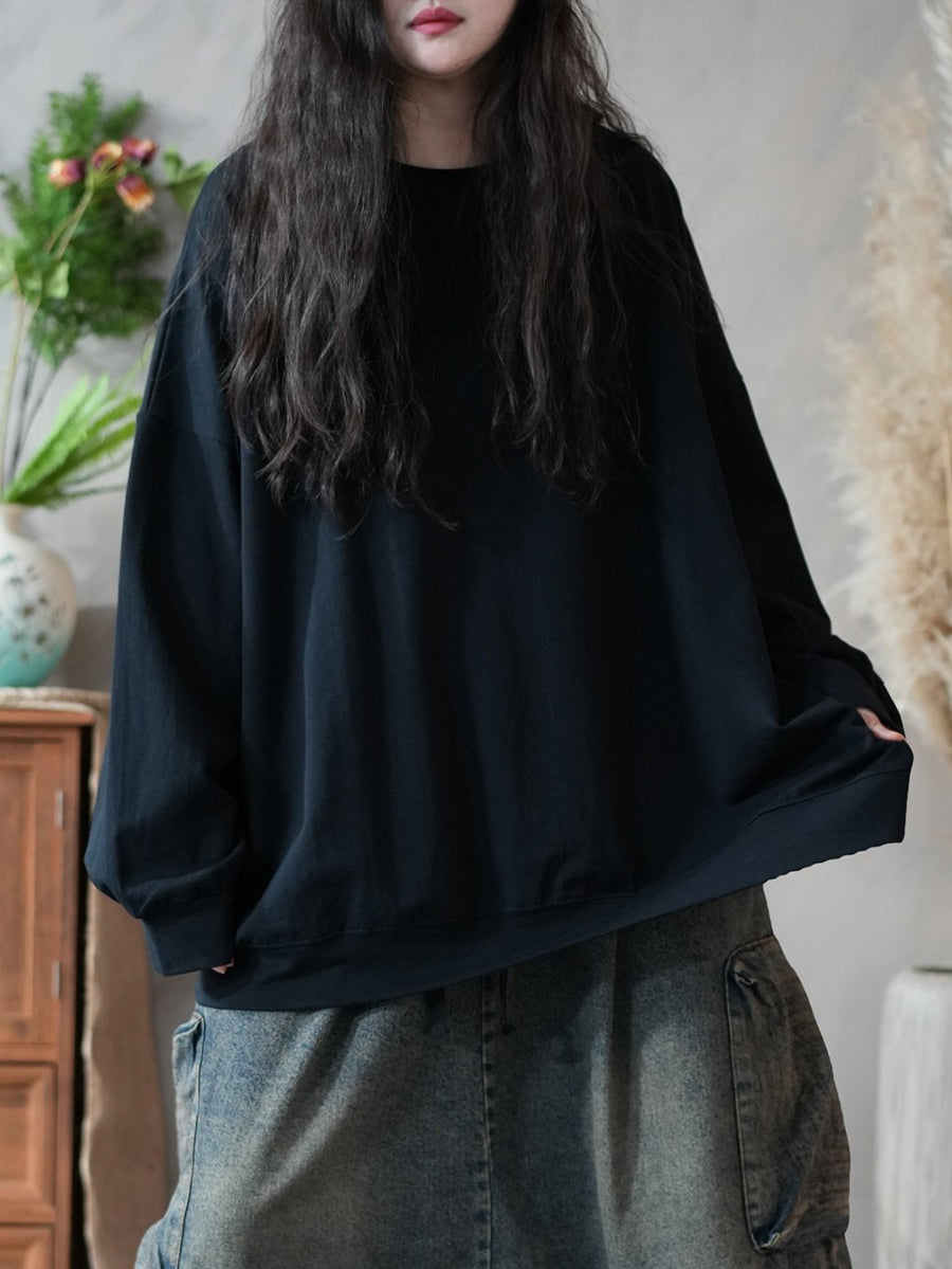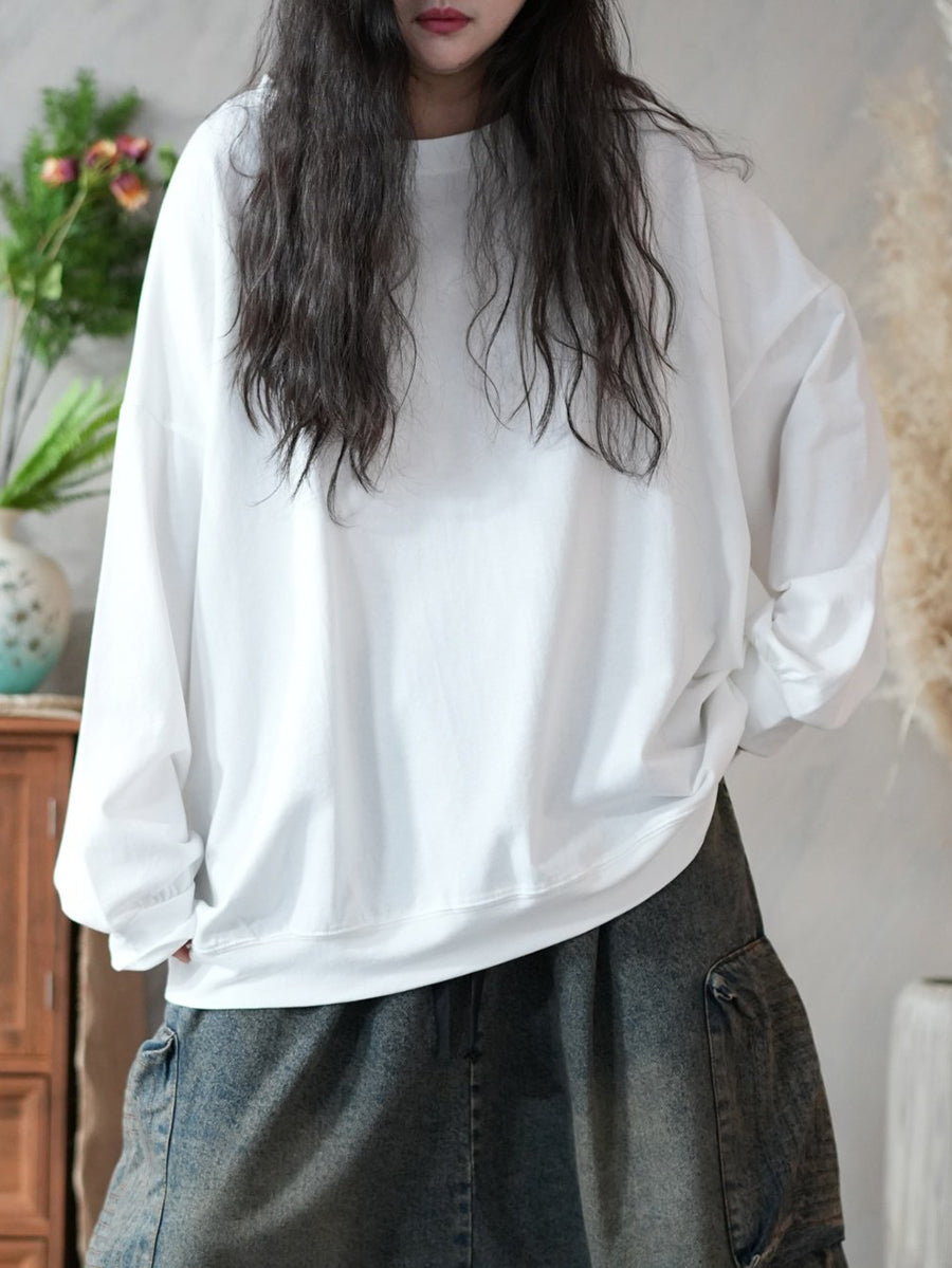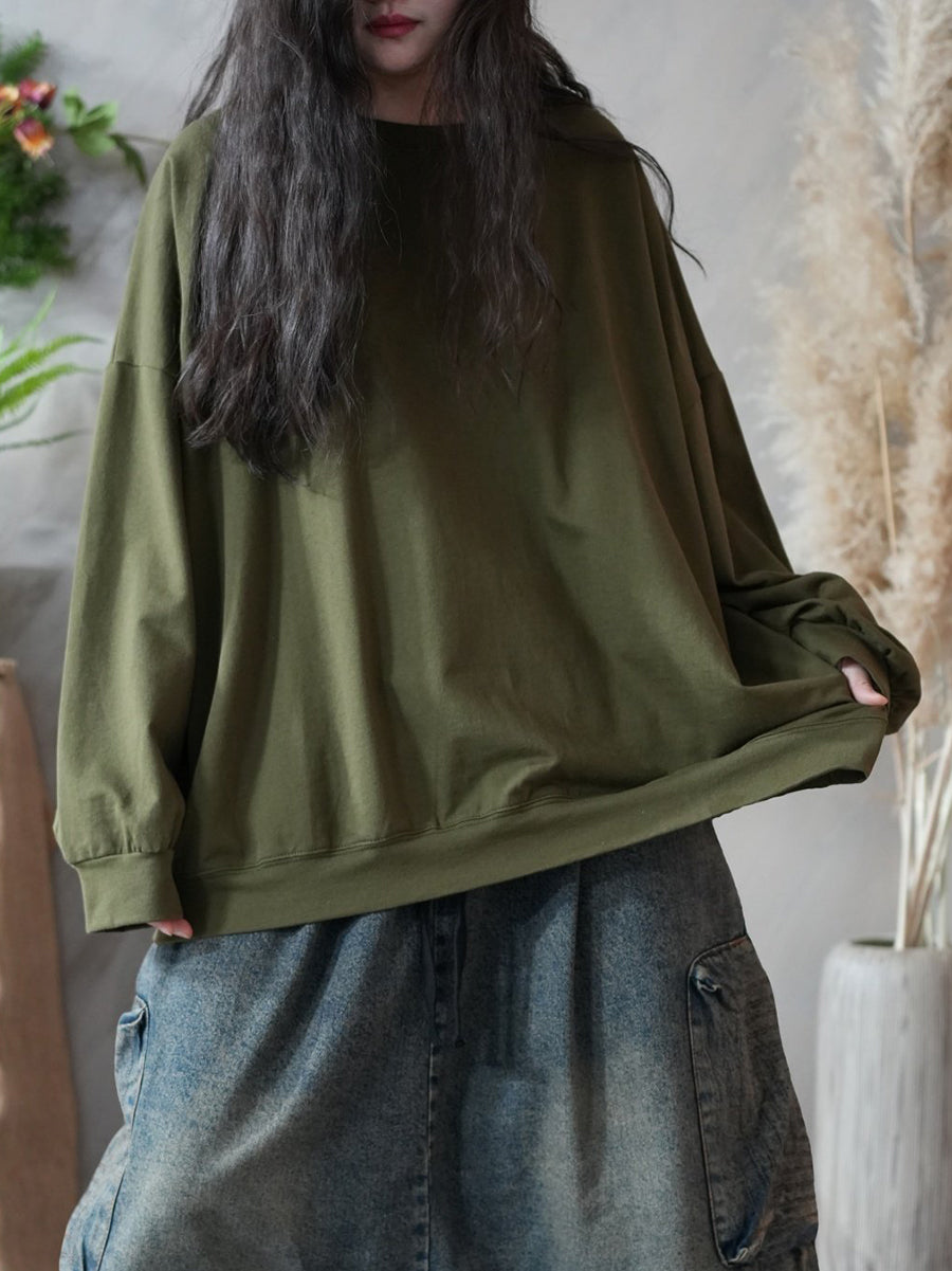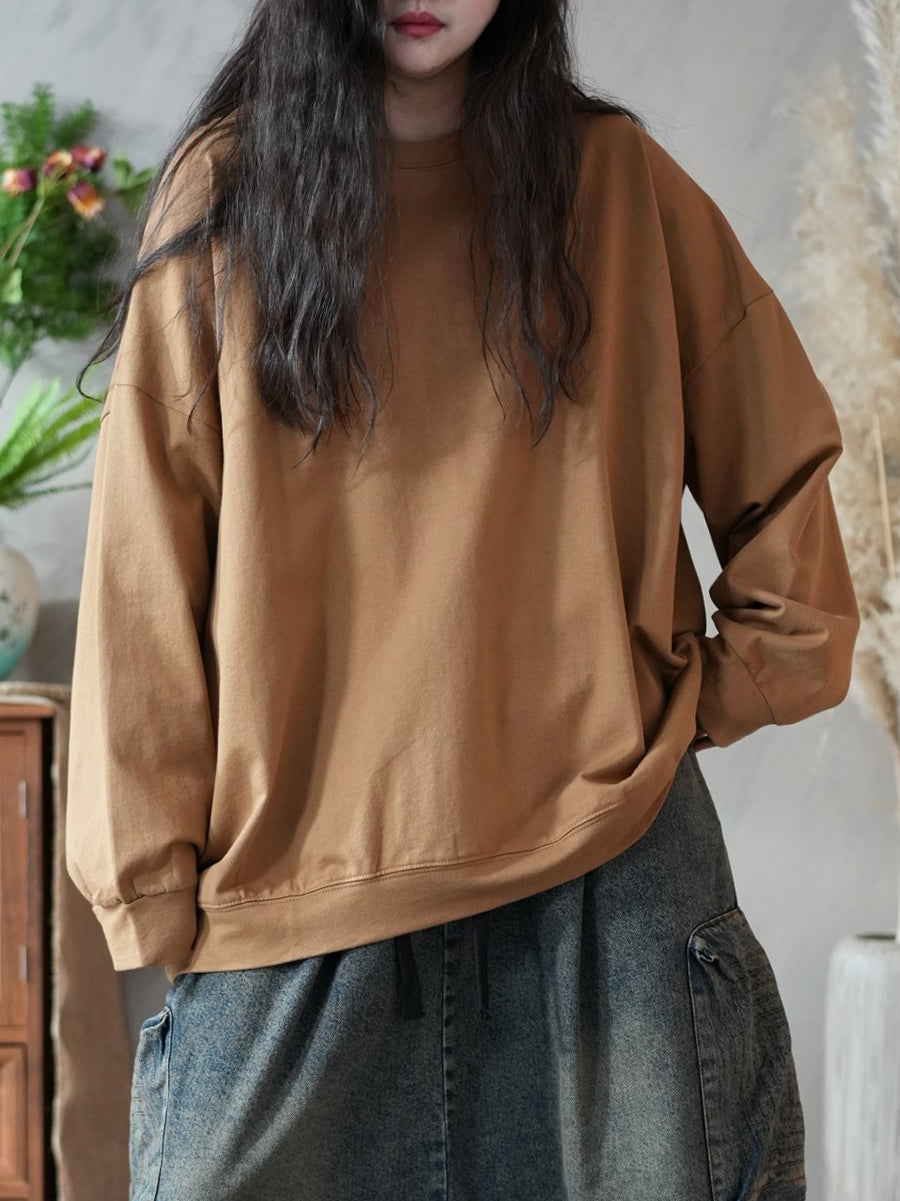 レディース 春 アーティスティック ピュアカラー 100%コットン Oネック ブラウス