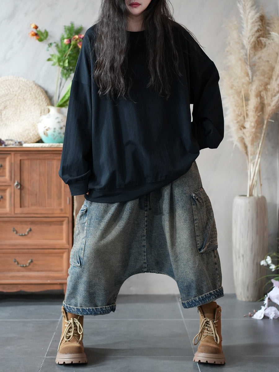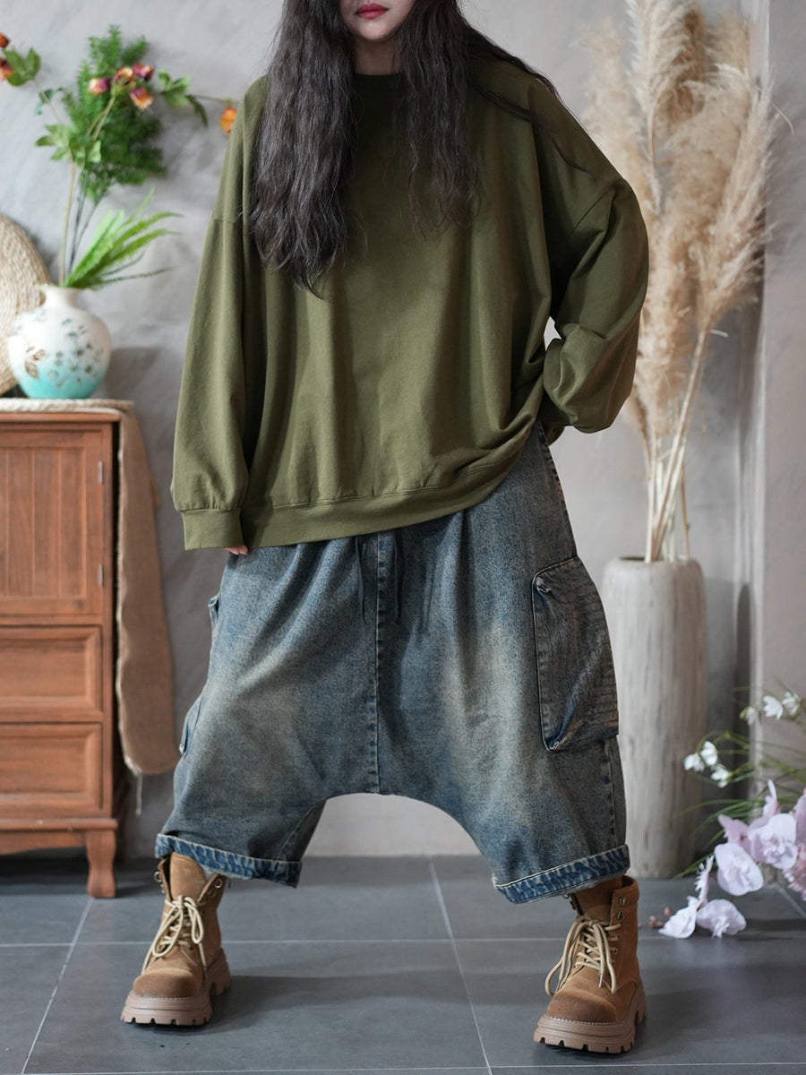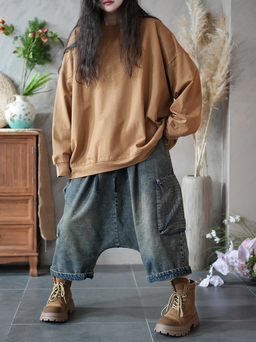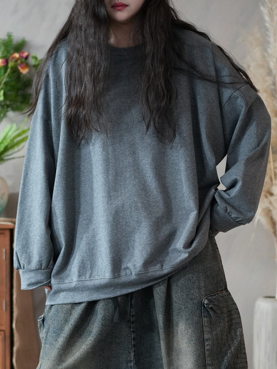 レディース 春 アーティスティック ピュアカラー 100%コットン Oネック ブラウス