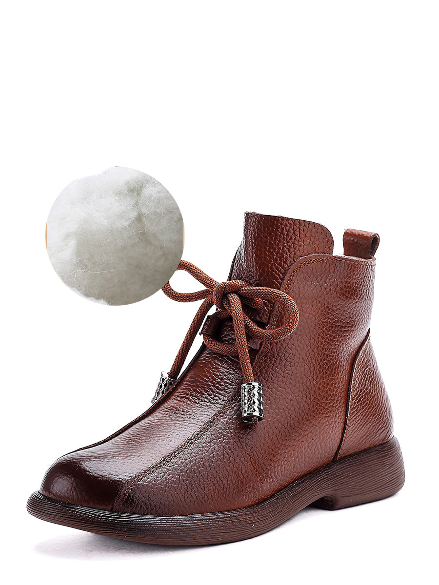 レディース レトロ 冬物 本革 ローヒール アンクルブーツ