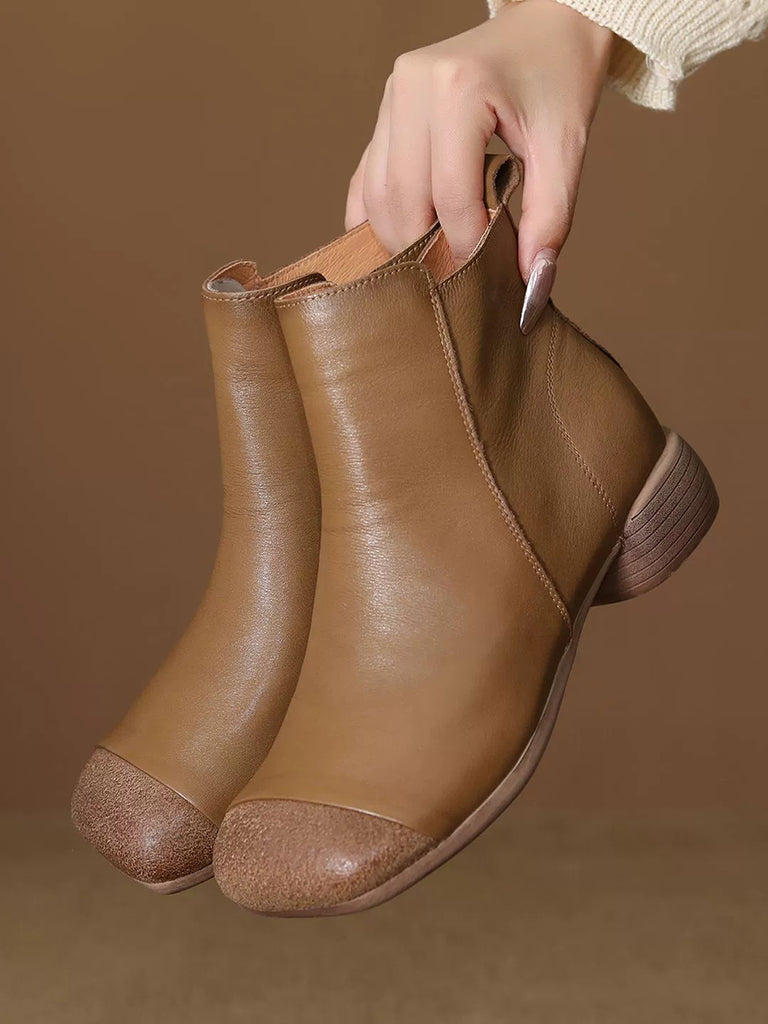 レディース ヴィンテージ 本革 ローヒール アンクルブーツ