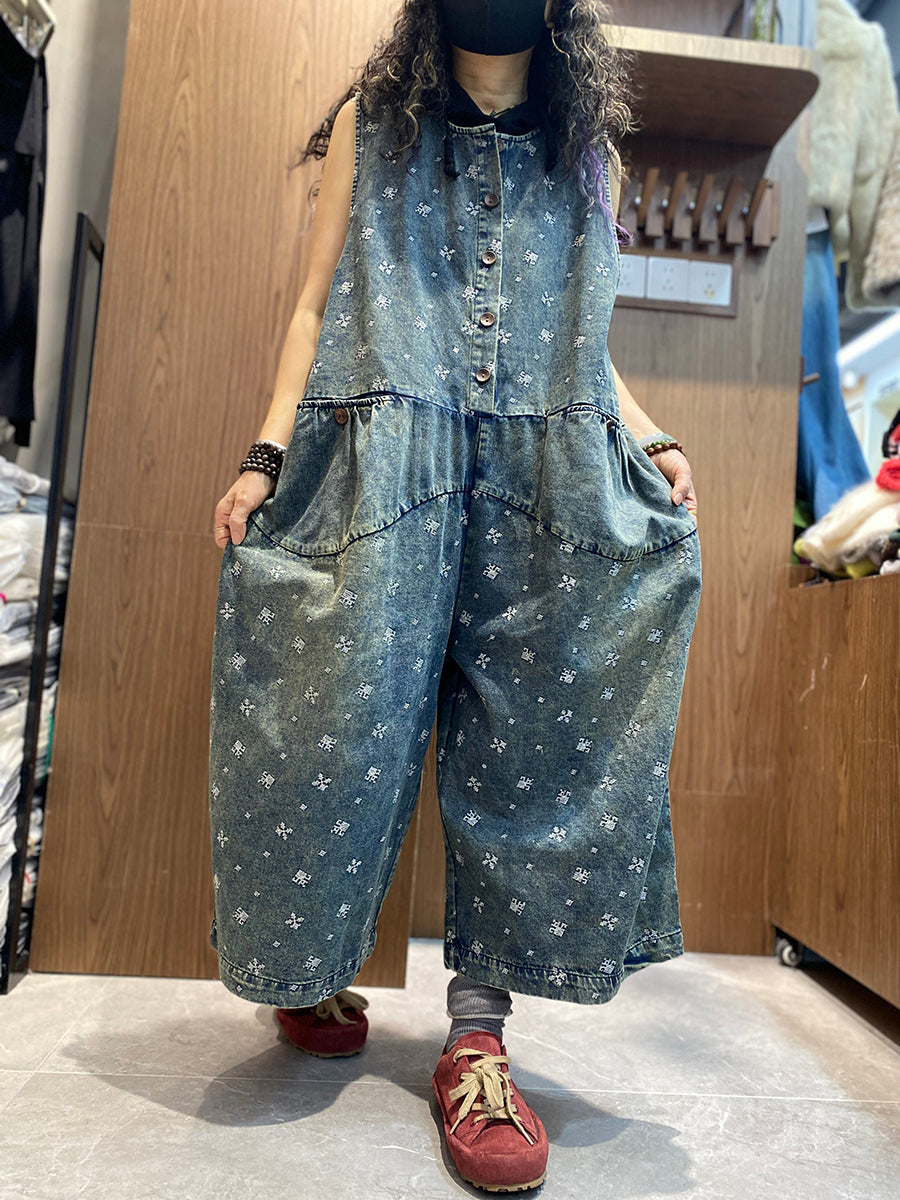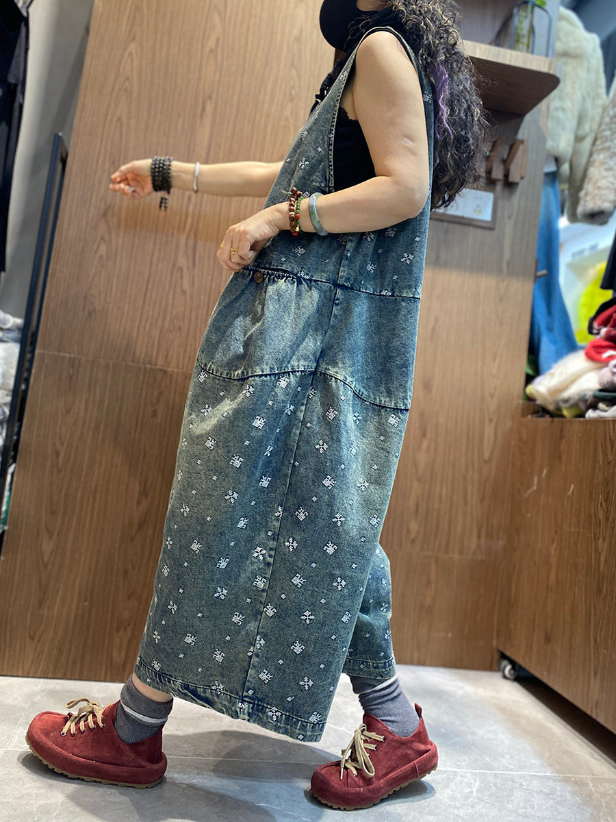 レディース サマー ヴィンテージ 刺繍 デニム ジャンプスーツ