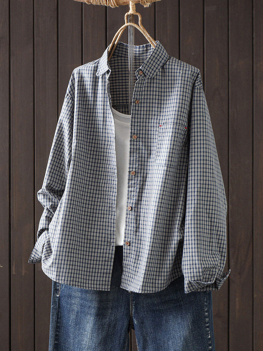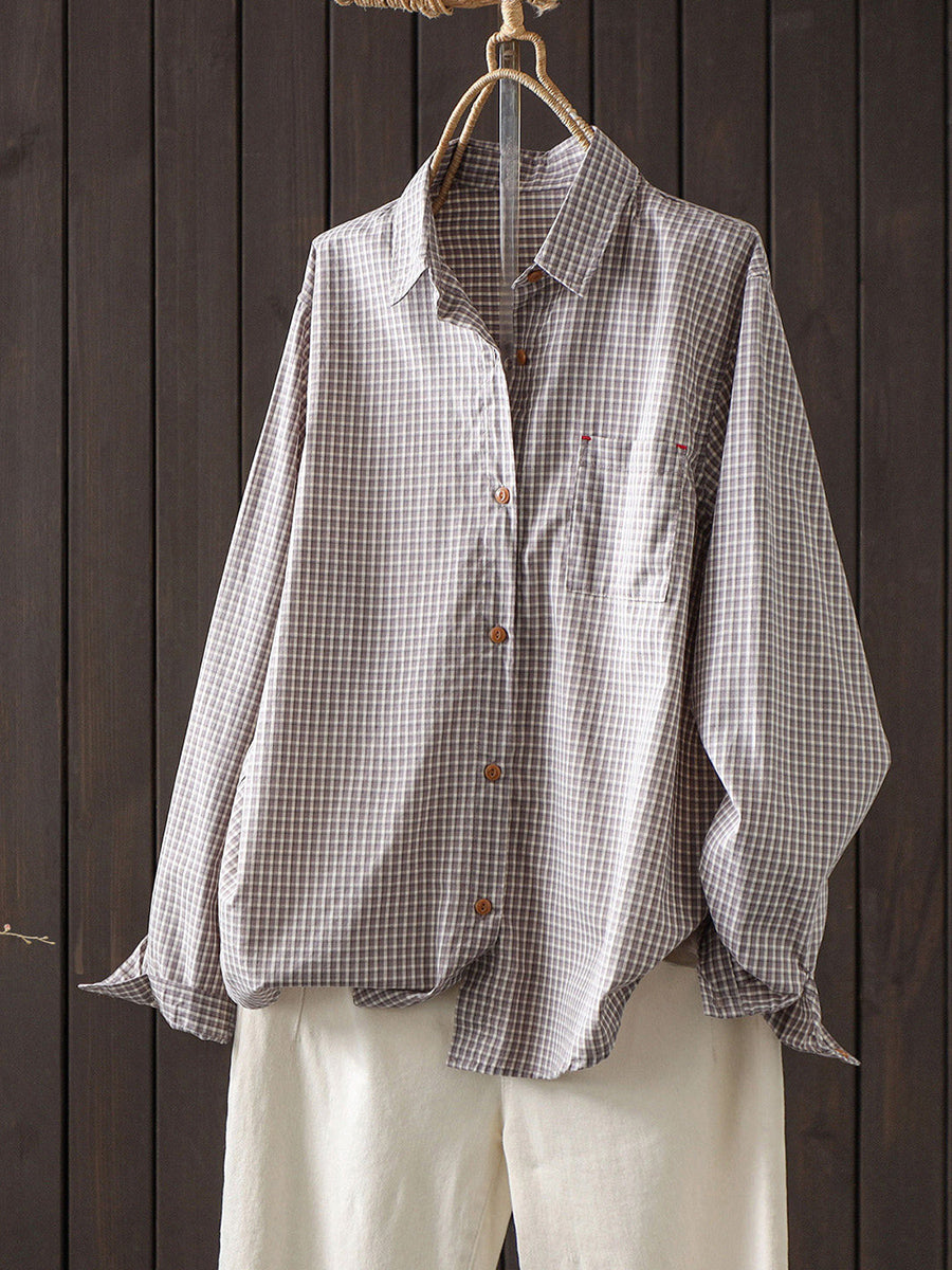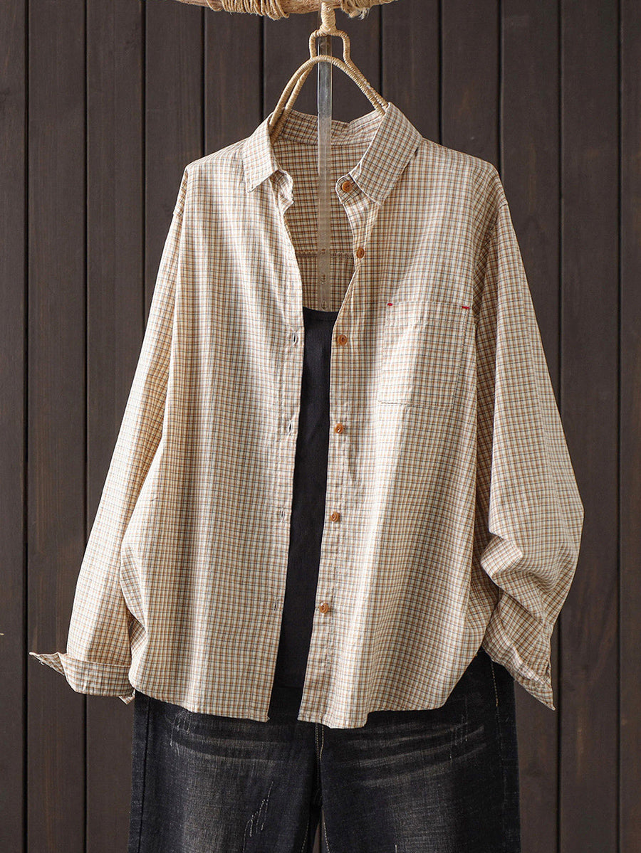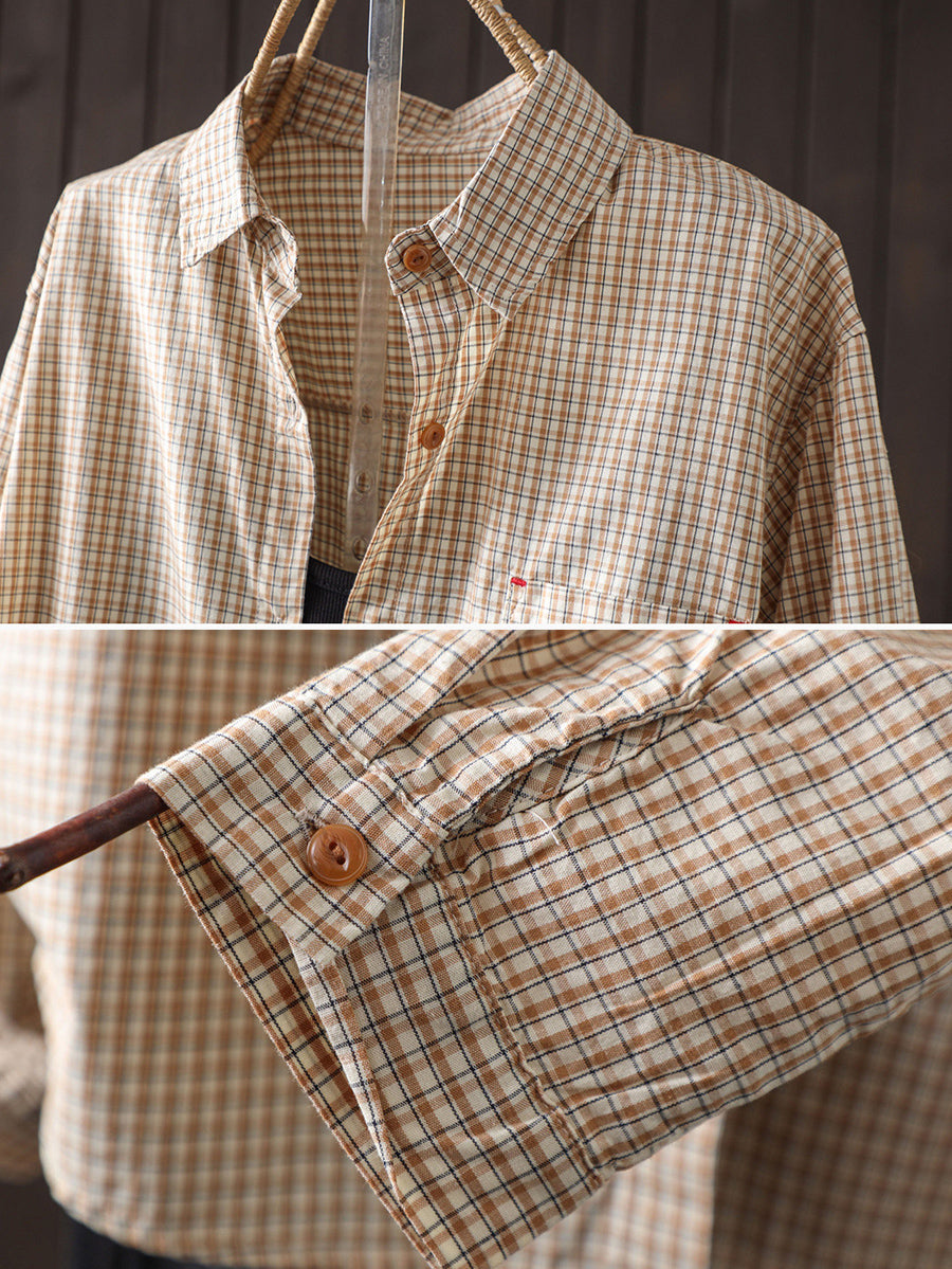 レディース アーティスティック スプリング チェック柄 100%コットンシャツ
