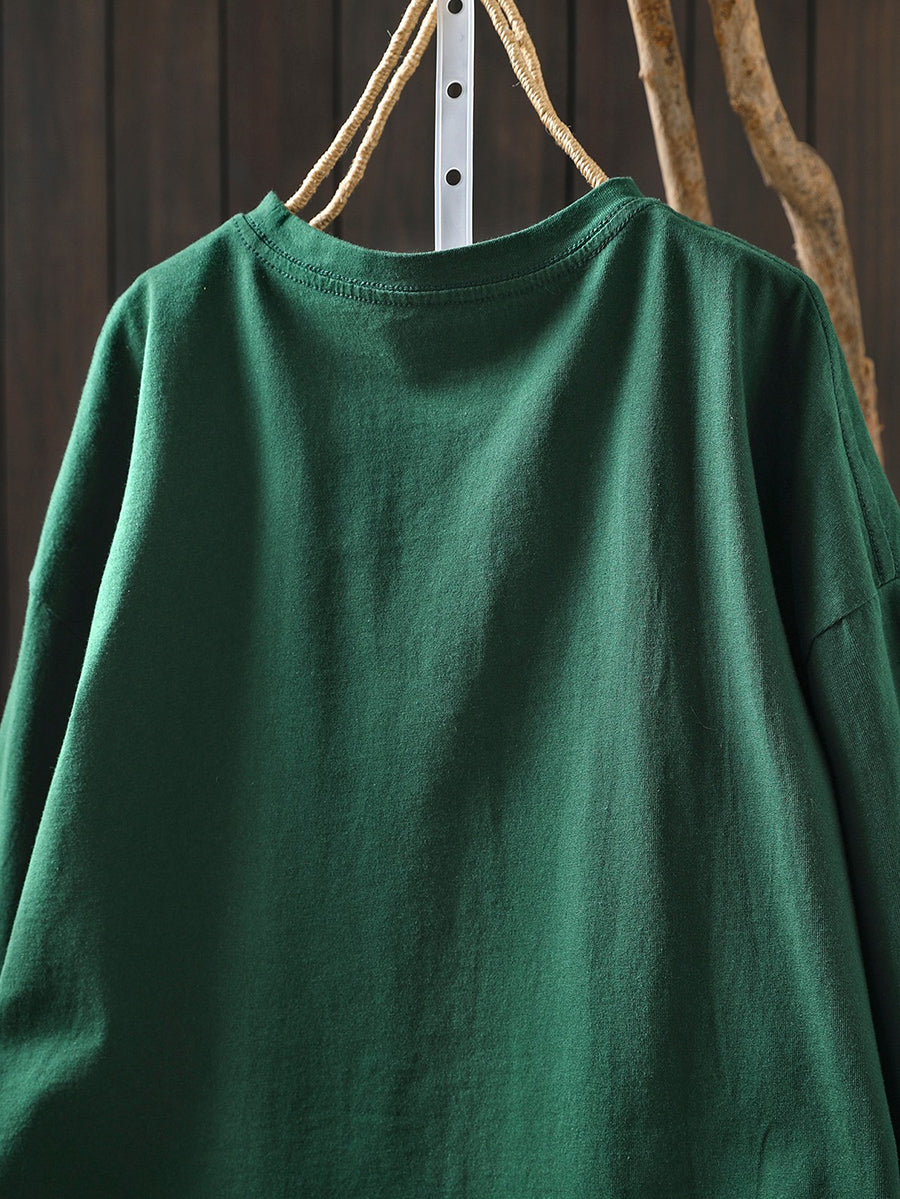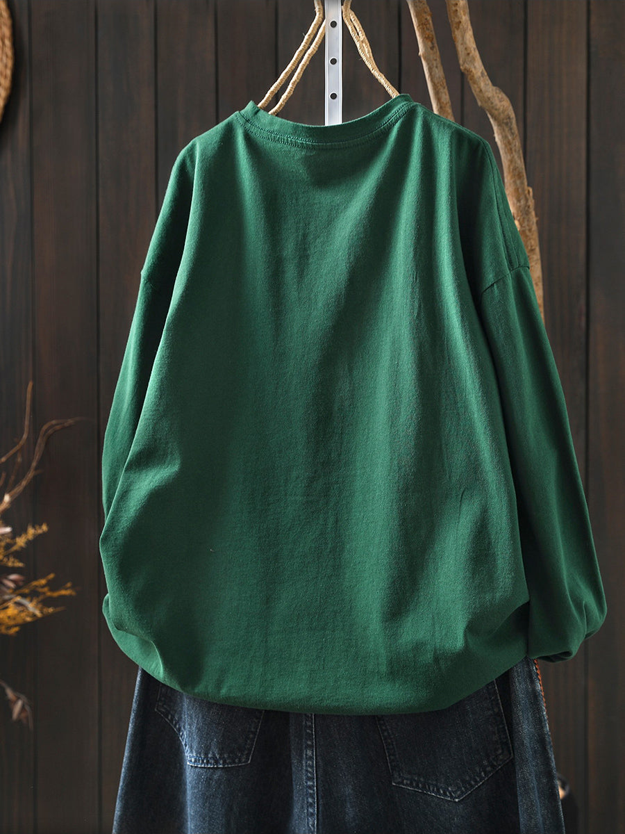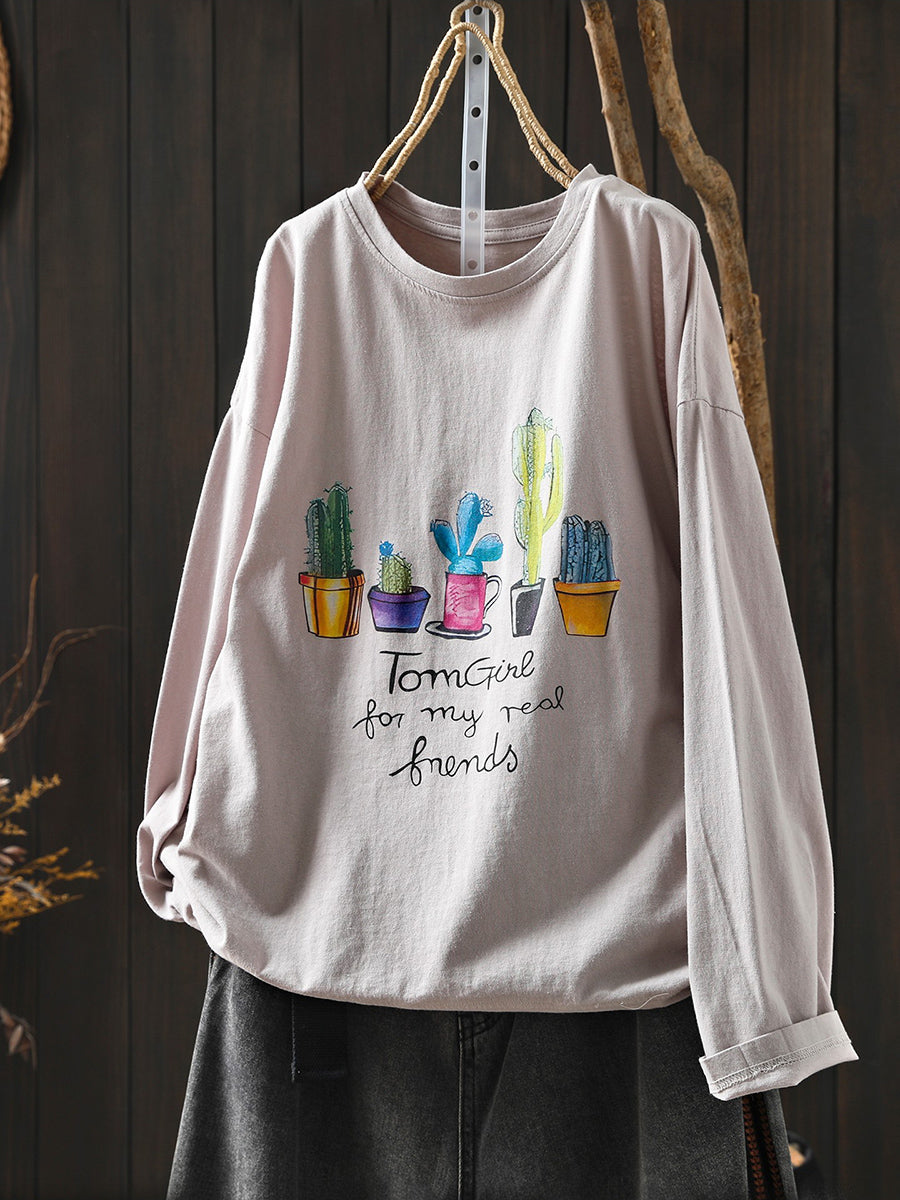 レディース アーティスティック スプリング 鉢植え コットン Oネック ブラウス