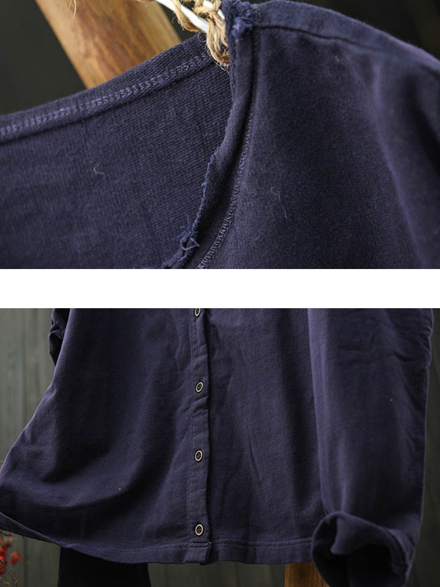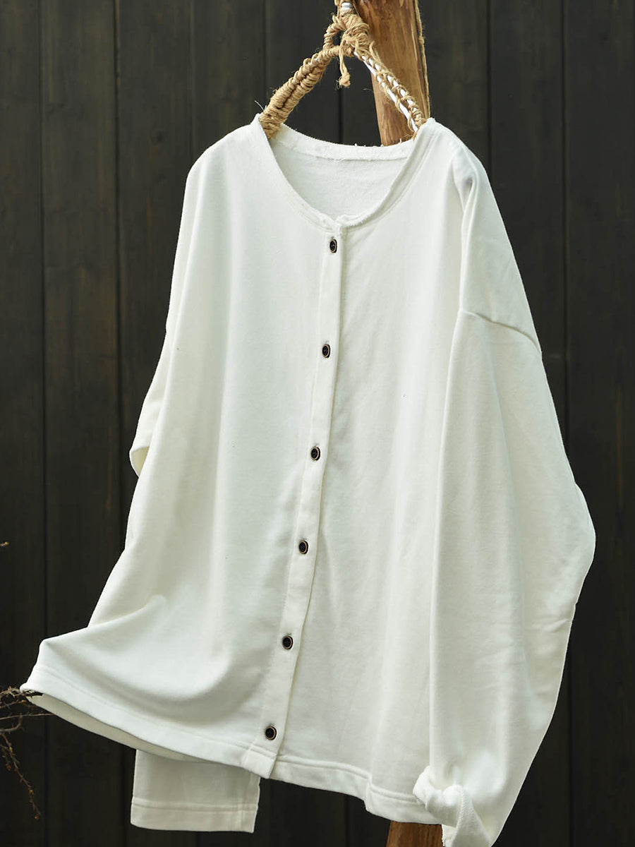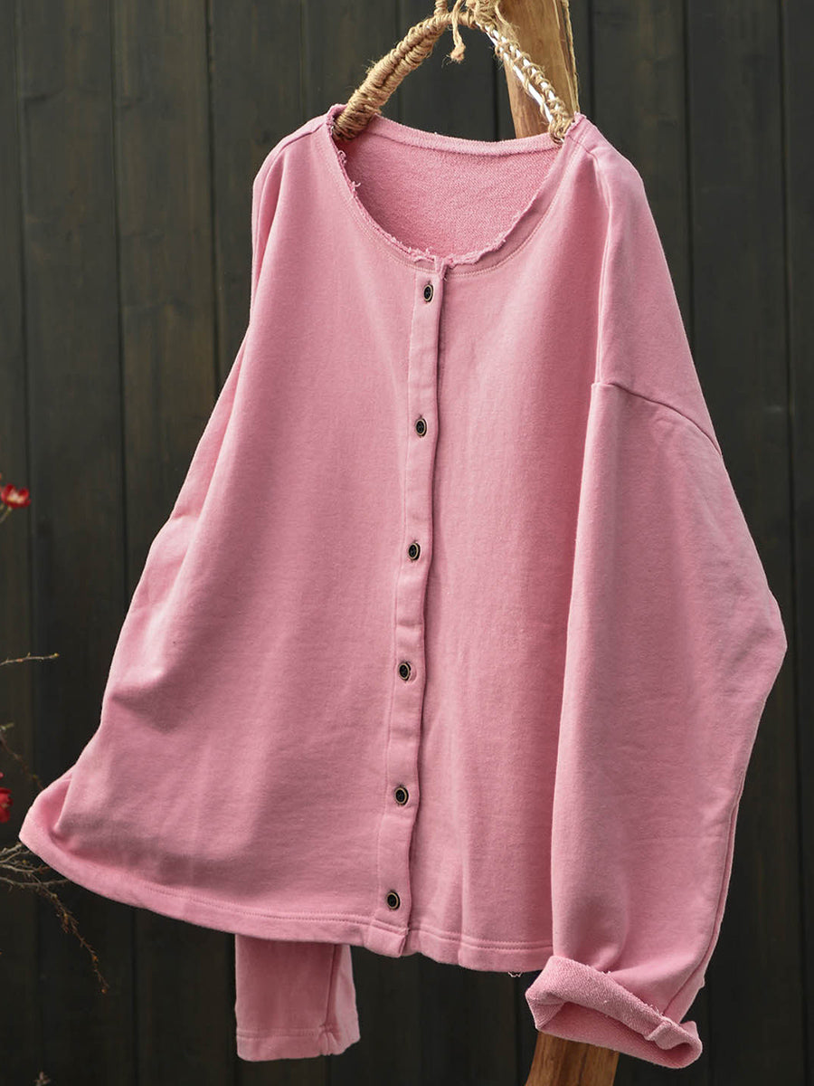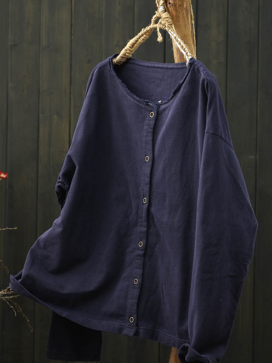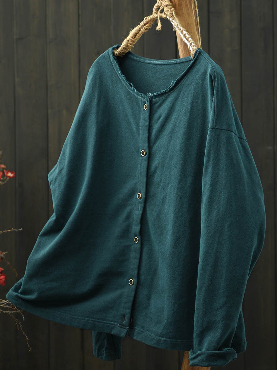 レディース アーティスティック スプリング ピュアカラー Oネック コットンシャツ