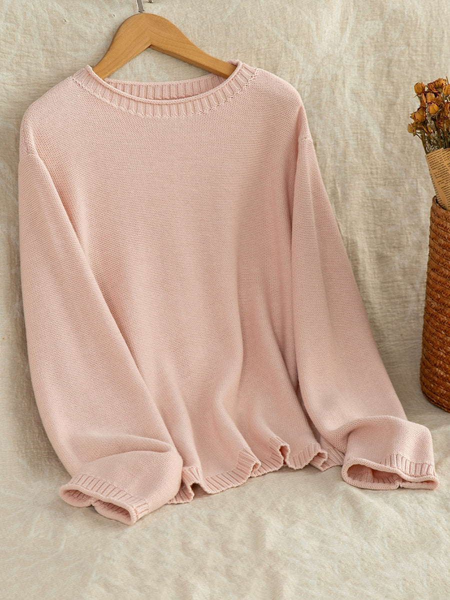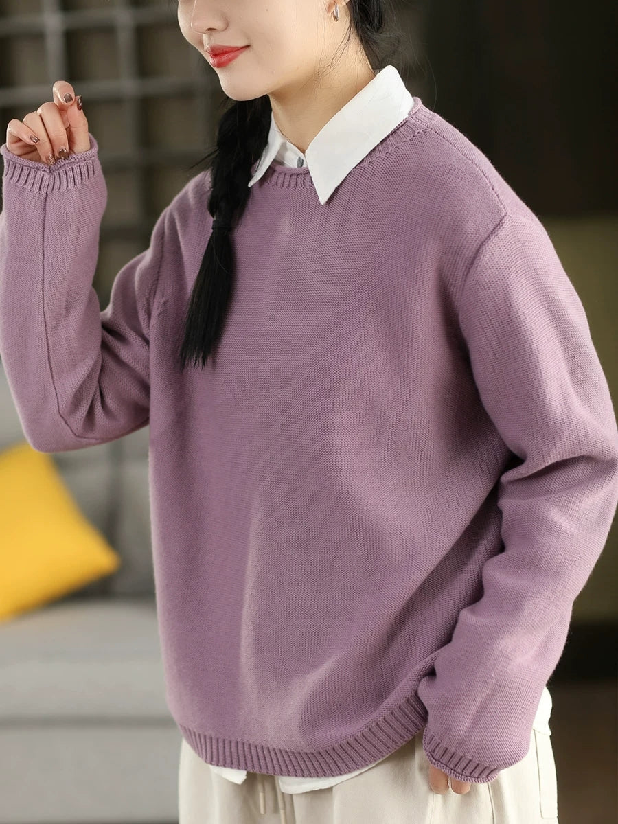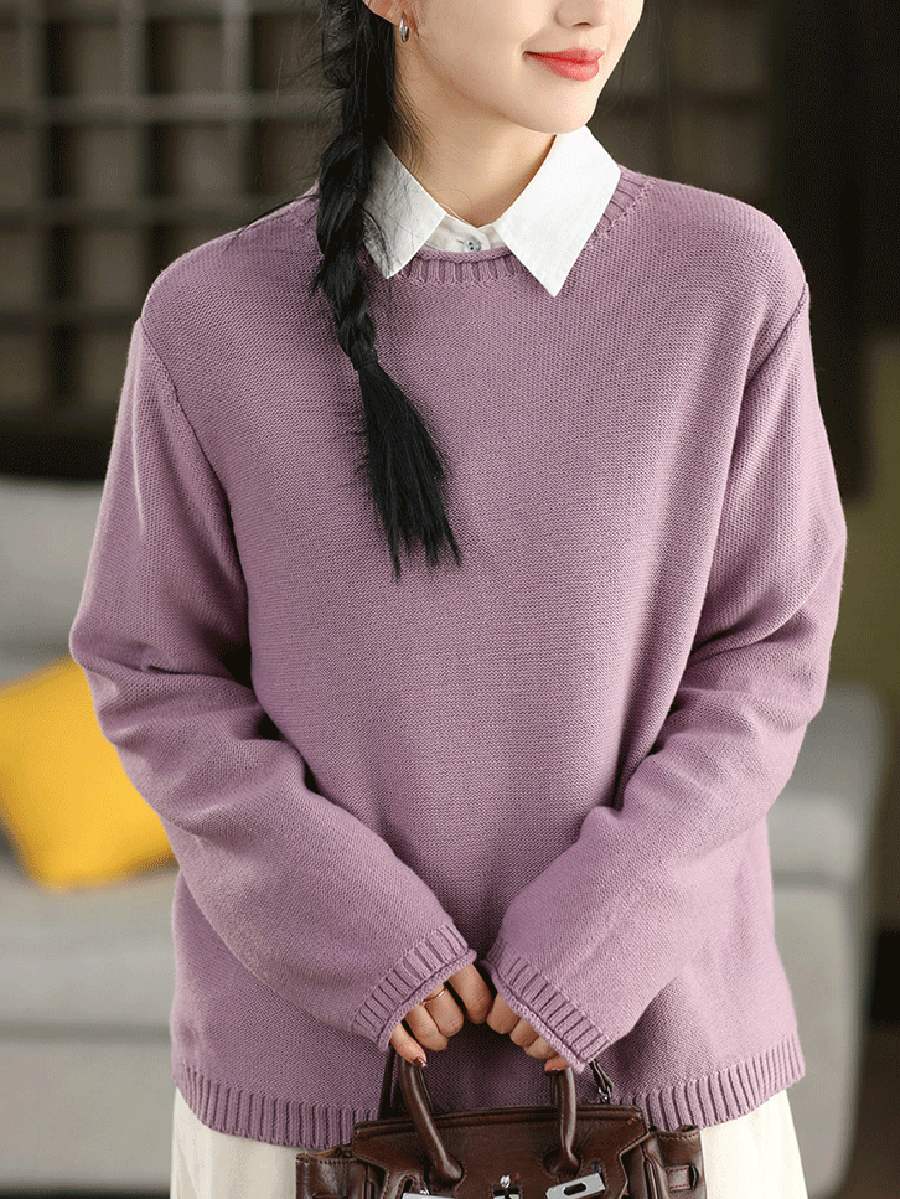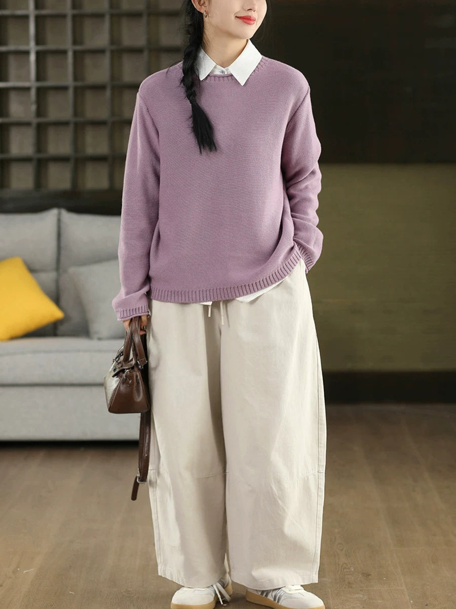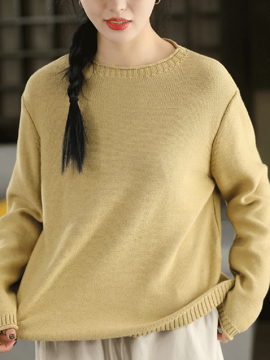 レディース アーティスティック スプリング ピュアカラー Oネック セーター